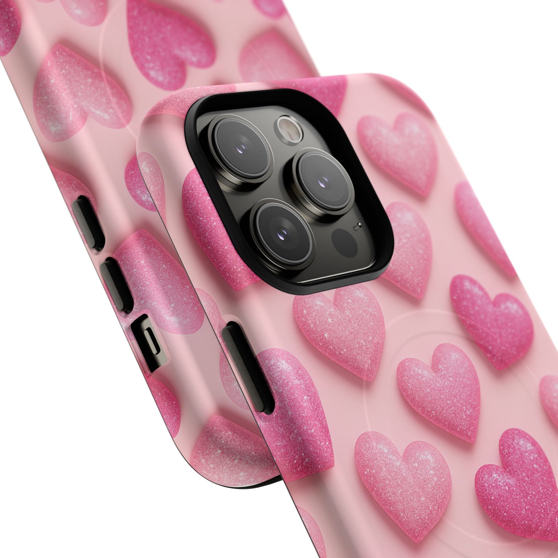 Barbiecore Glitter Hearts iPhone Case | MagSafe