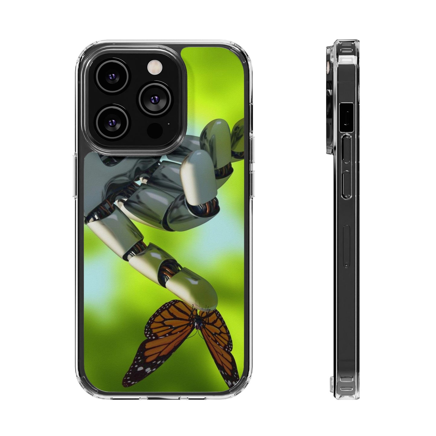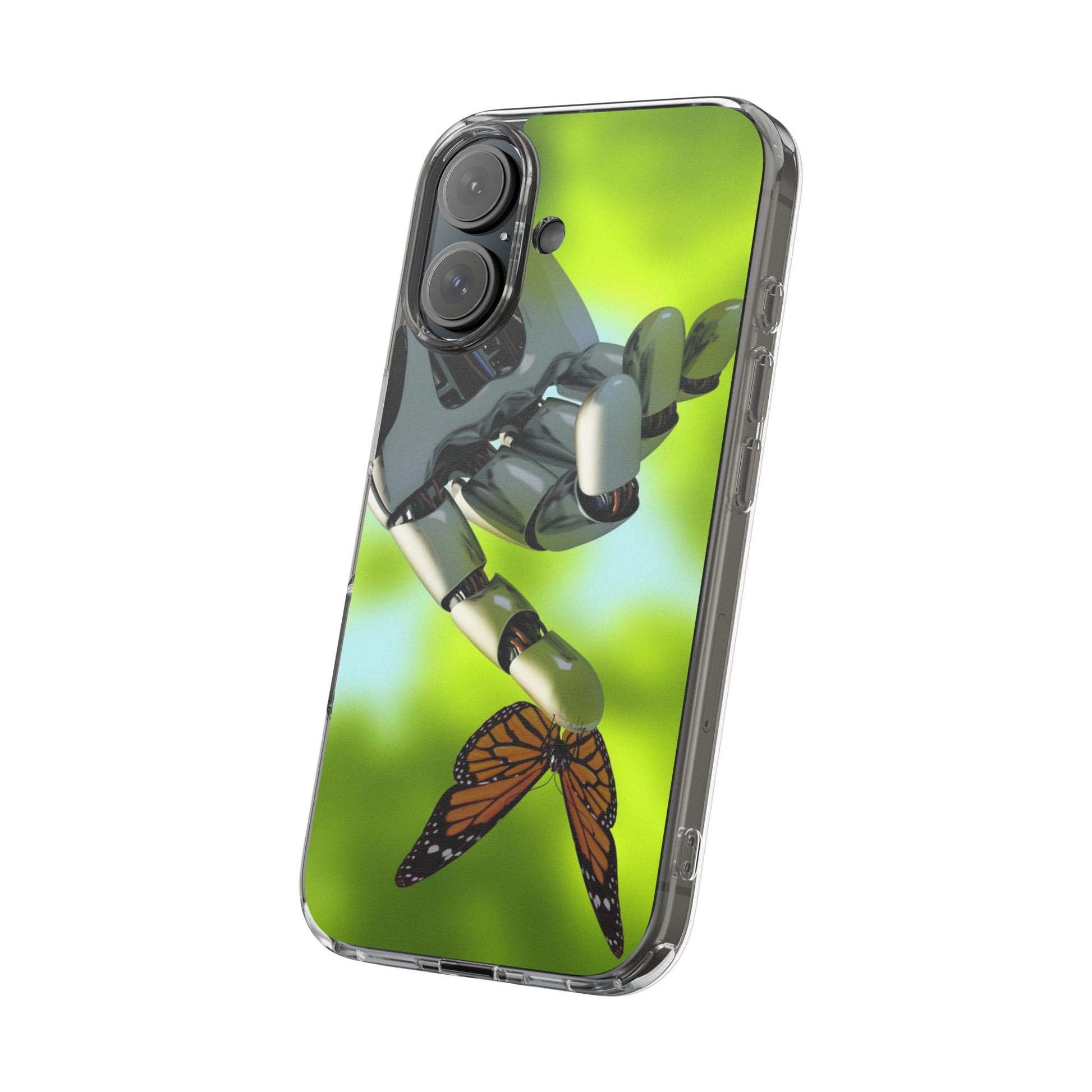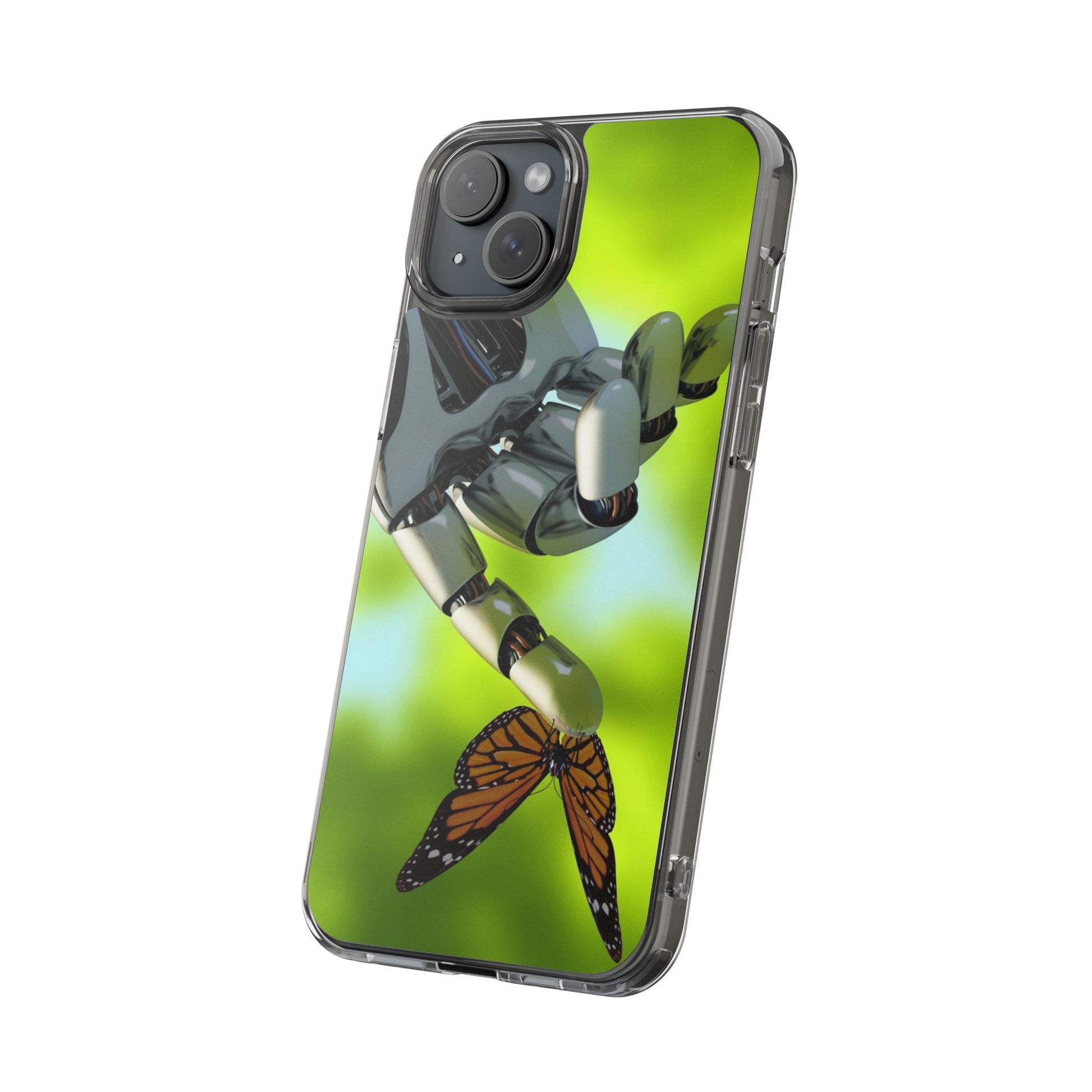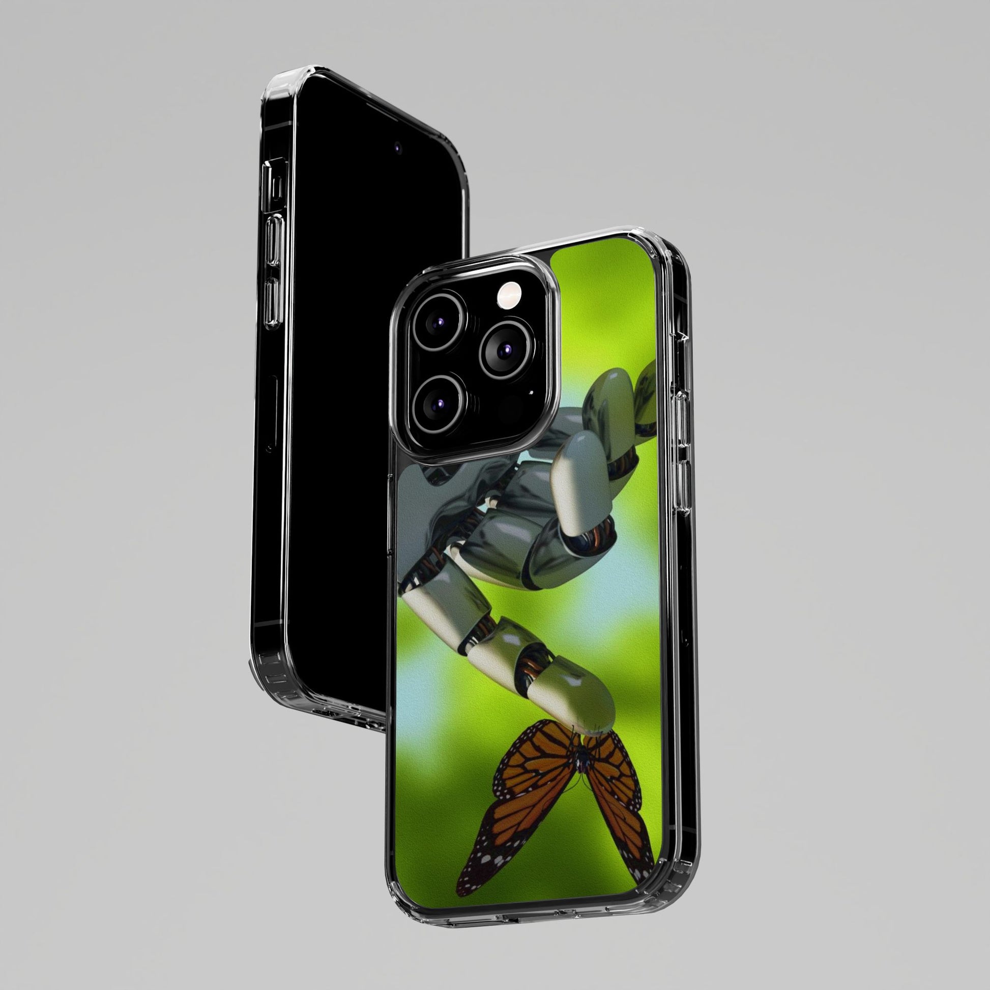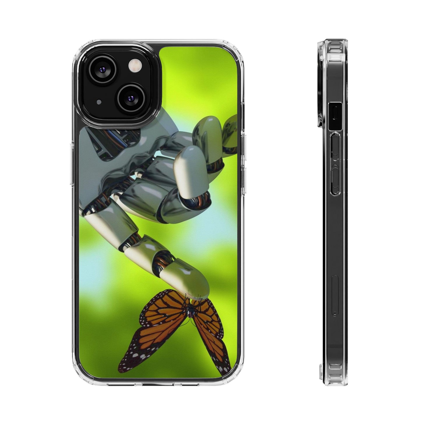 Clear Cases for iPhone 14 Series with Robotic hand and Butterfly.