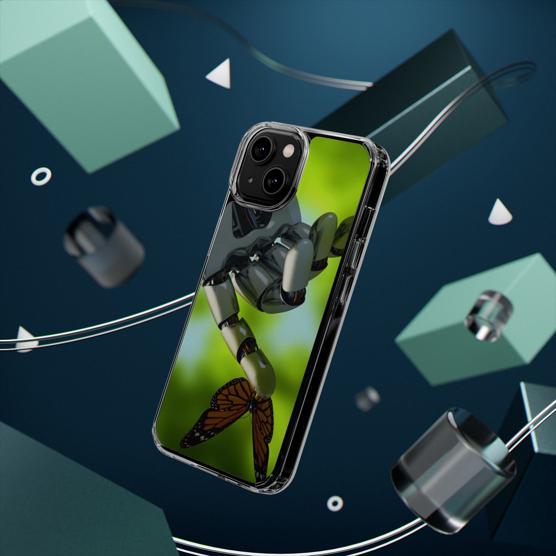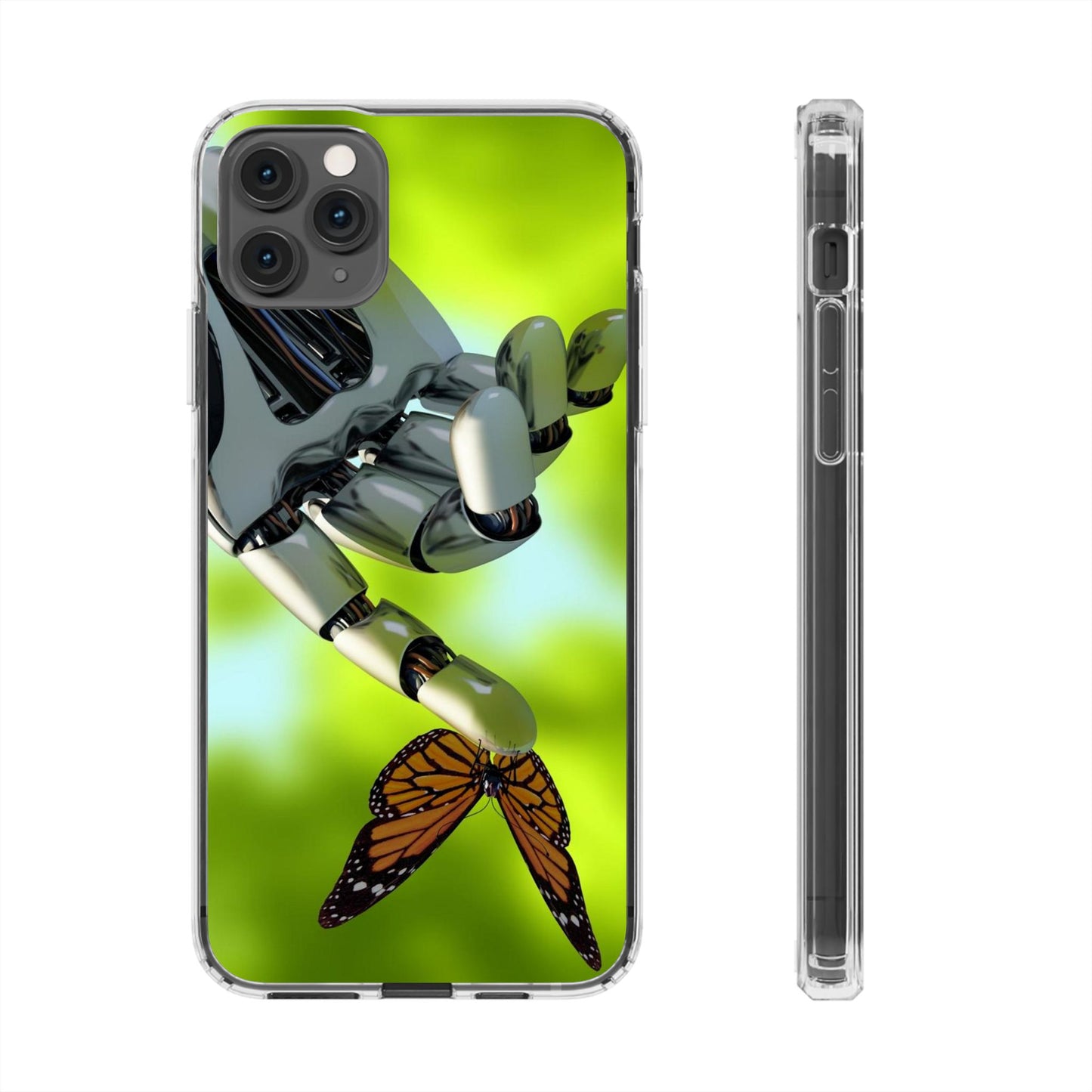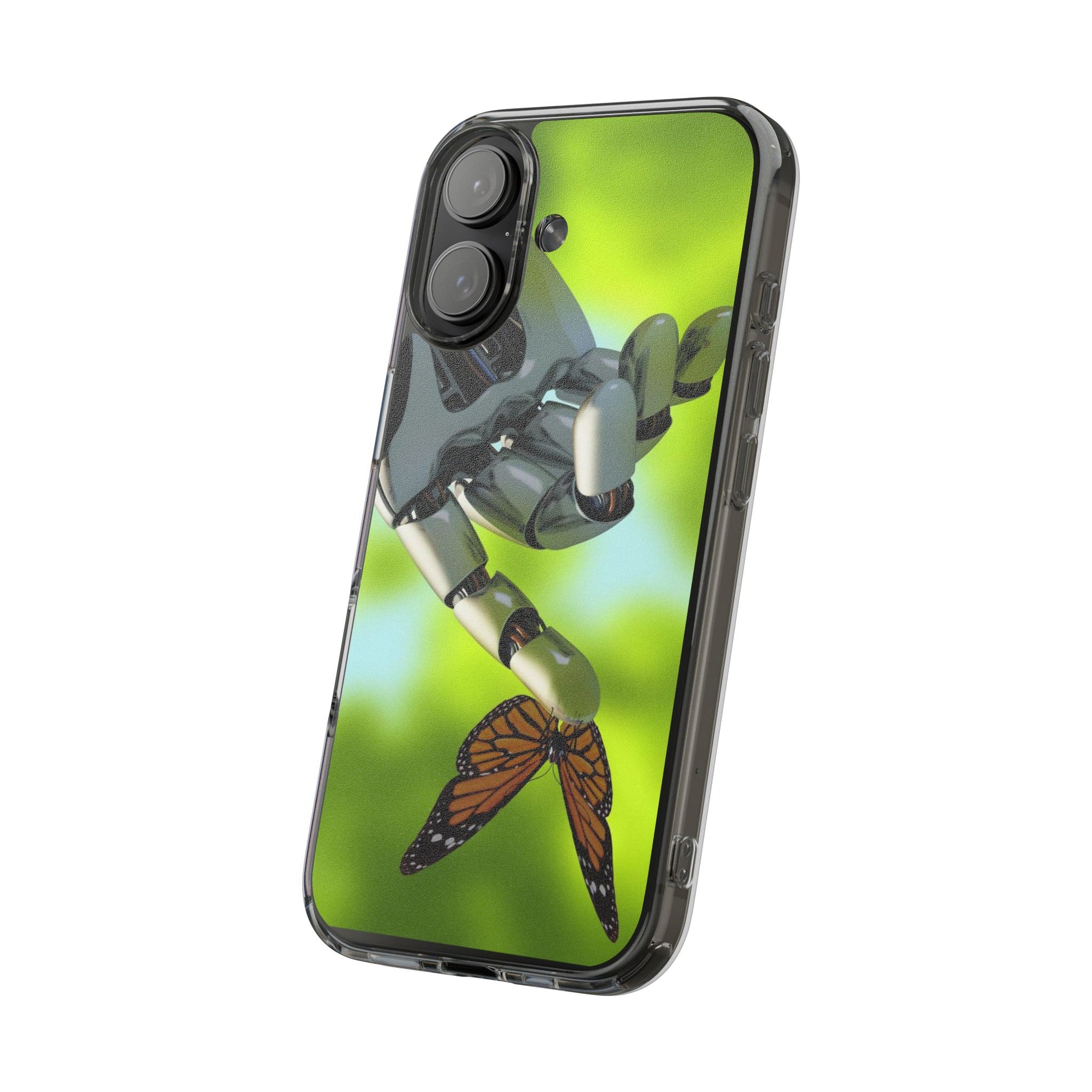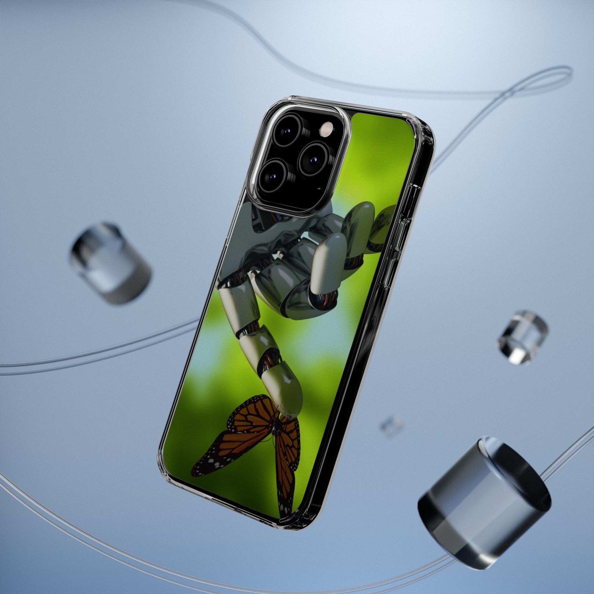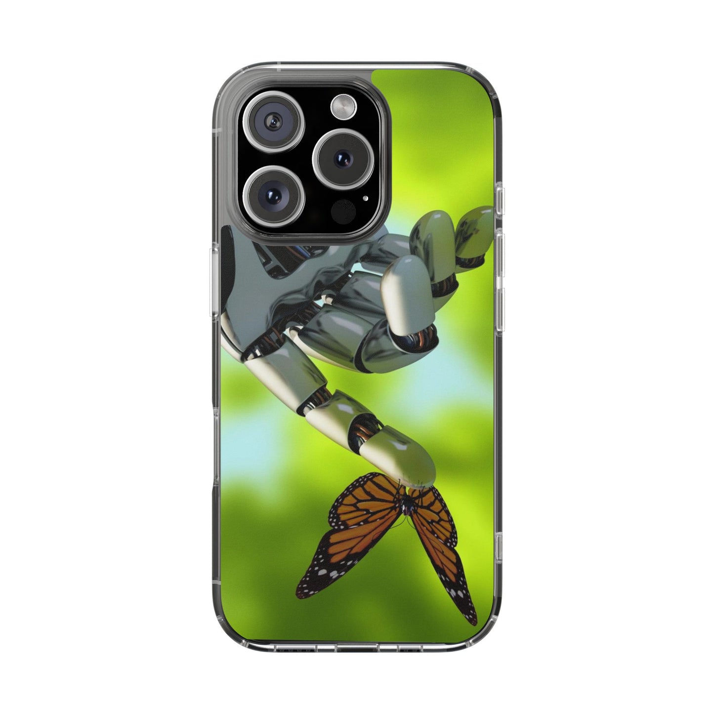 Clear Cases for iPhone 14 Series with Robotic hand and Butterfly.