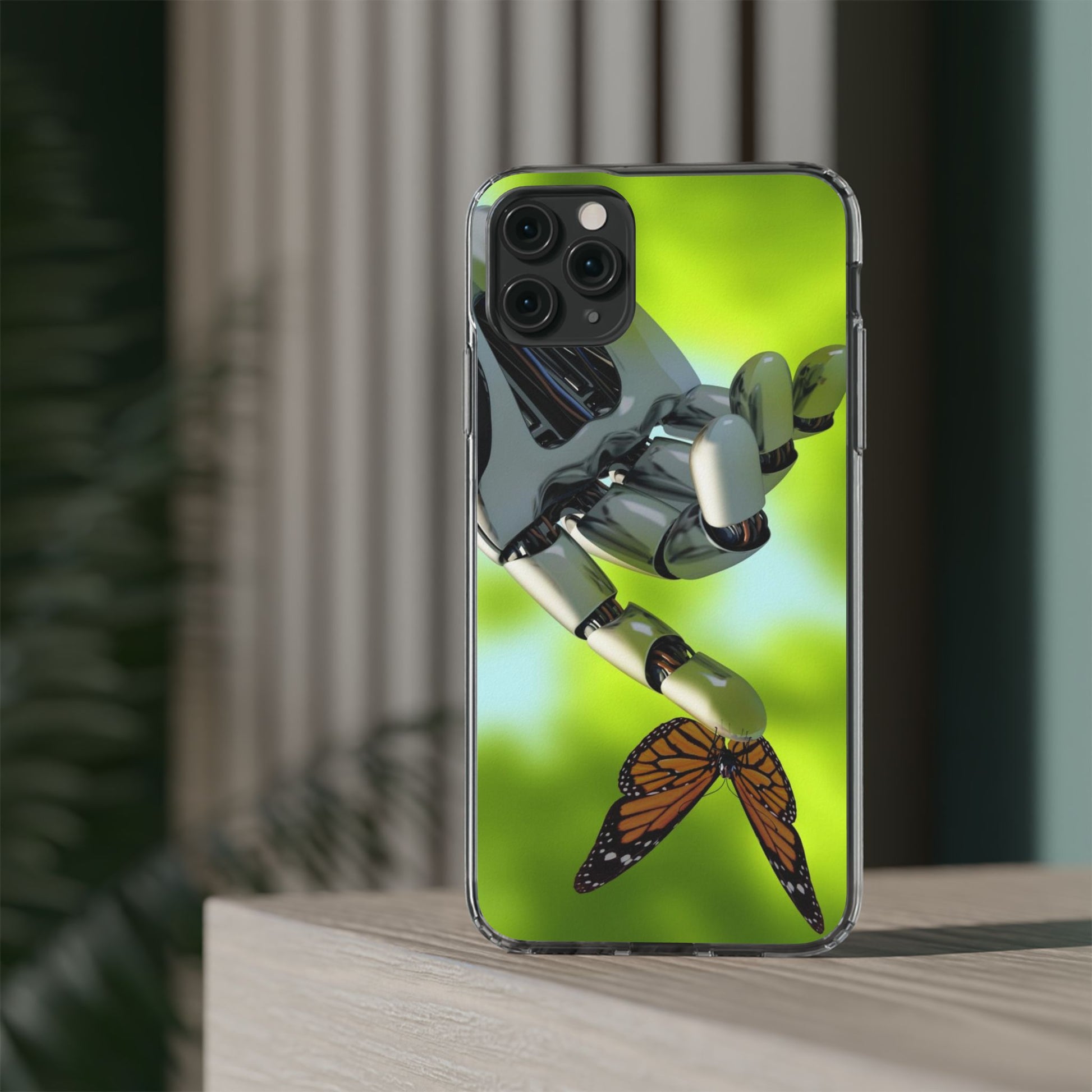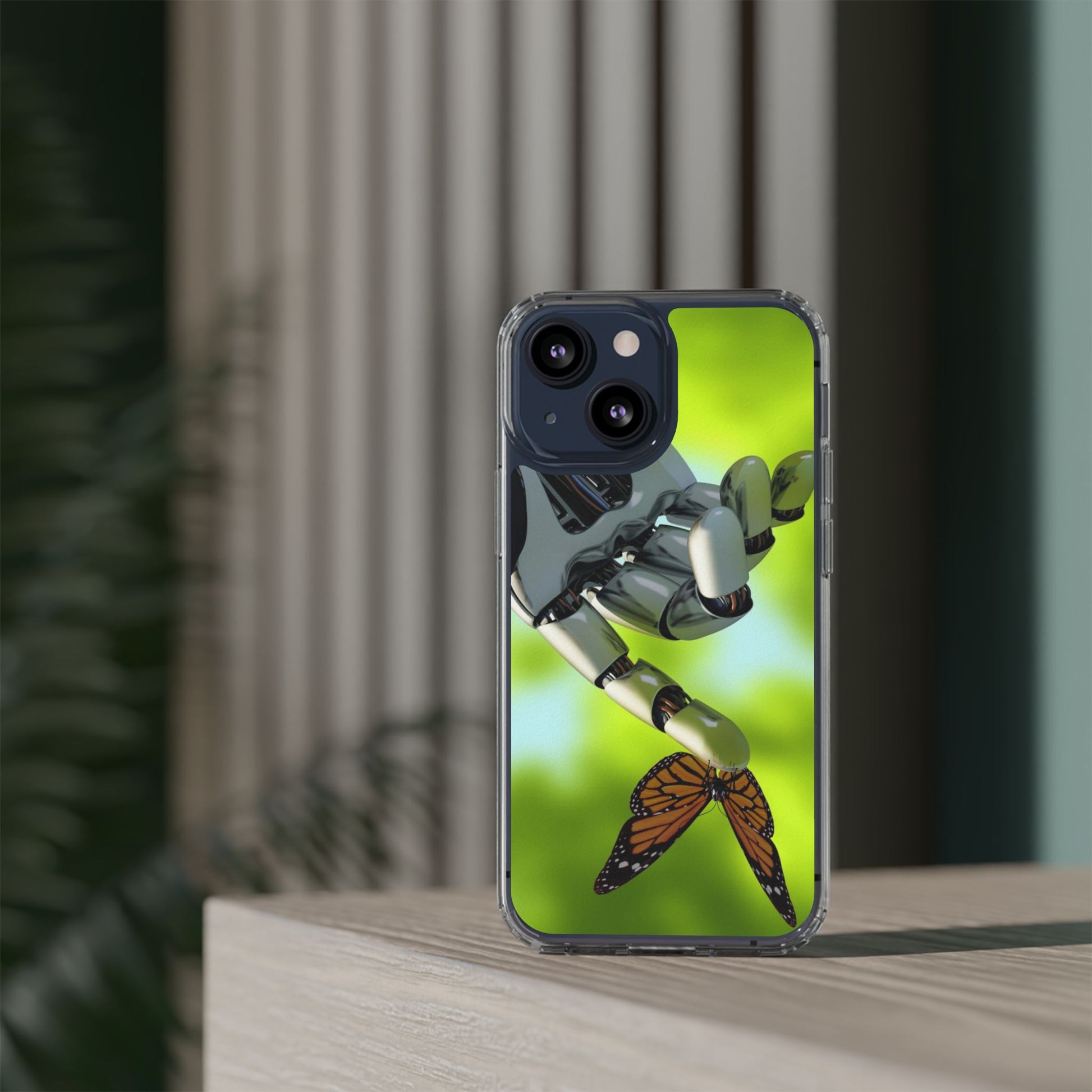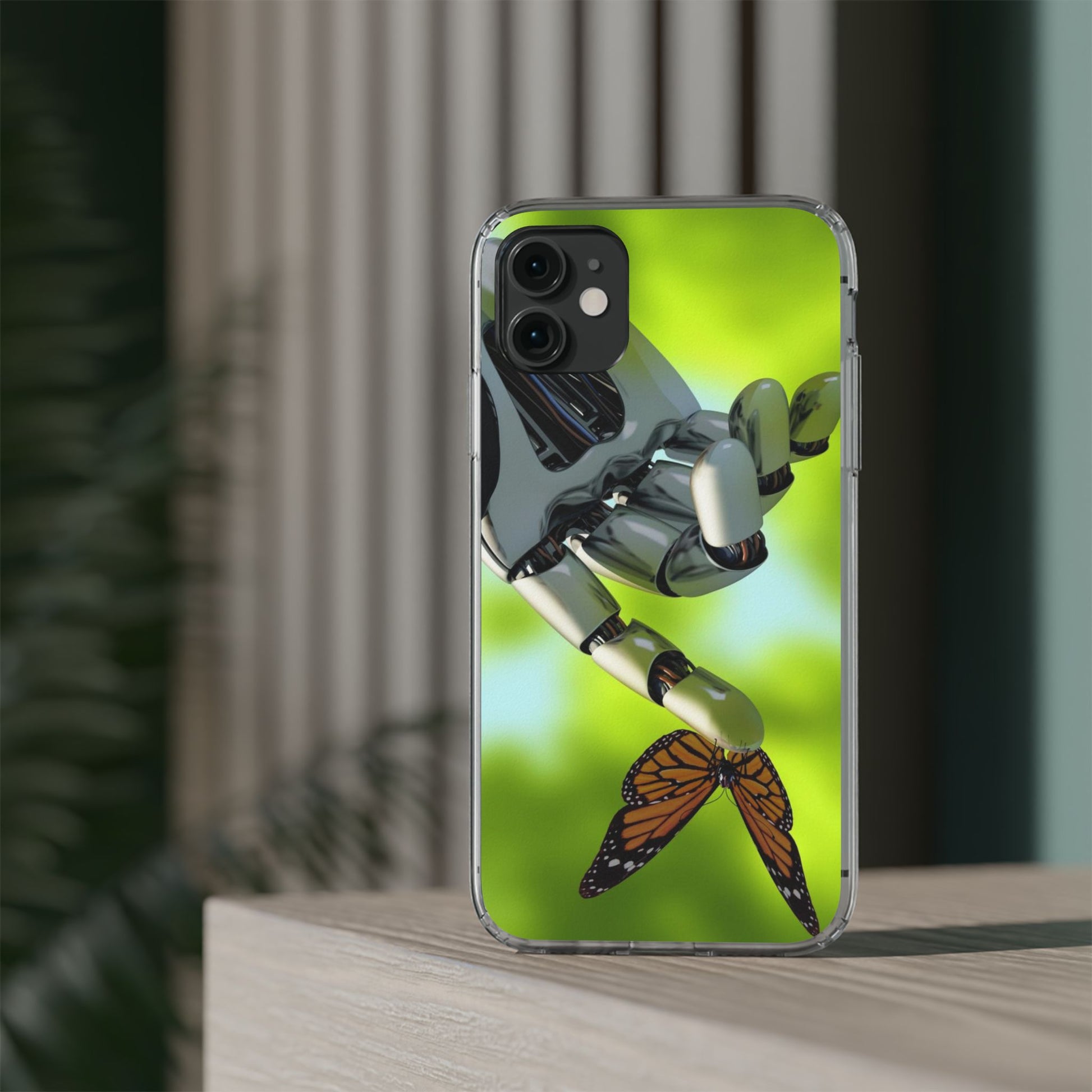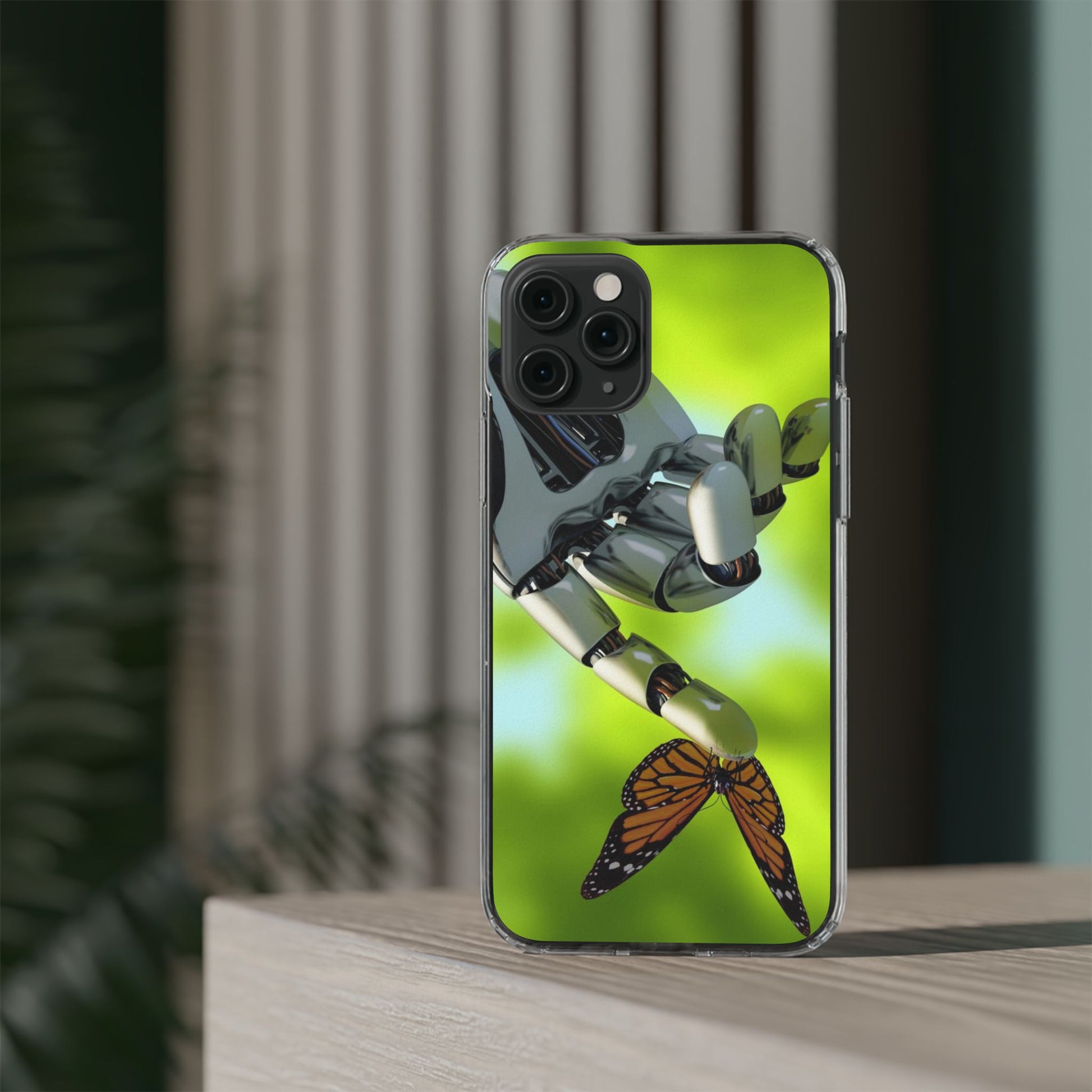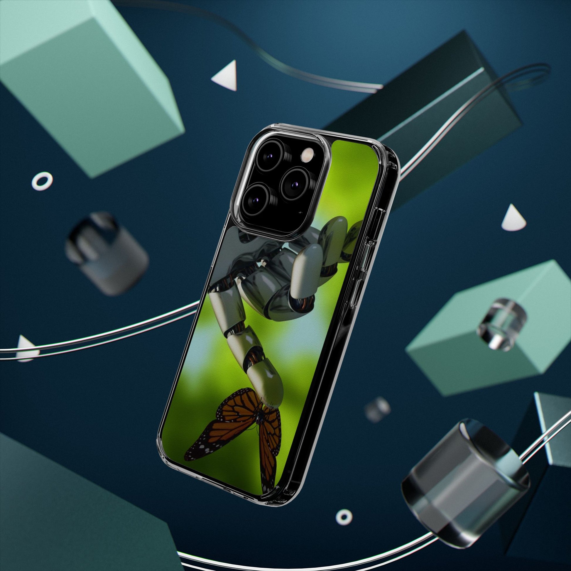 Clear Cases for iPhone 14 Series with Robotic hand and Butterfly.