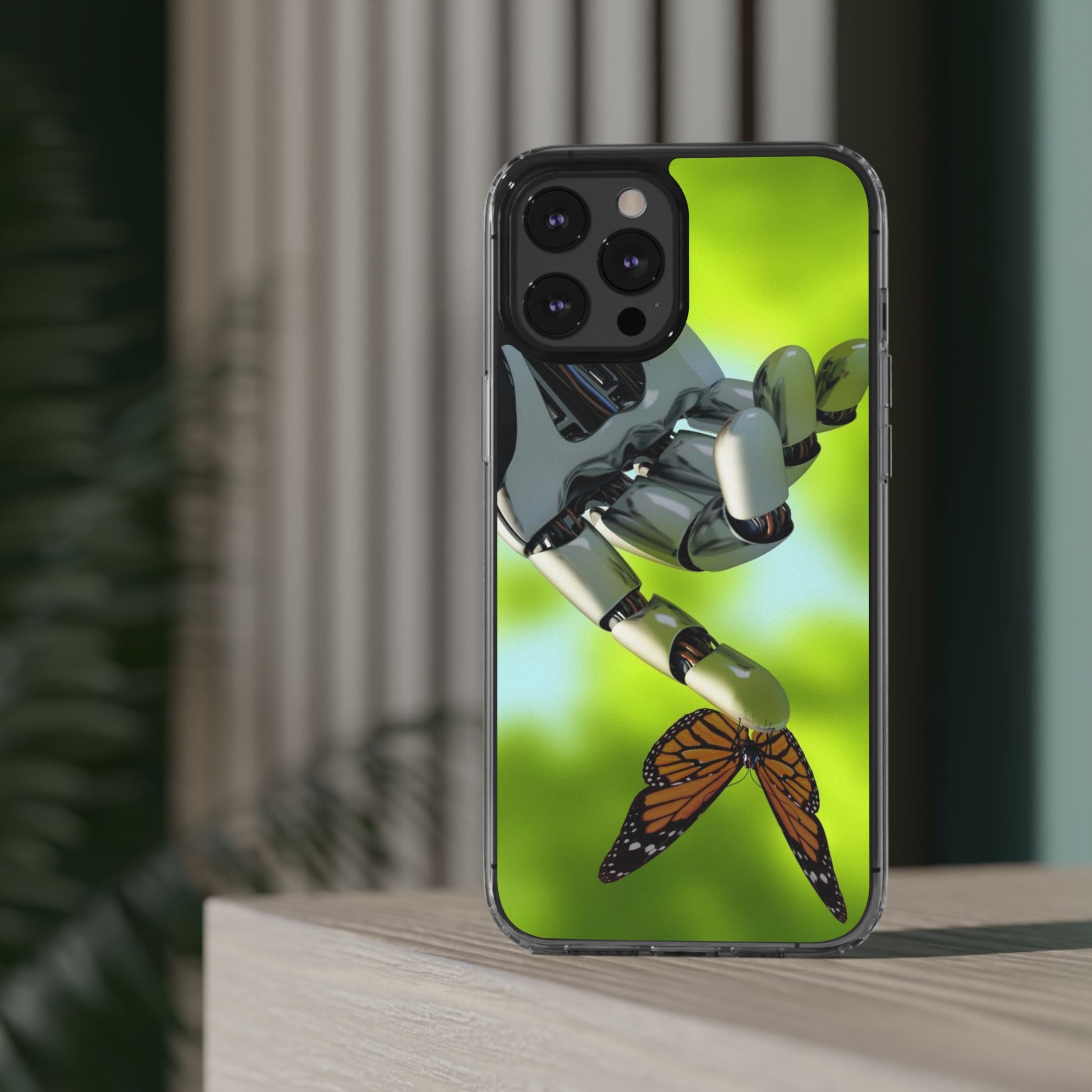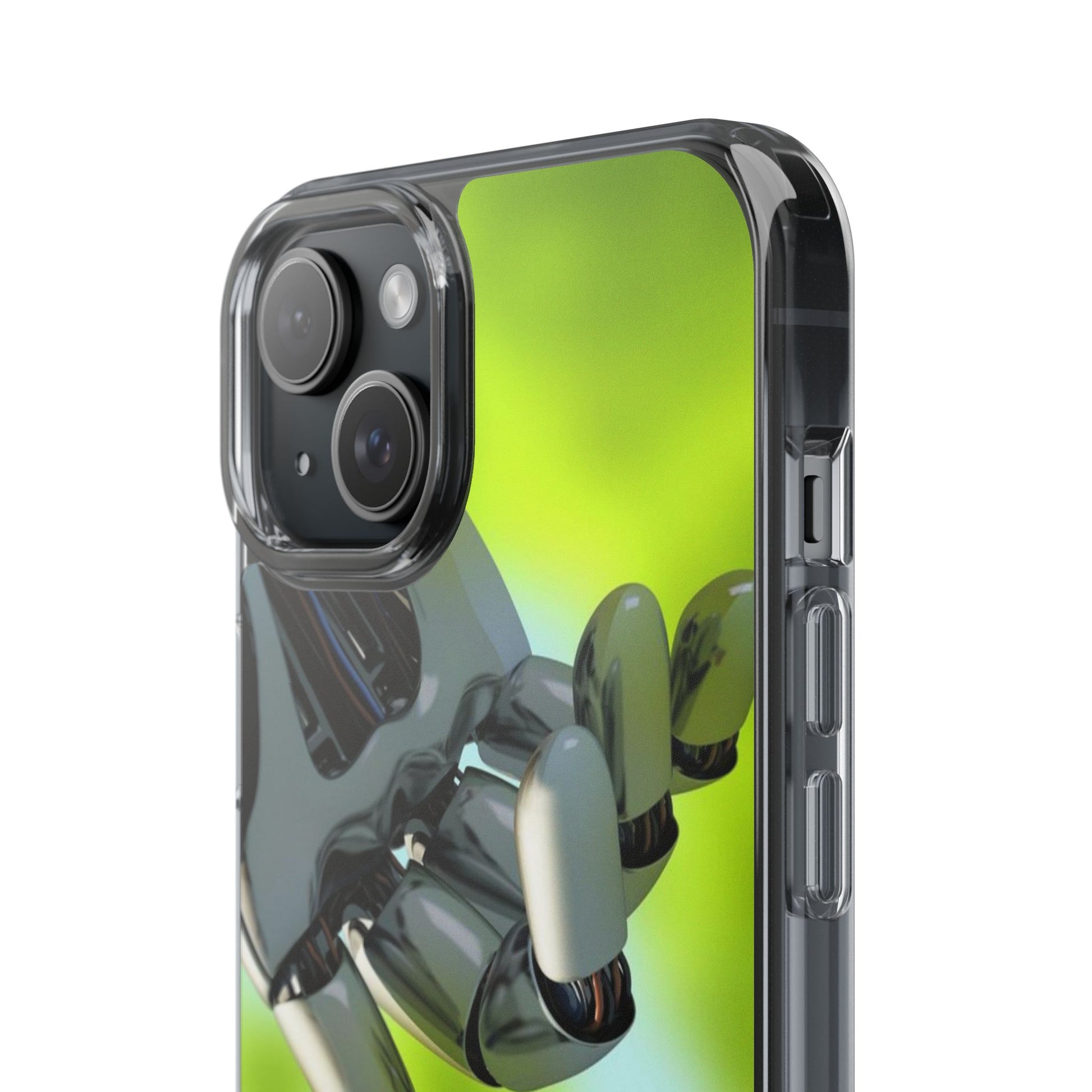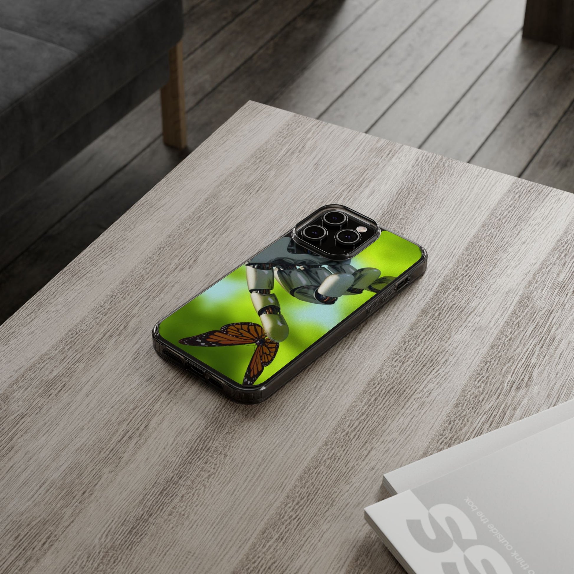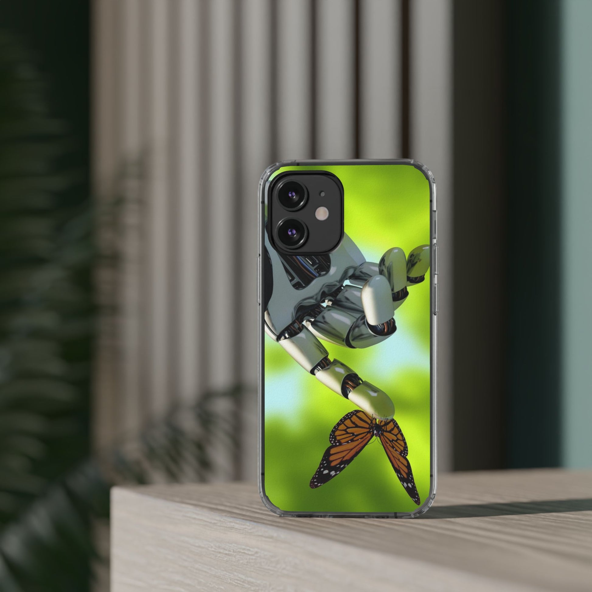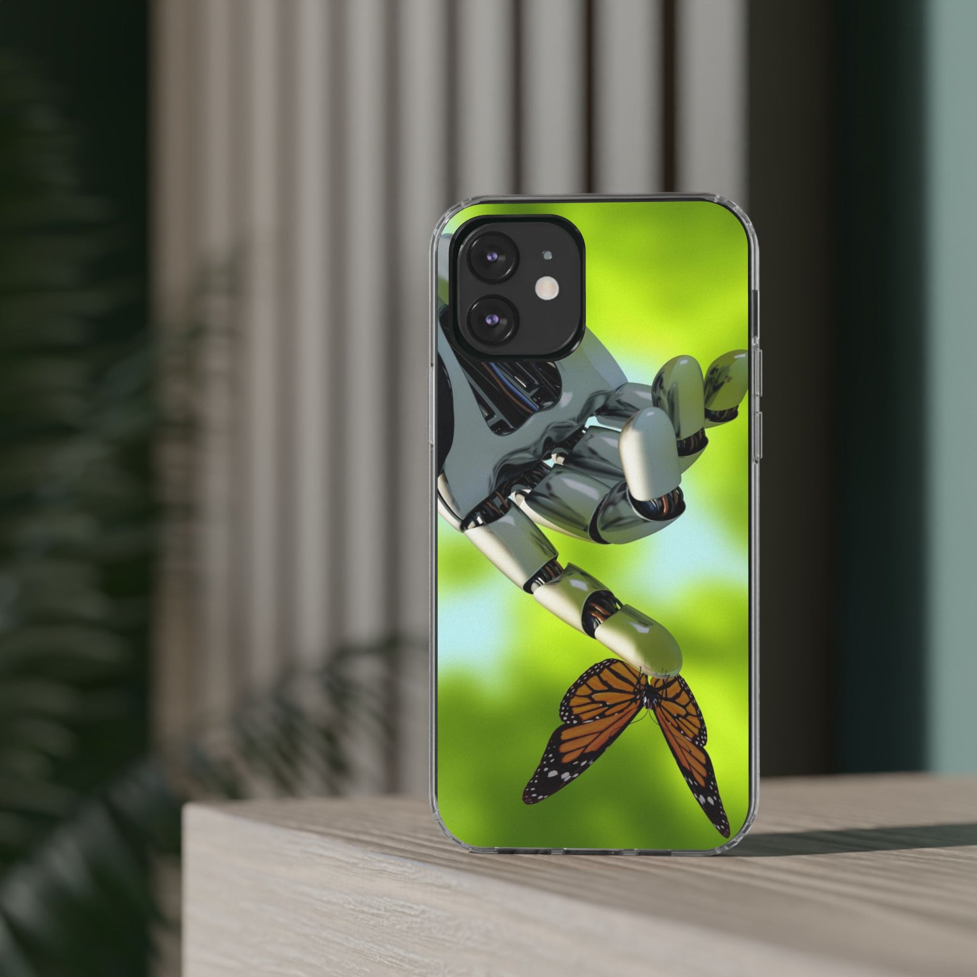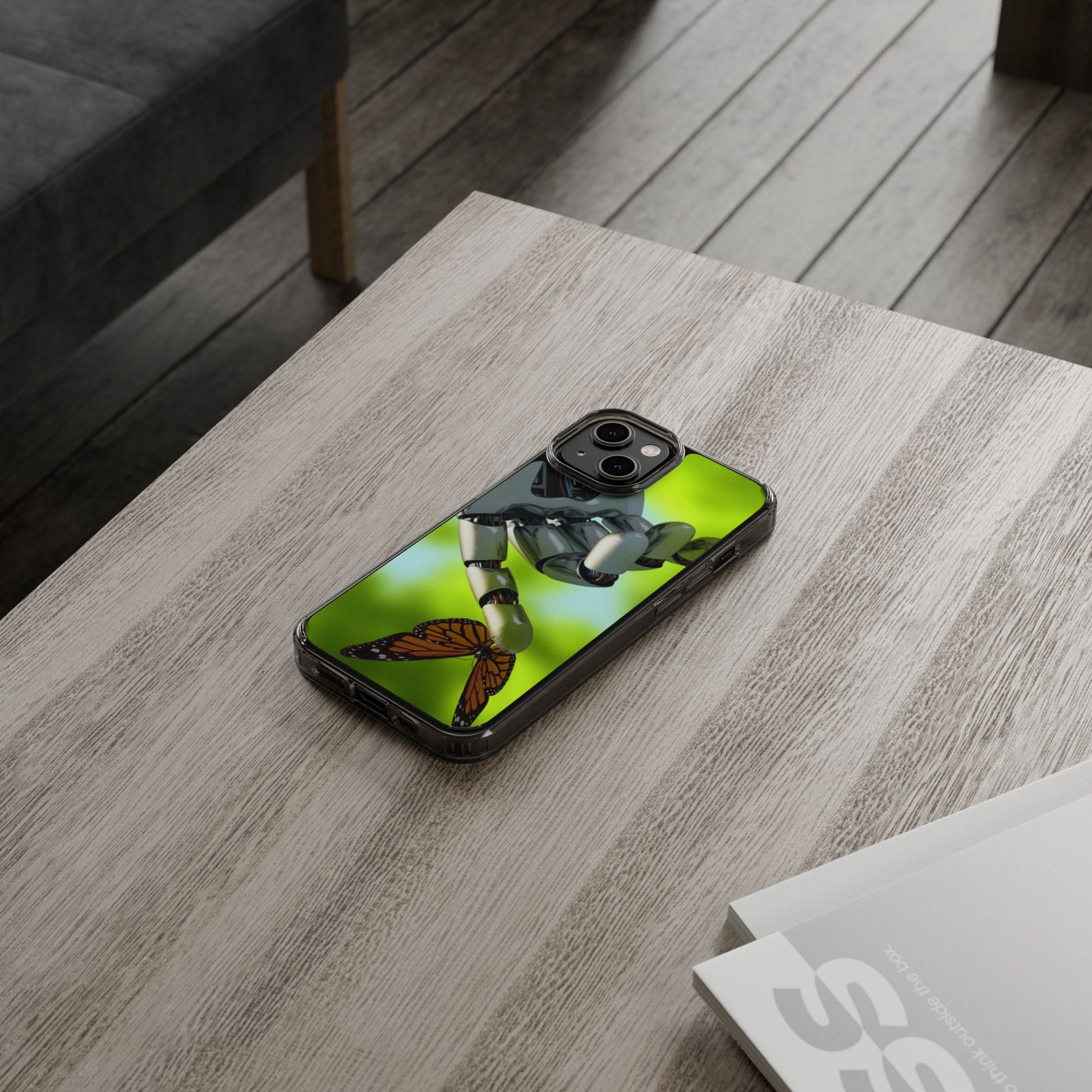 Clear Cases for iPhone 14 Series with Robotic hand and Butterfly.