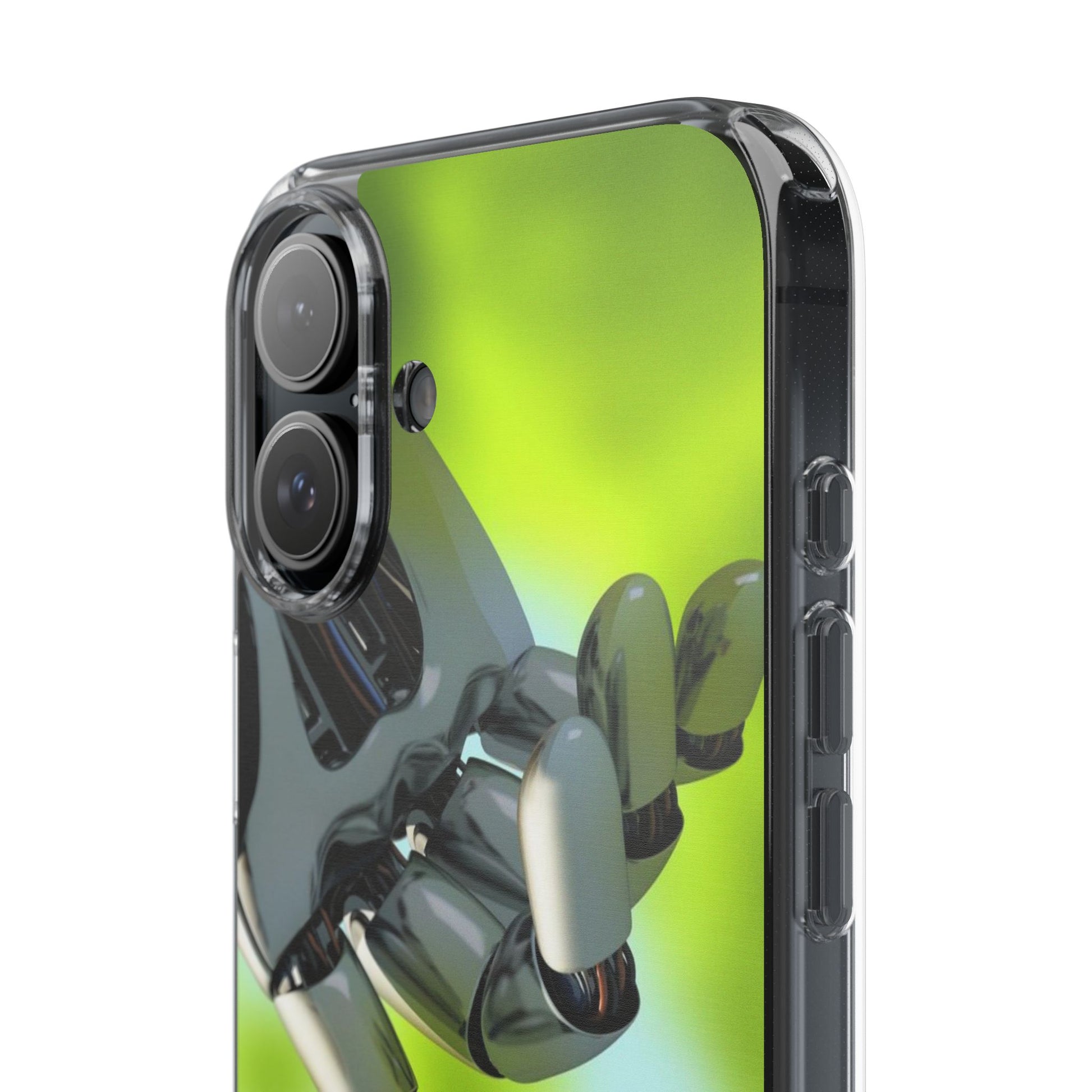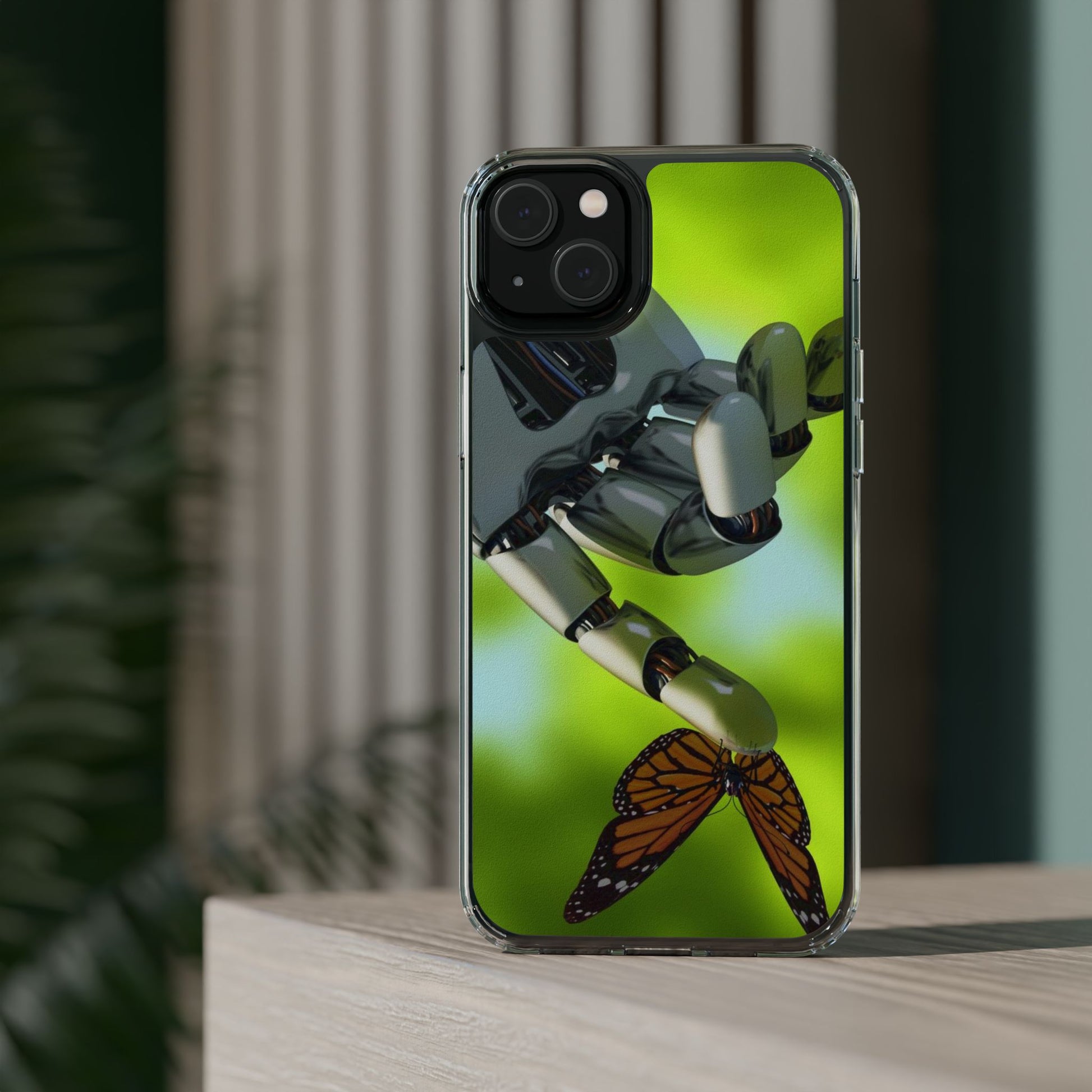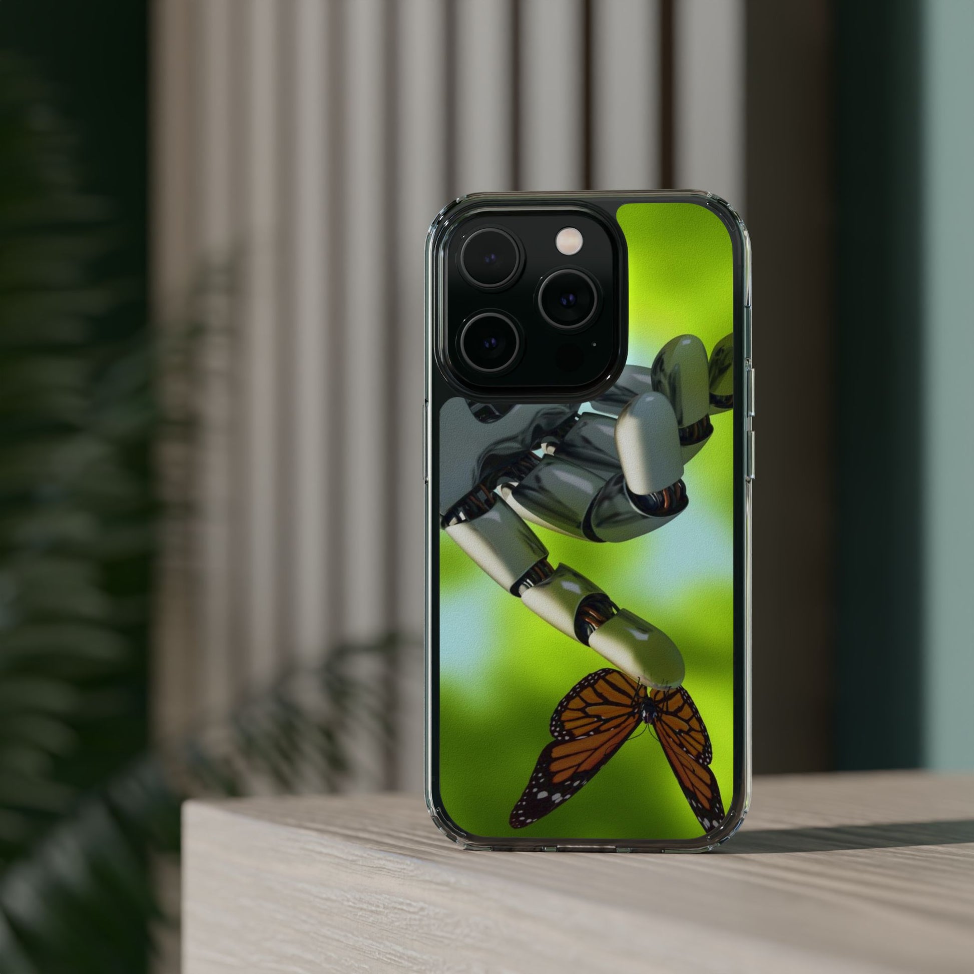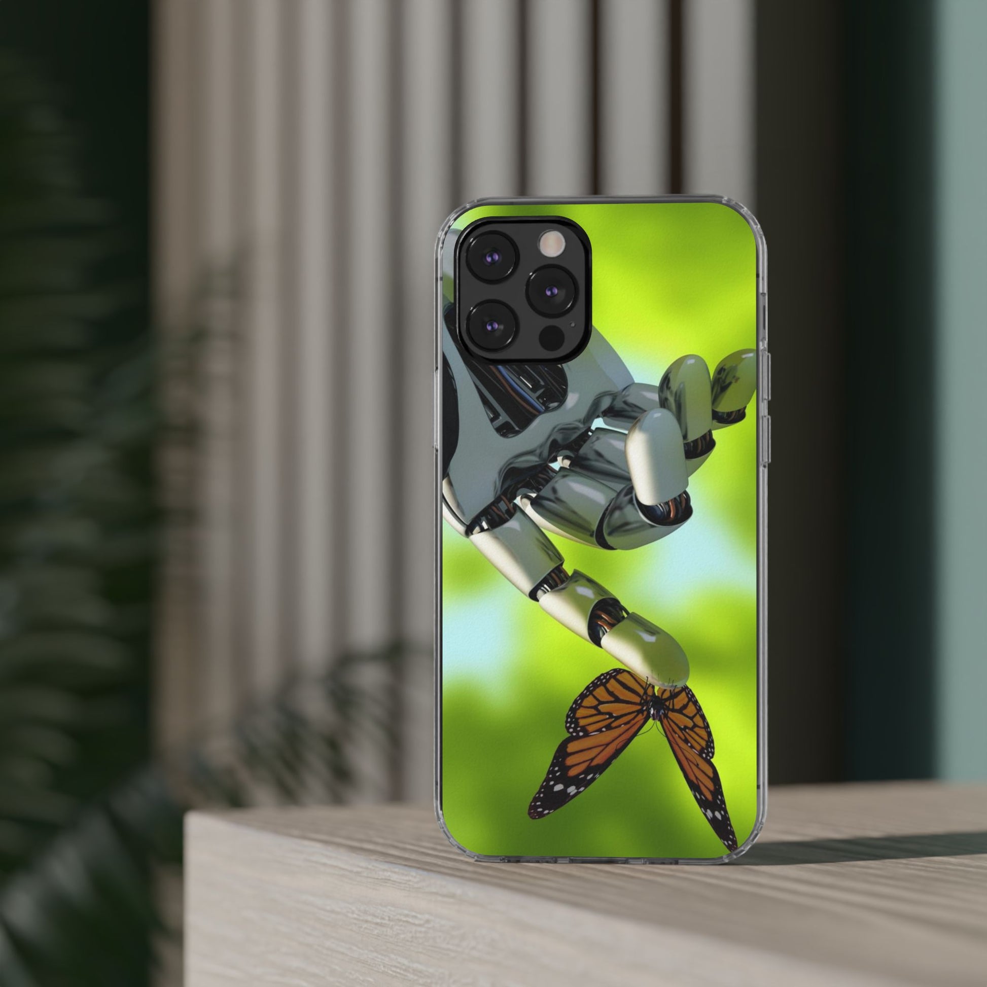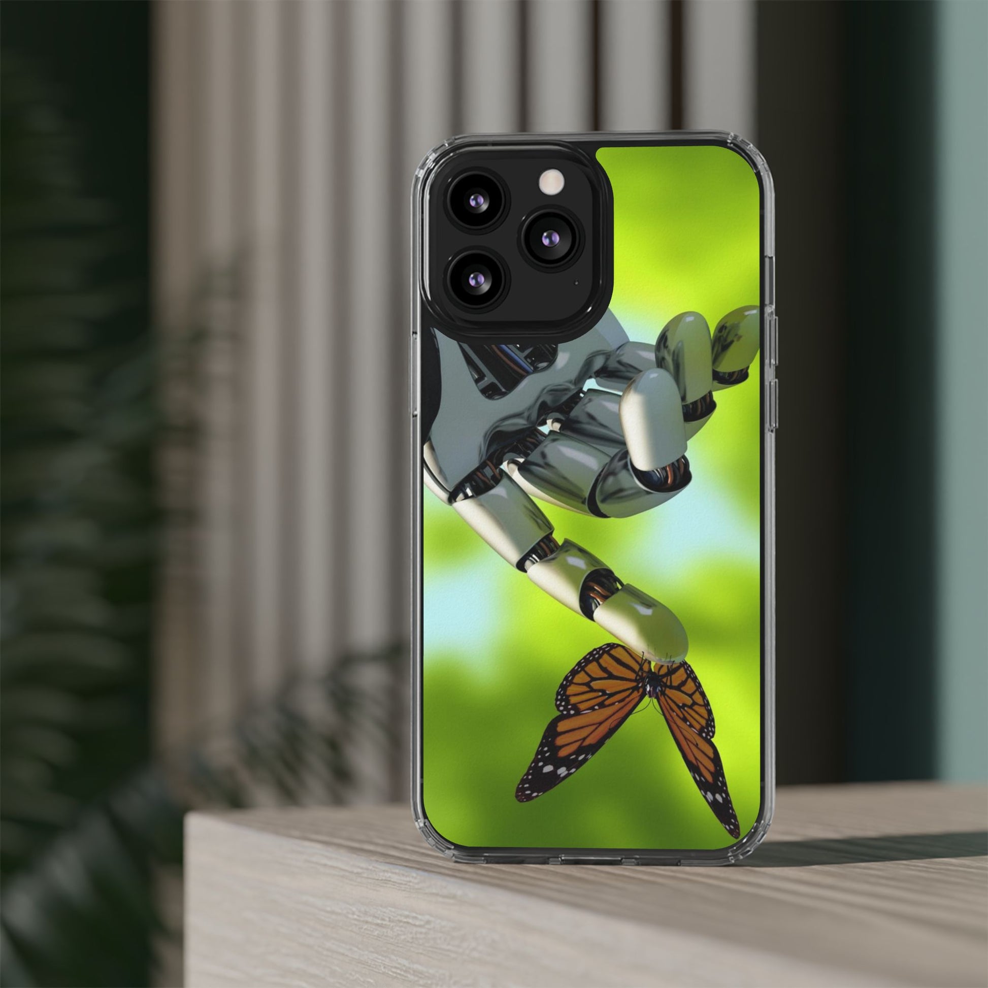 Clear Cases for iPhone 14 Series with Robotic hand and Butterfly.