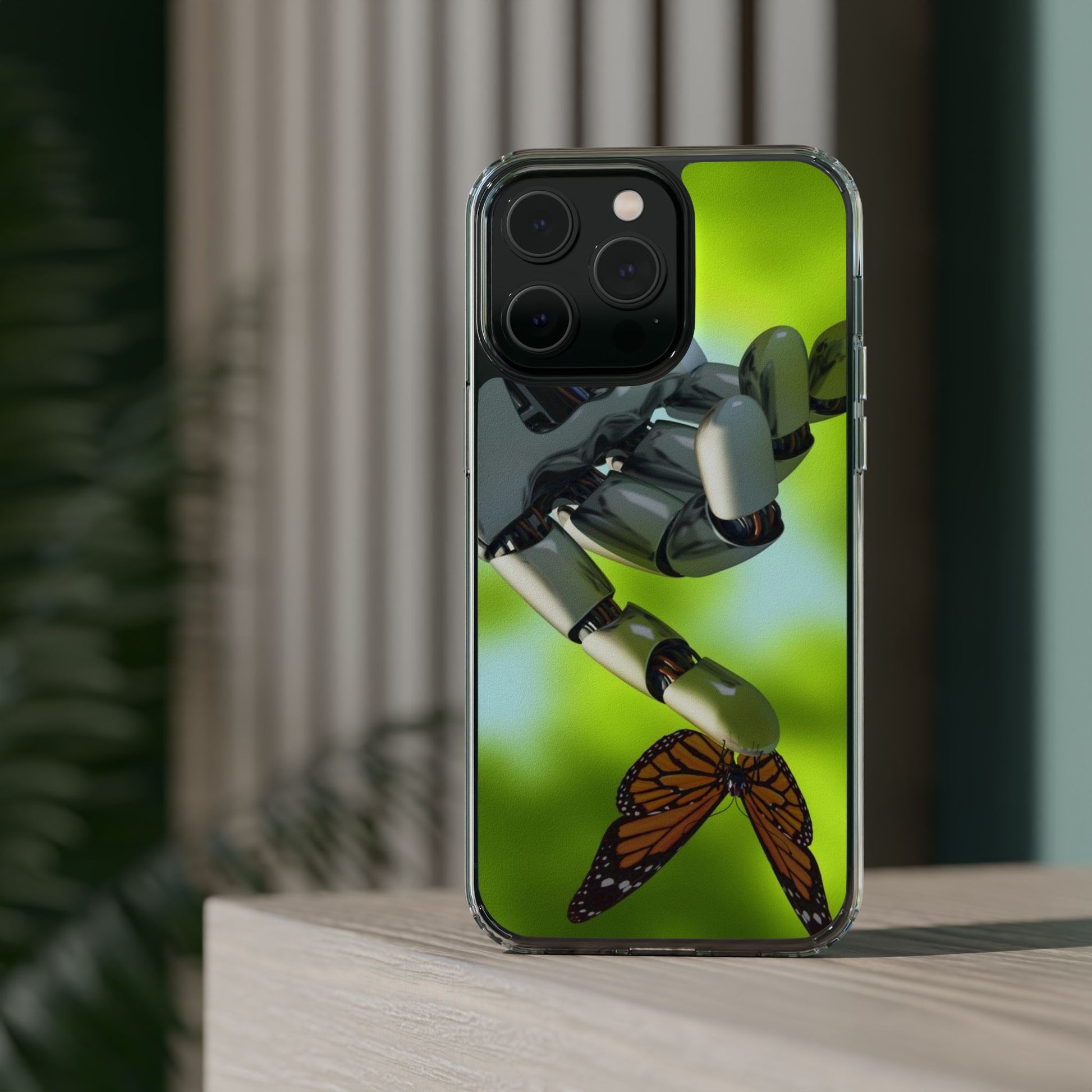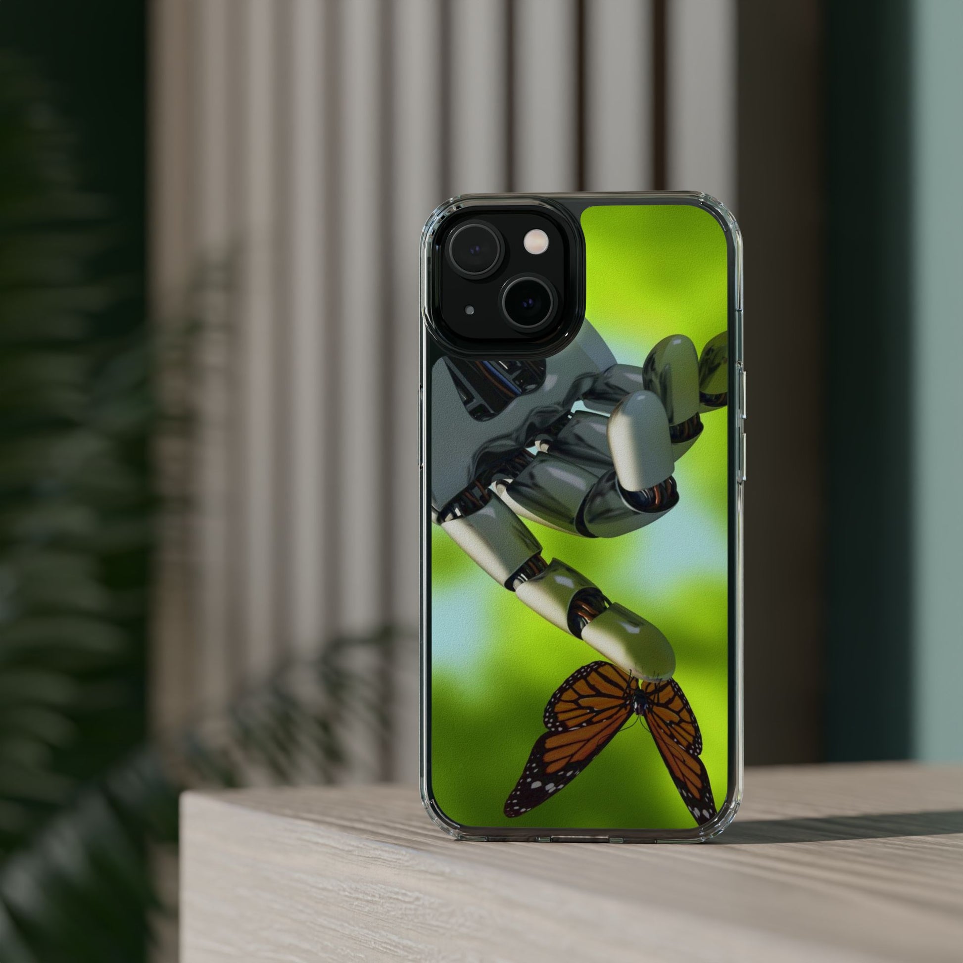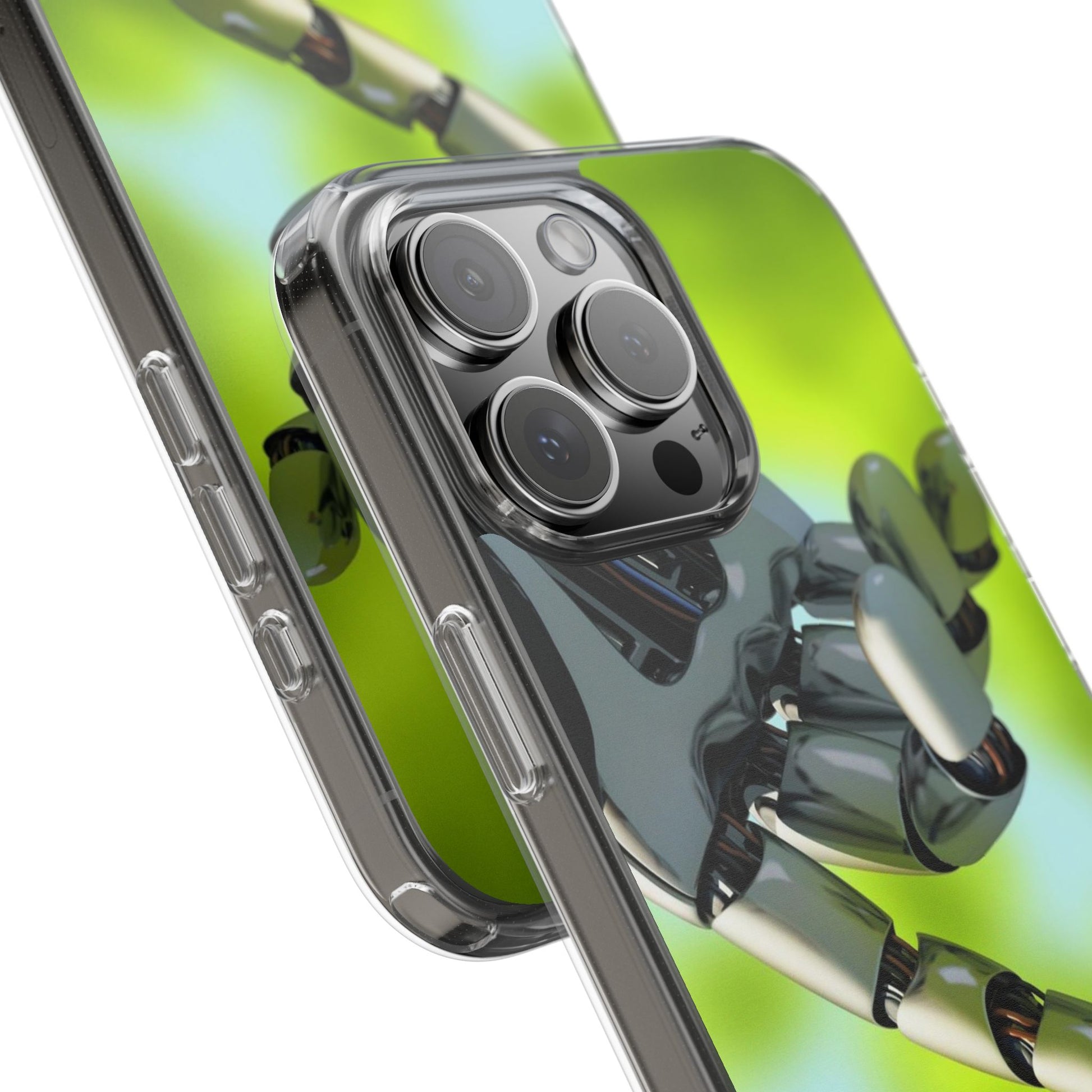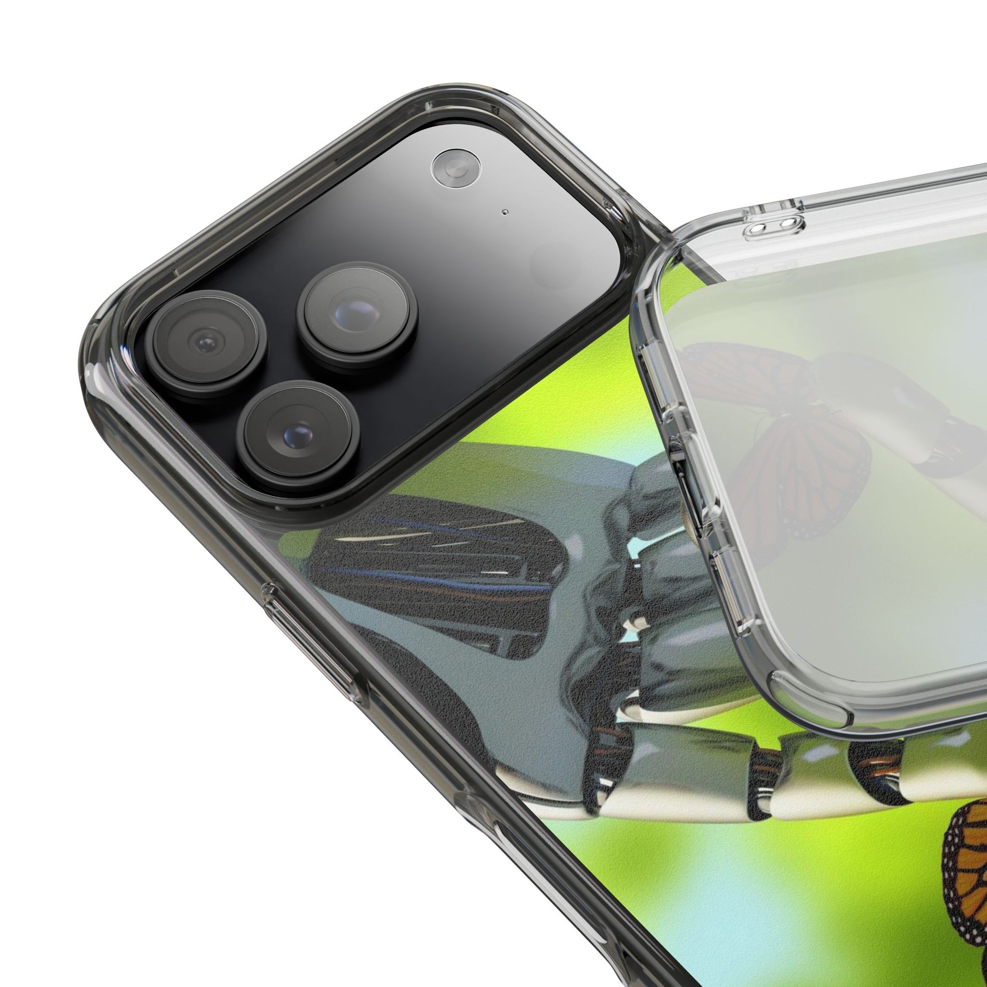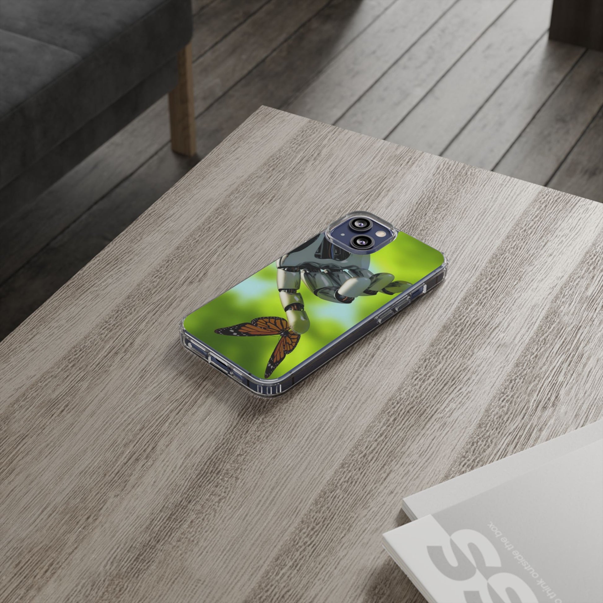 Clear Cases for iPhone 14 Series with Robotic hand and Butterfly.