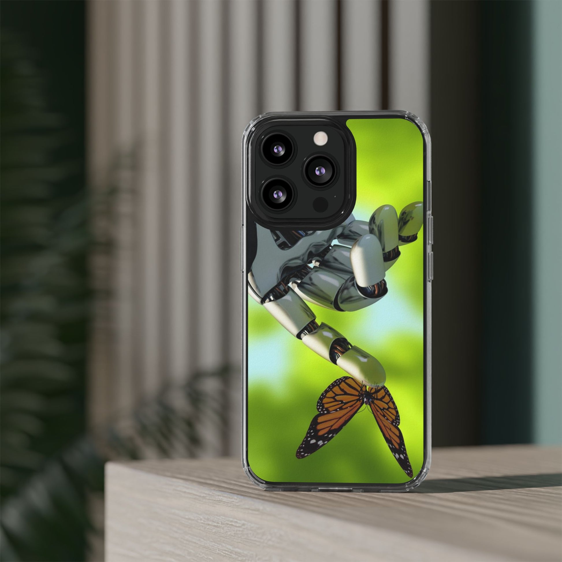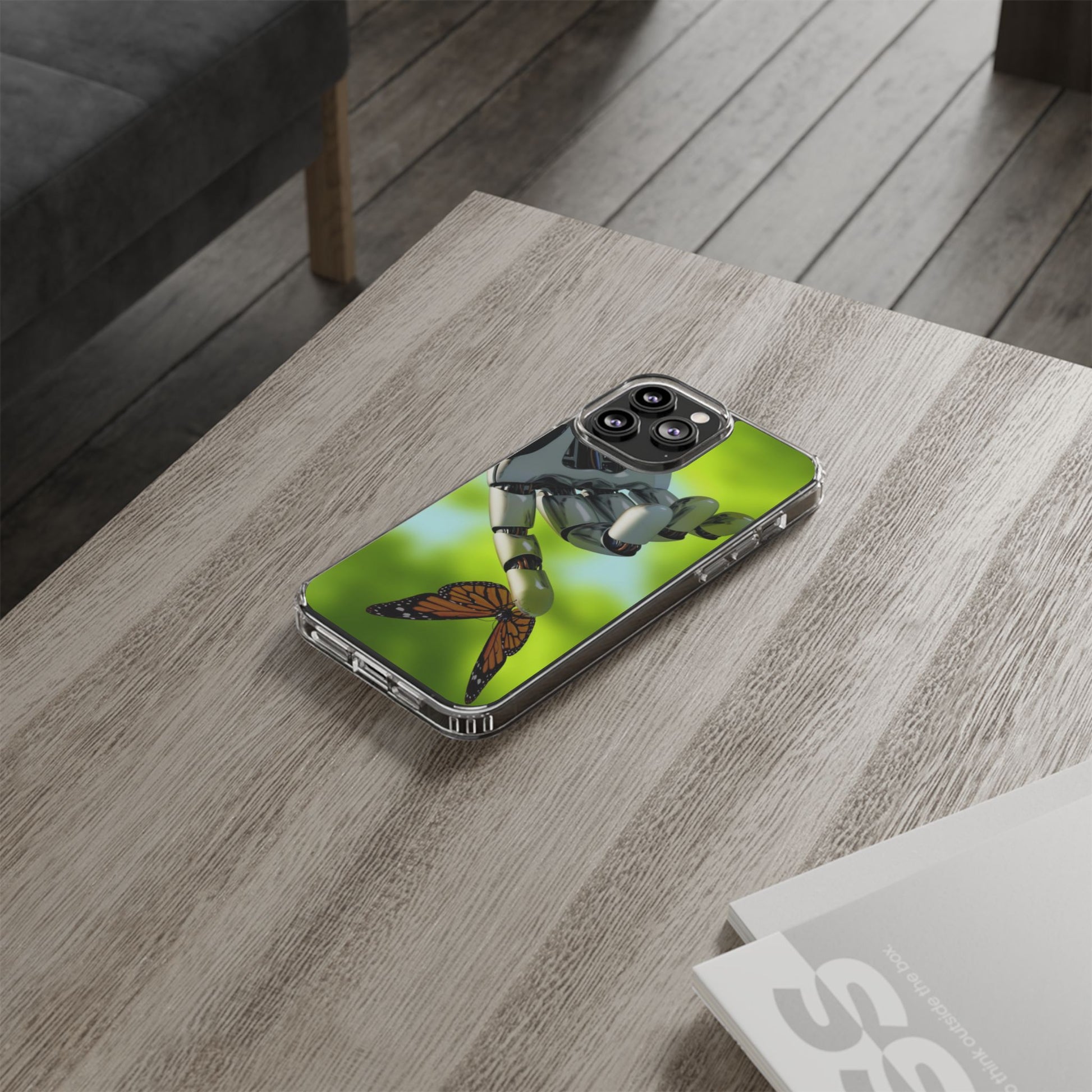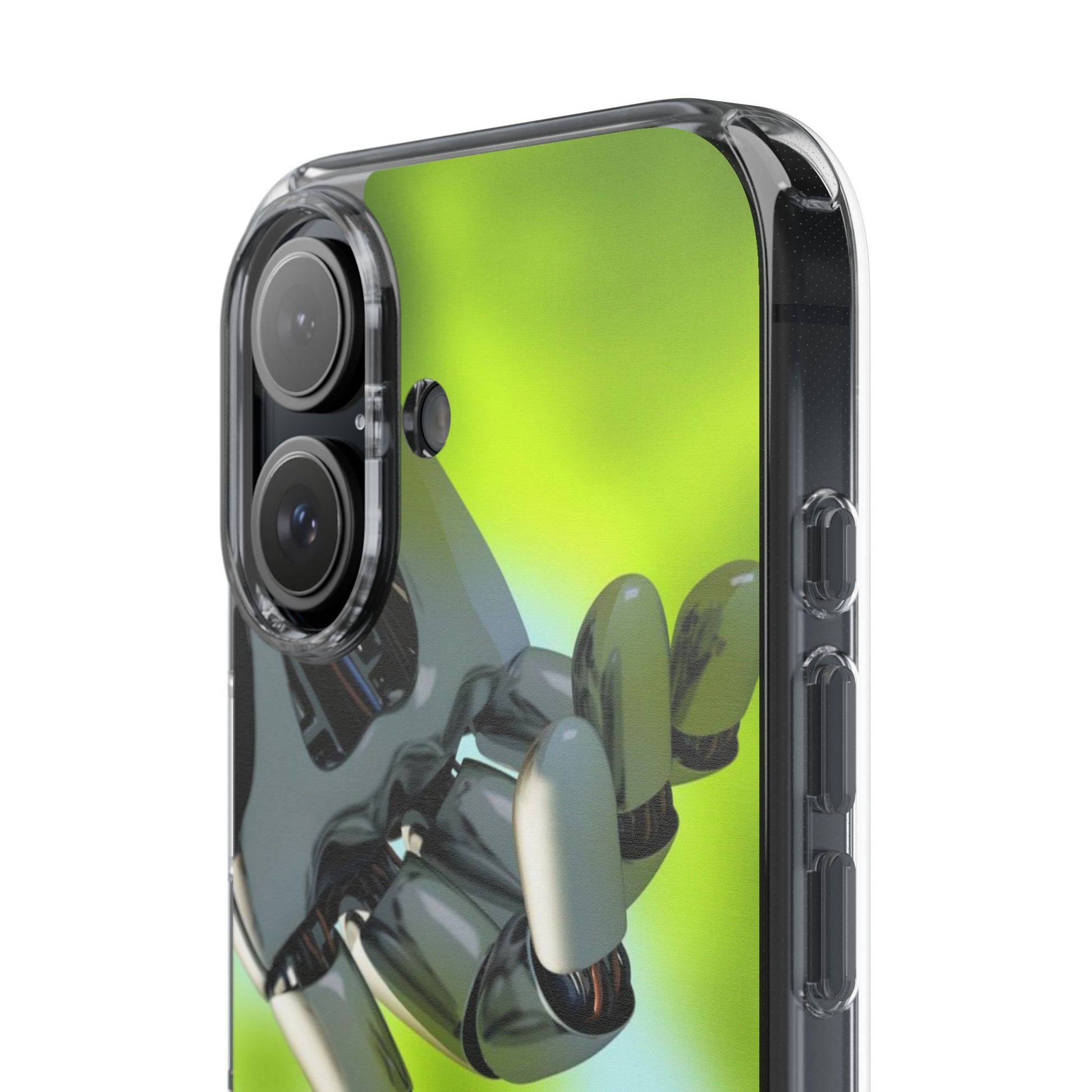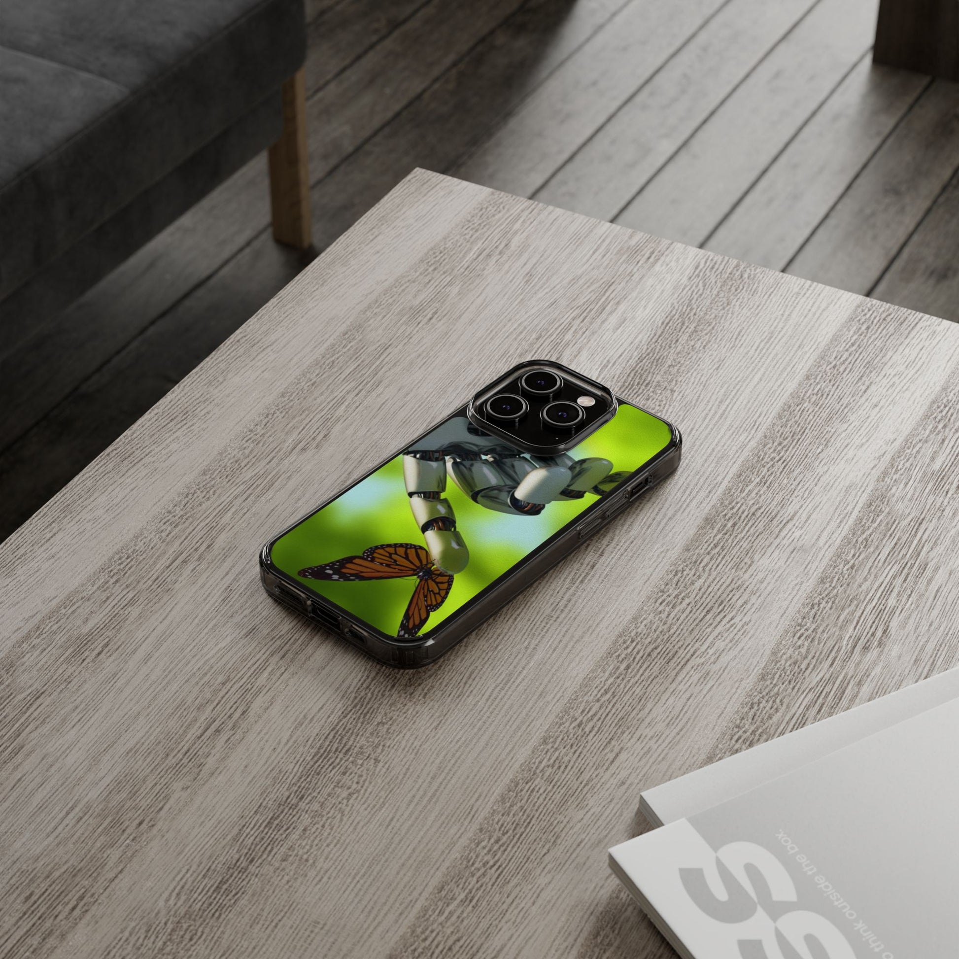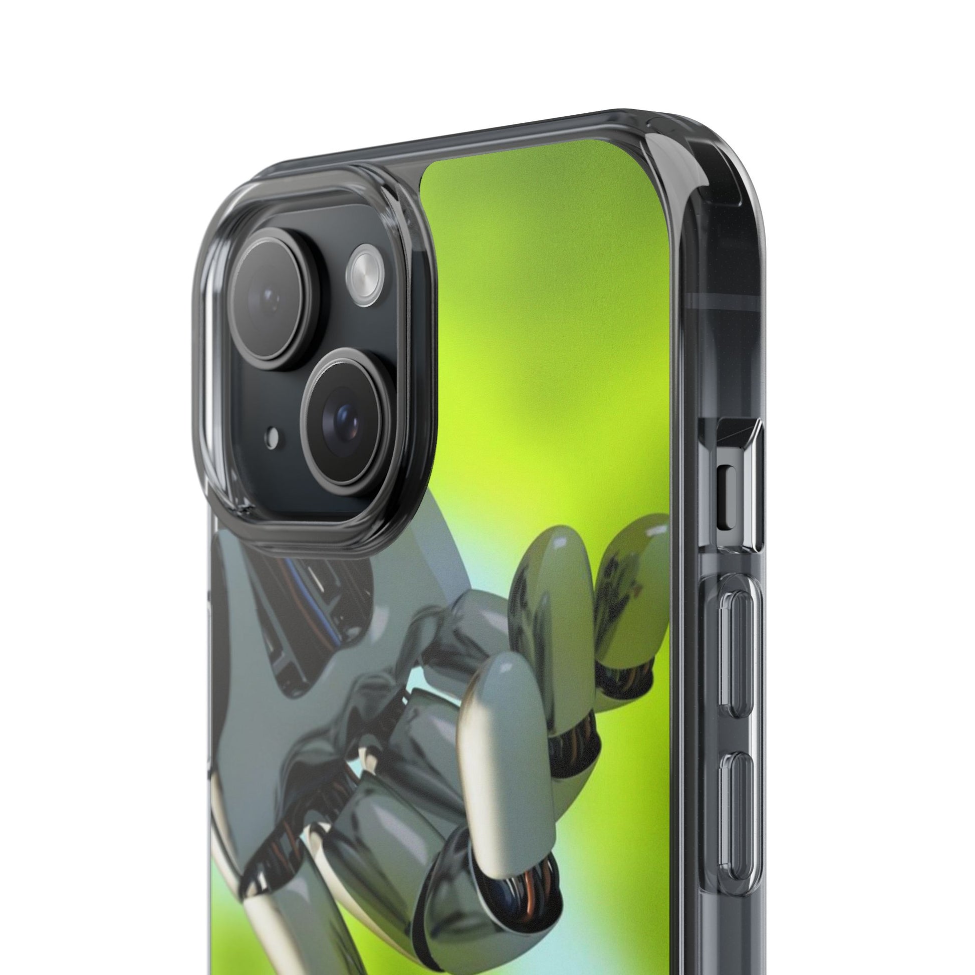 Clear Cases for iPhone 14 Series with Robotic hand and Butterfly.