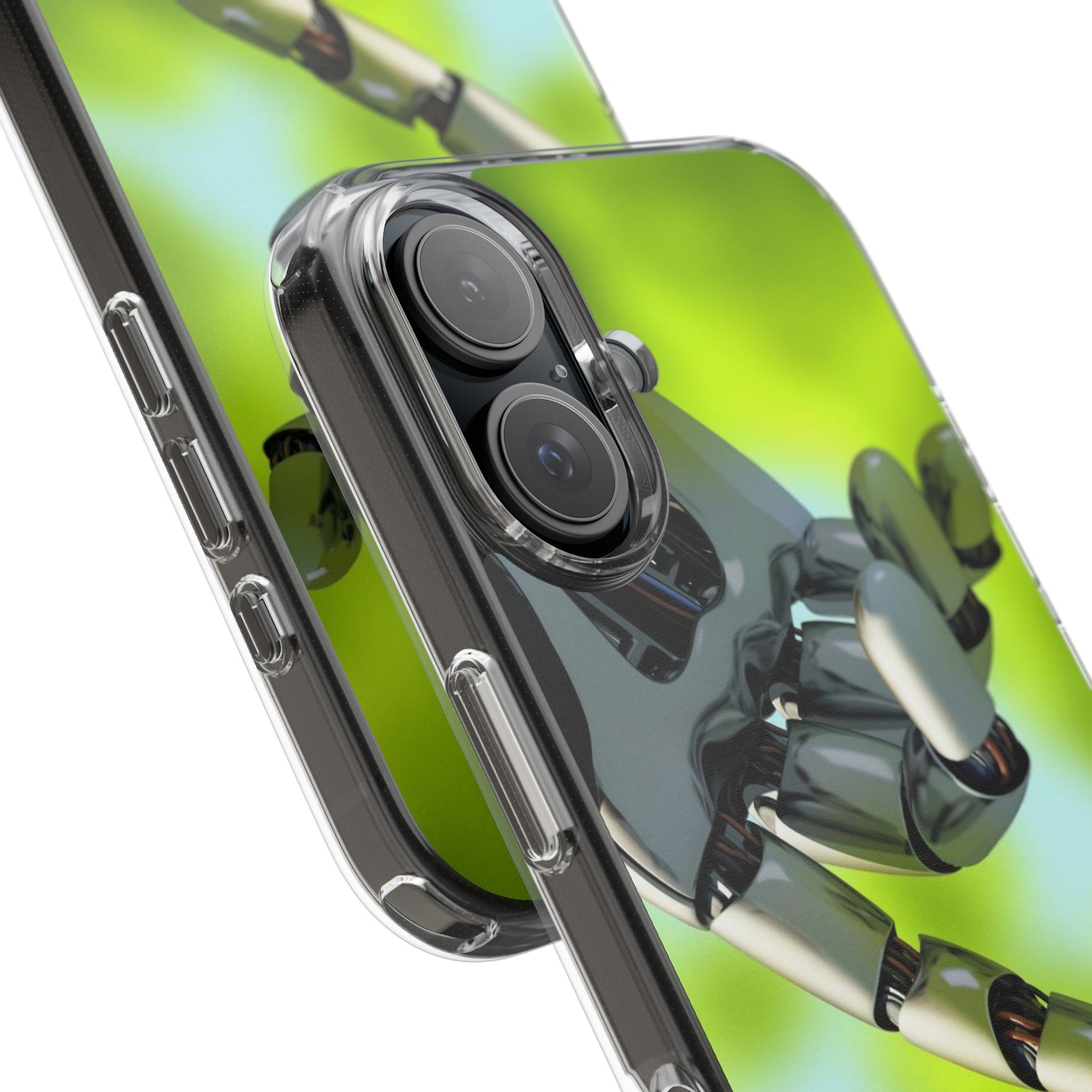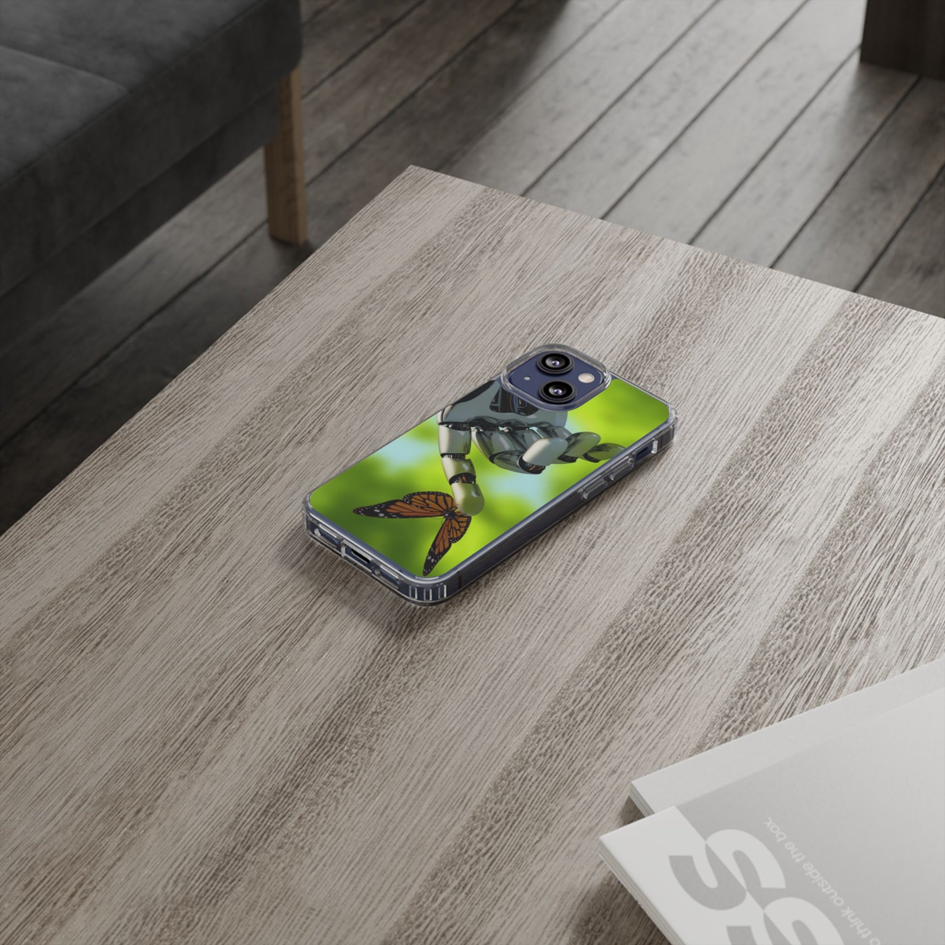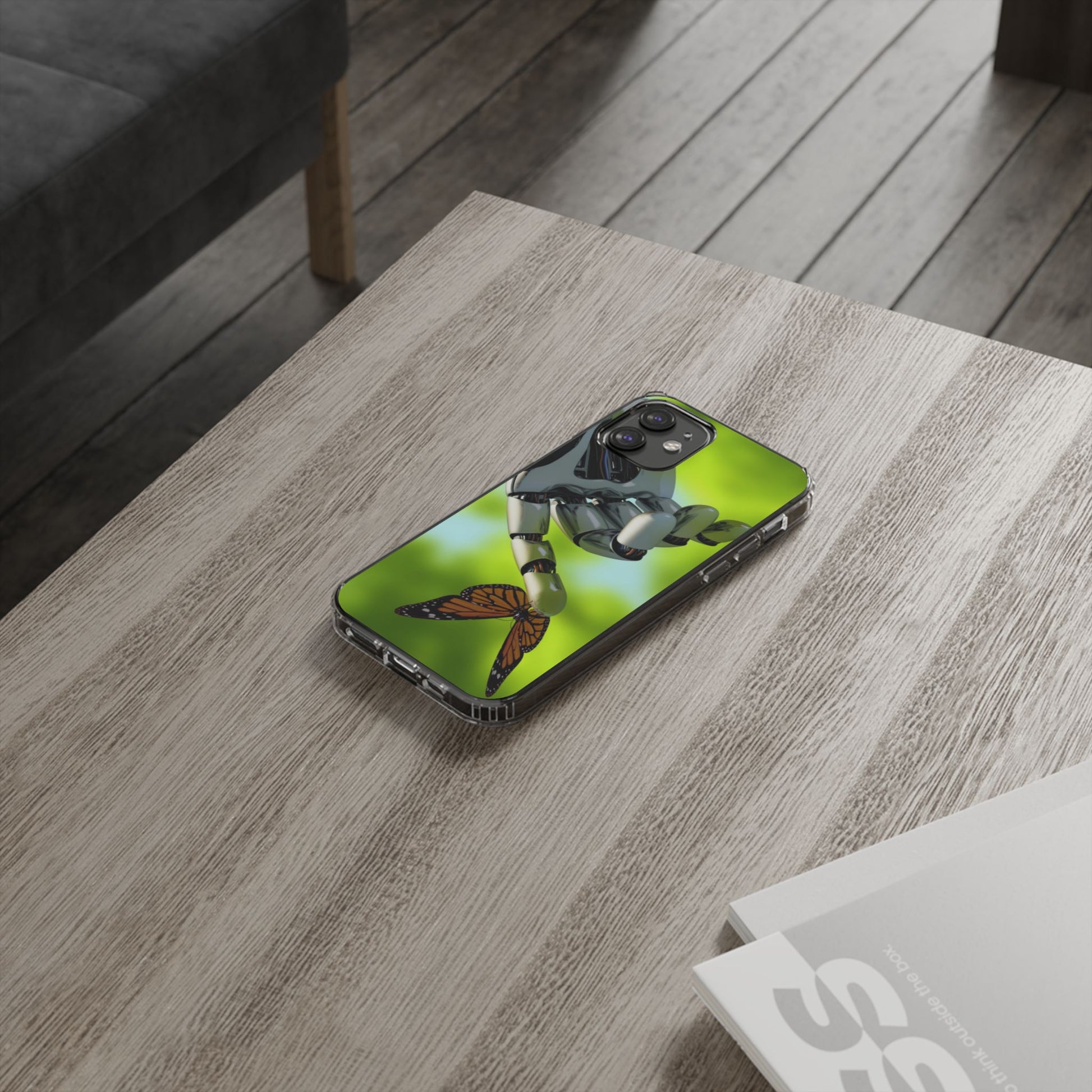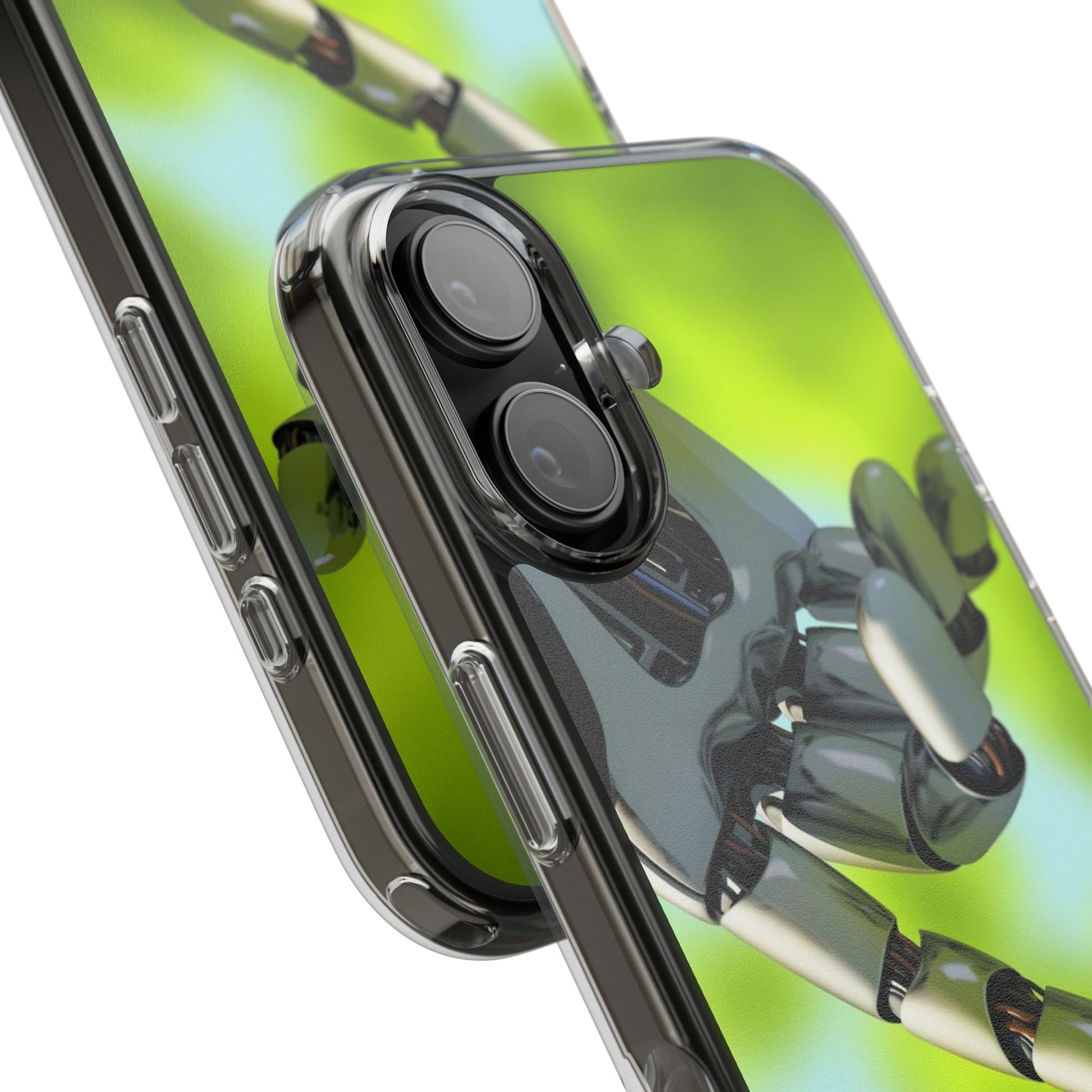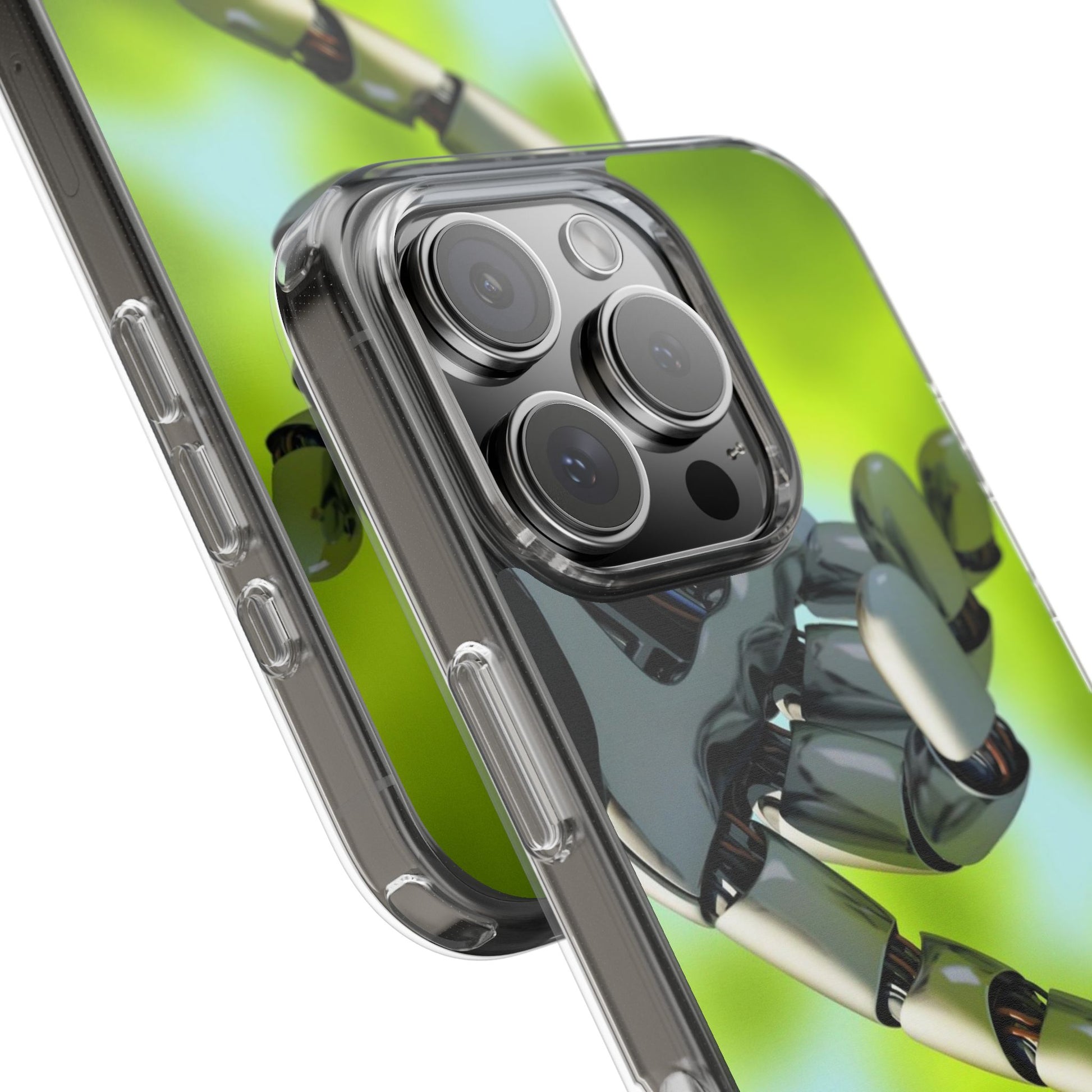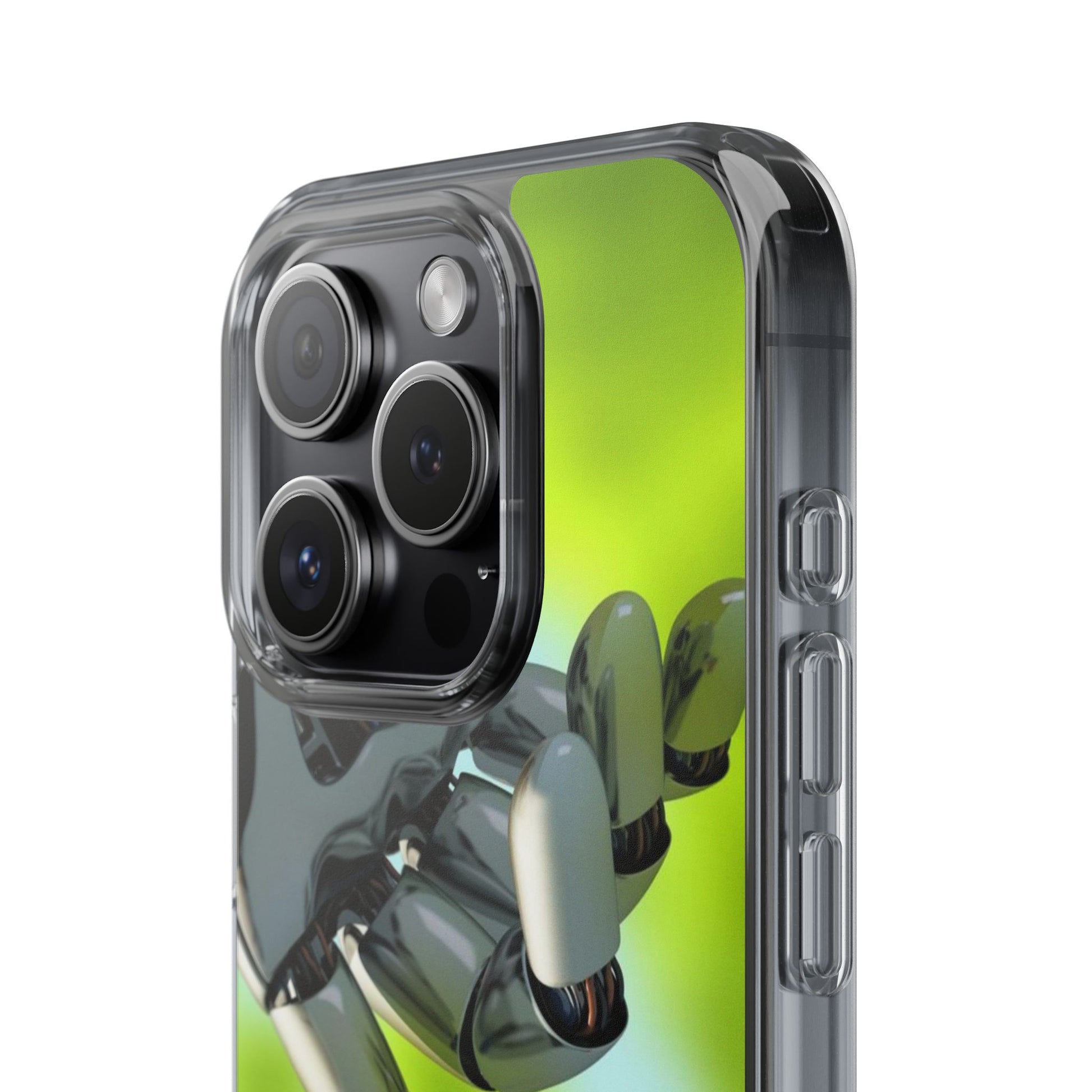 Clear Cases for iPhone 14 Series with Robotic hand and Butterfly.