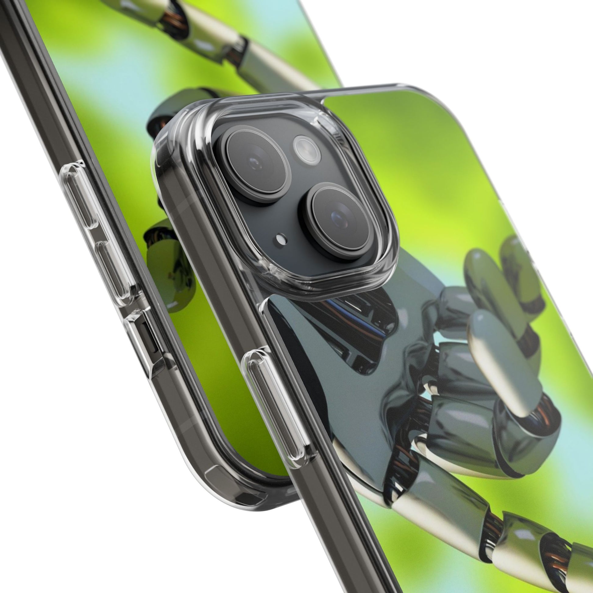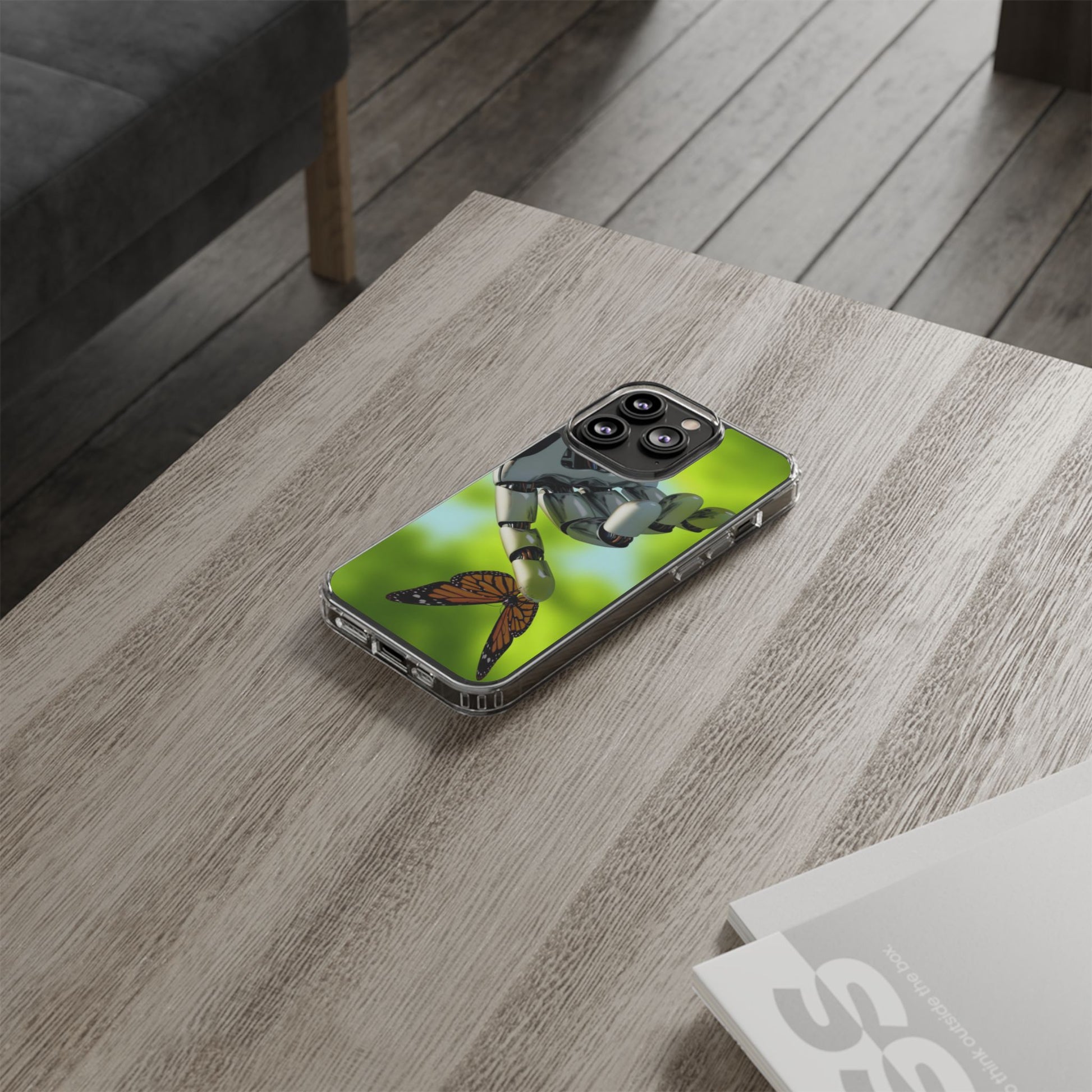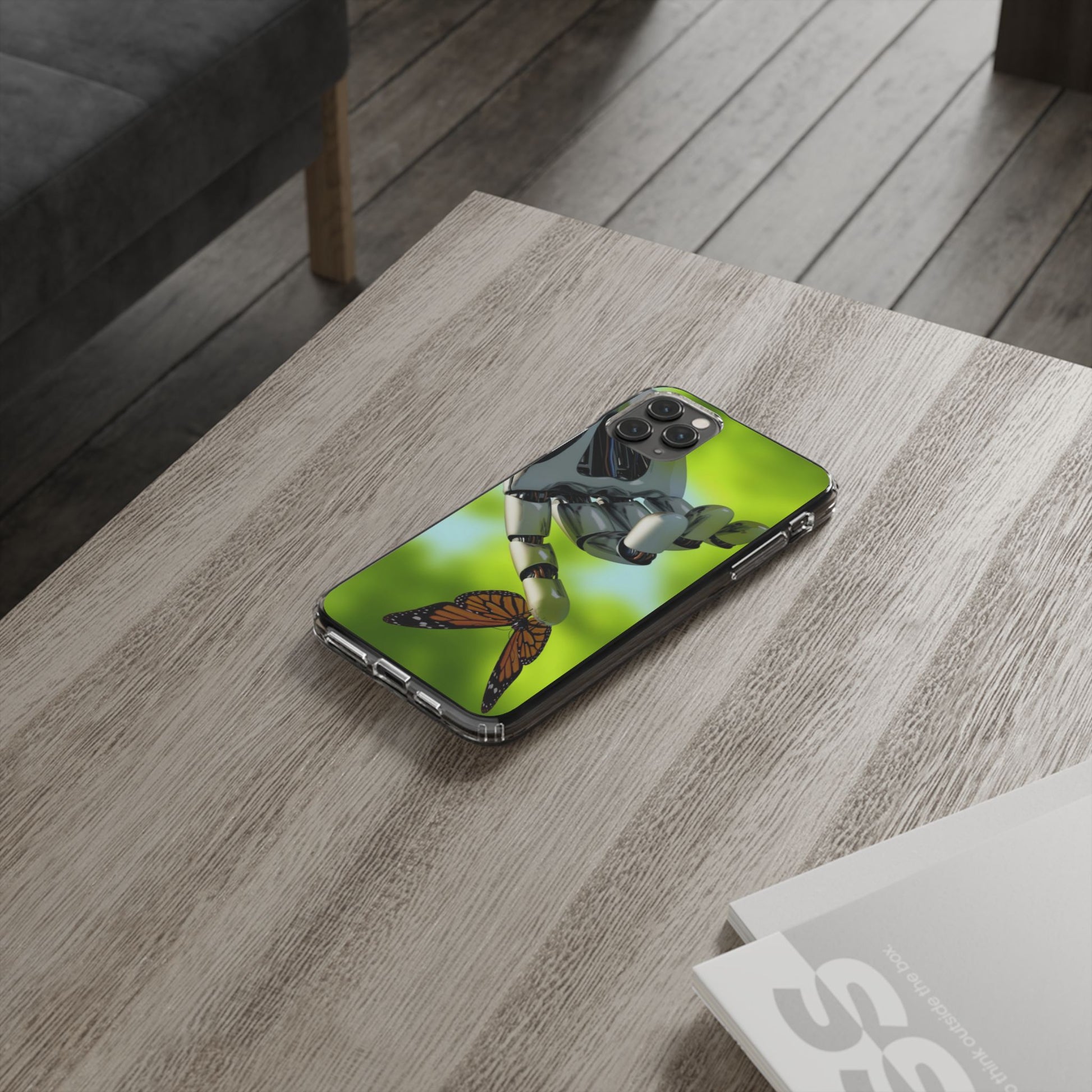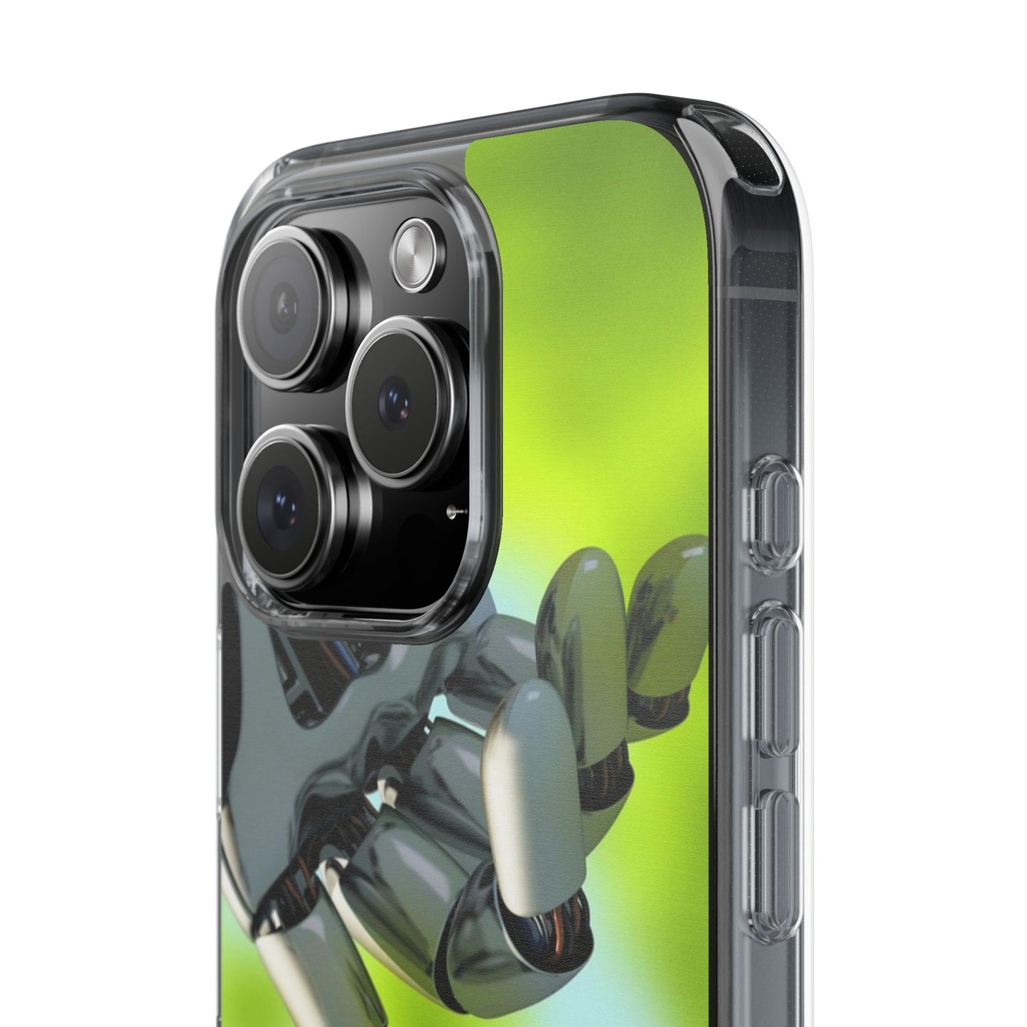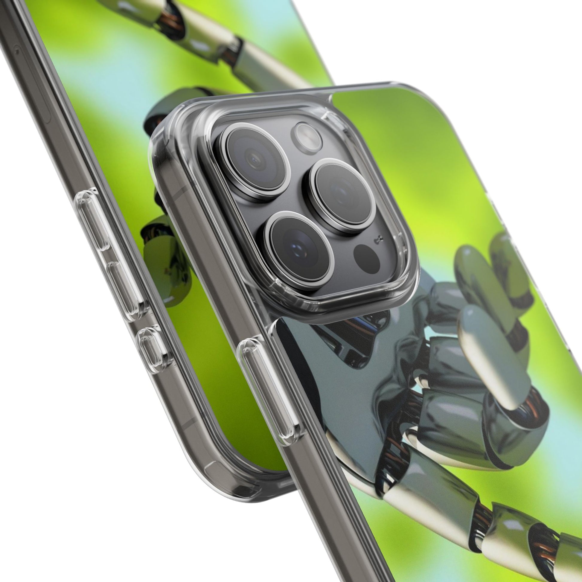 Clear Cases for iPhone 14 Series with Robotic hand and Butterfly.