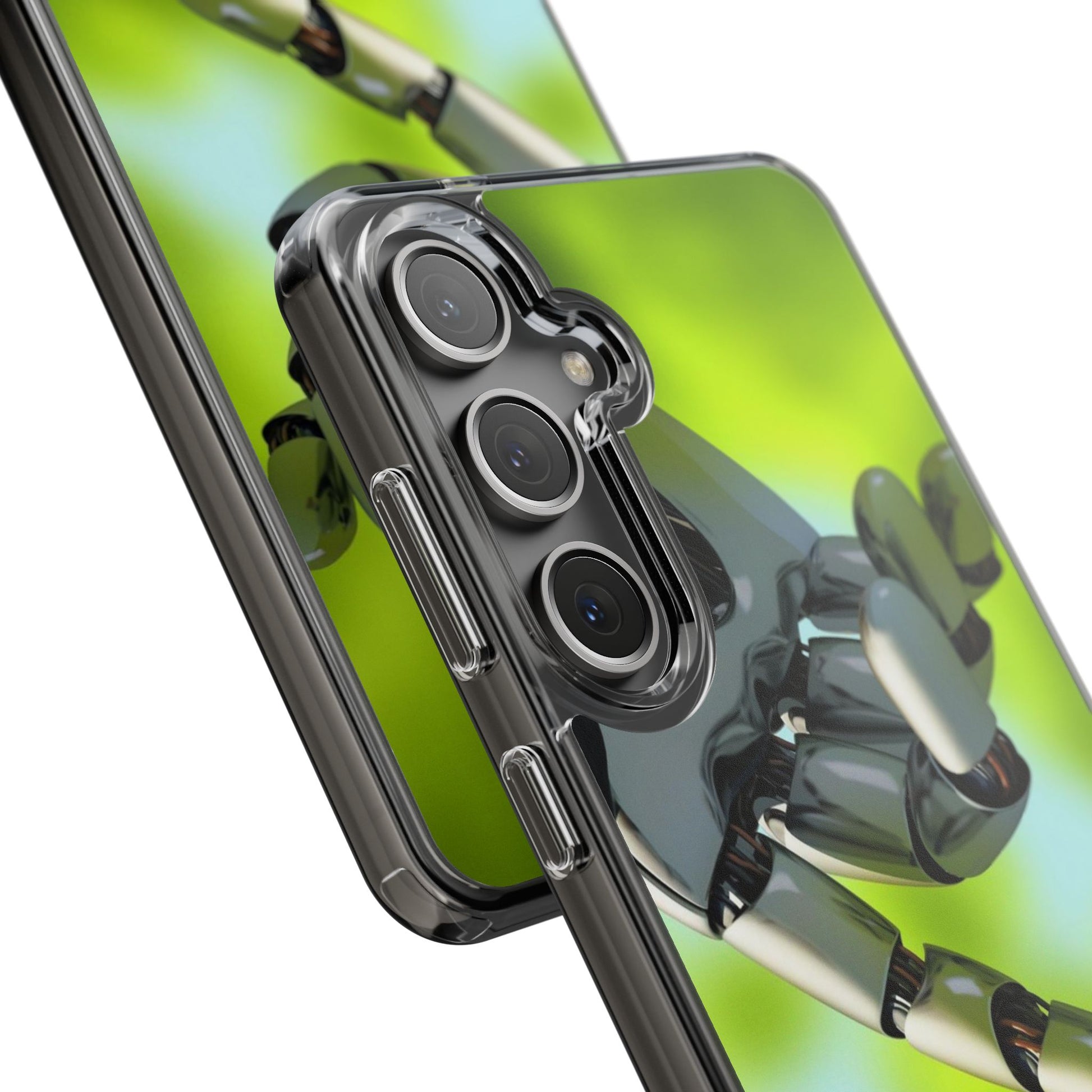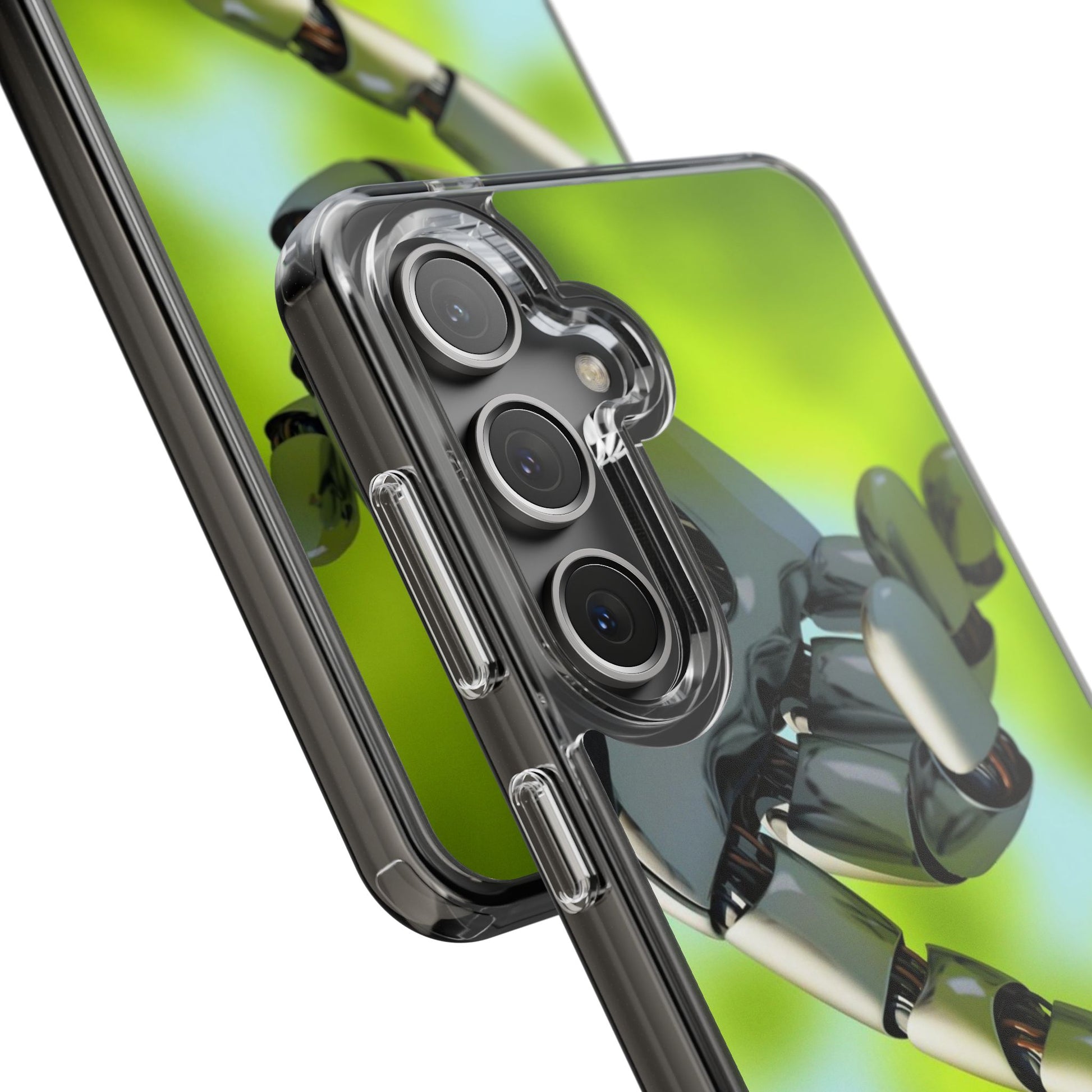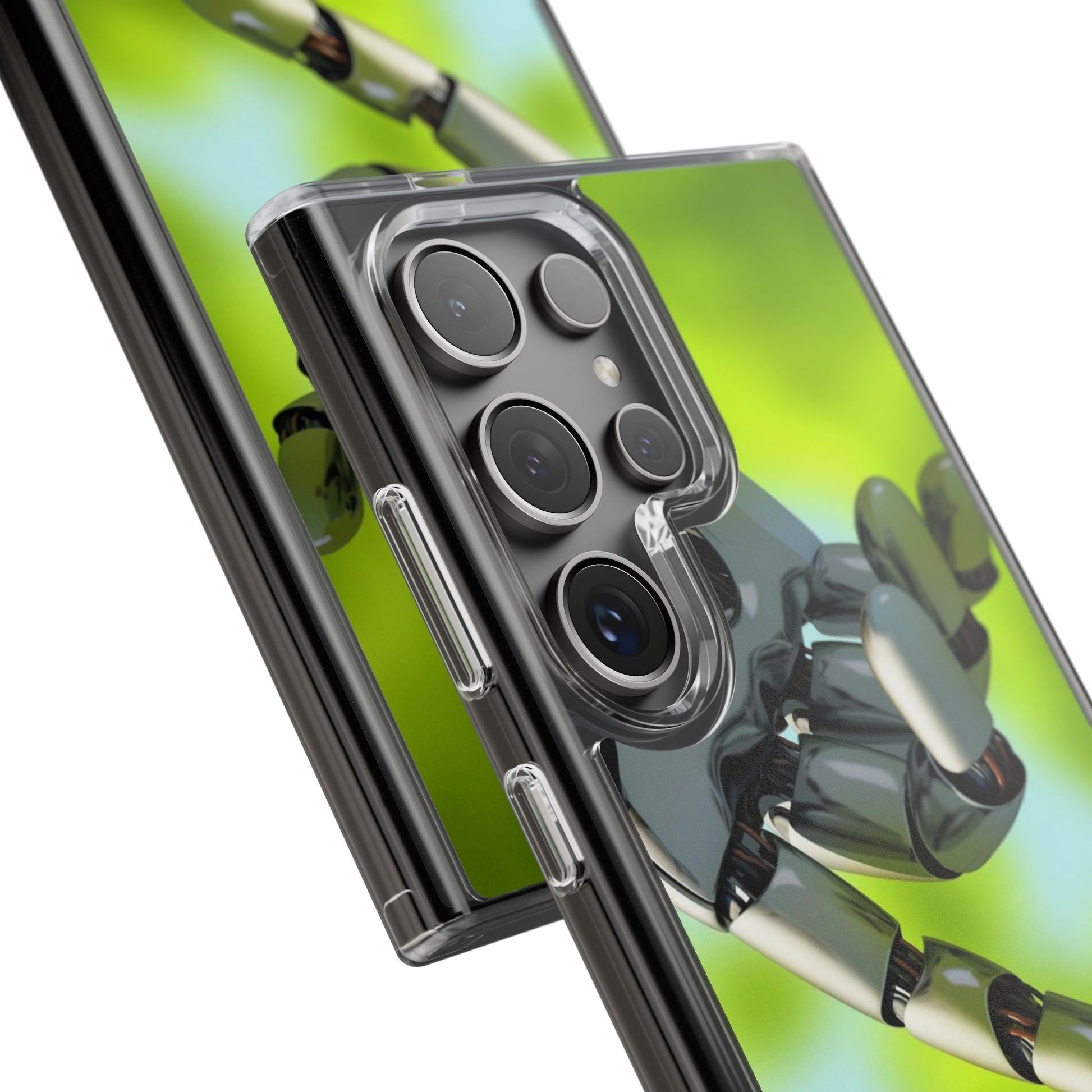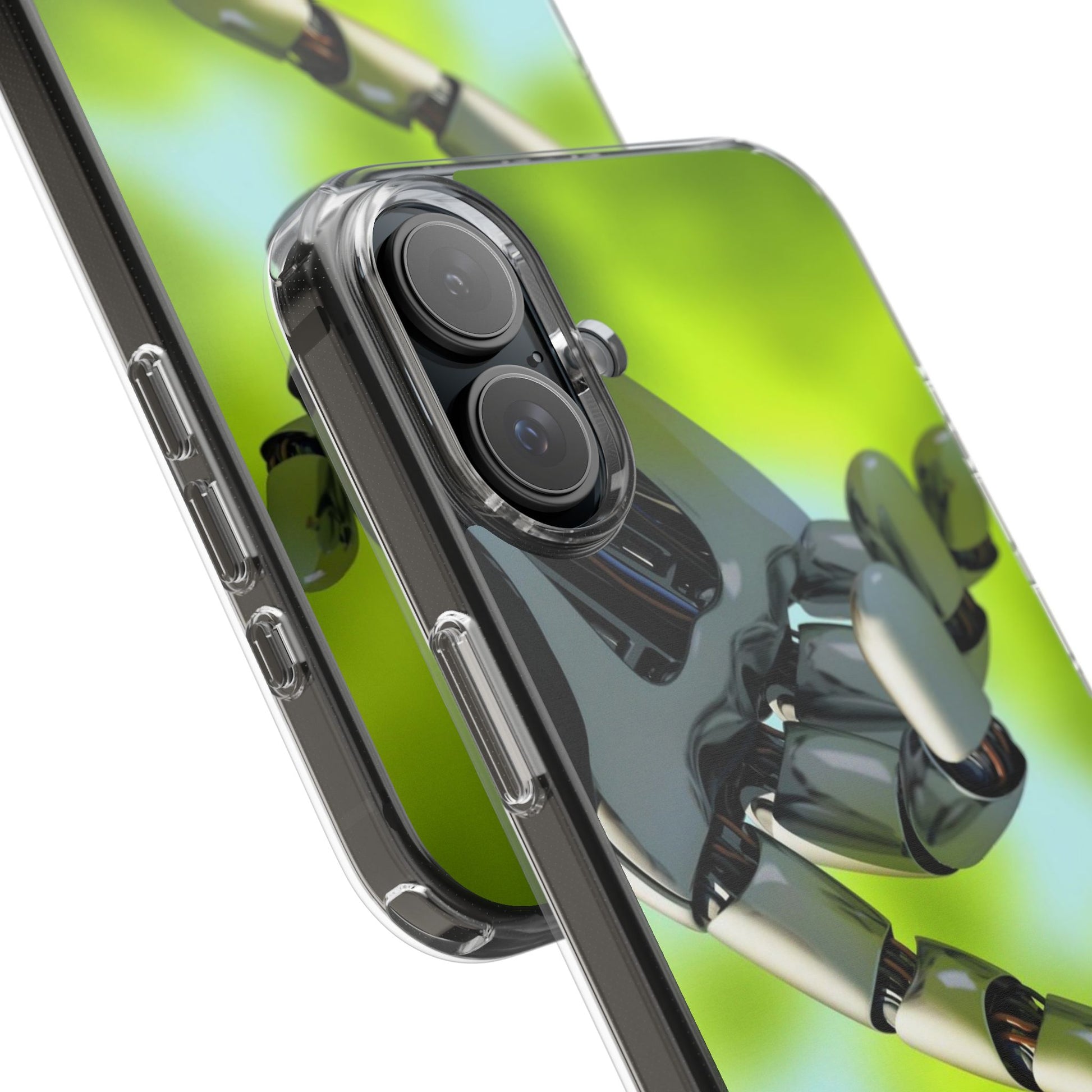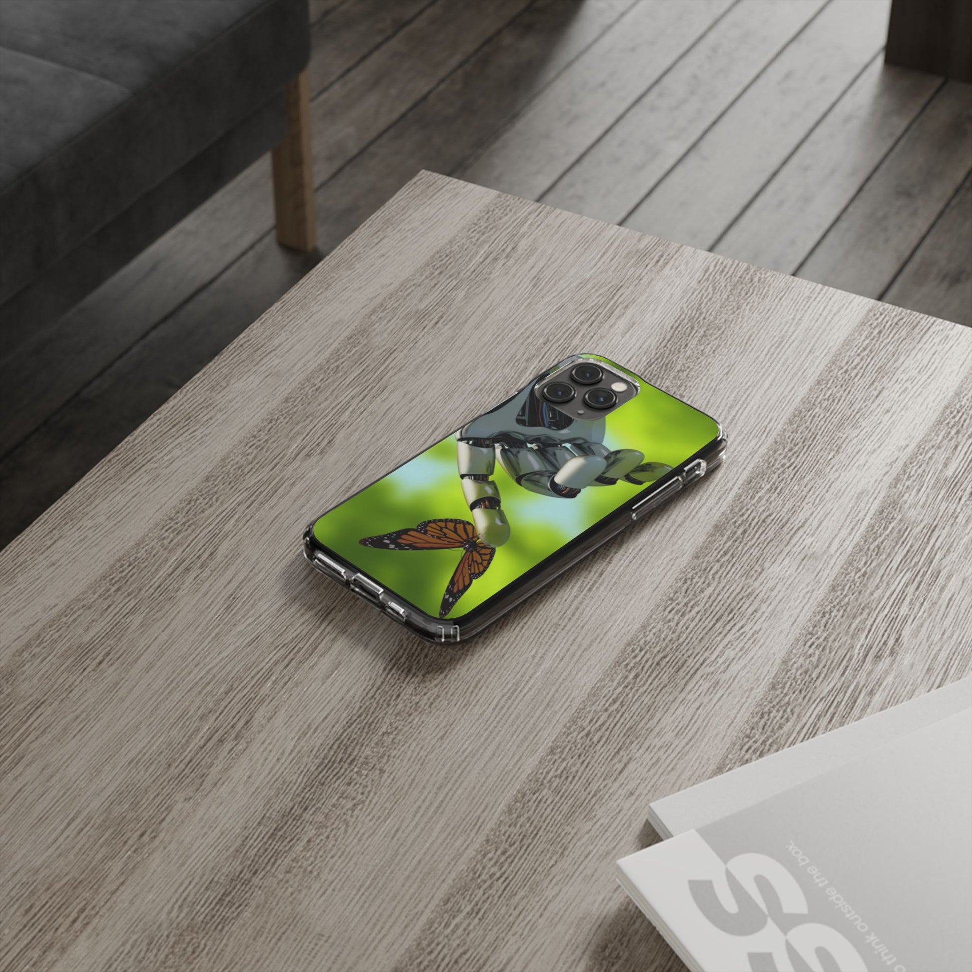 Clear Cases for iPhone 14 Series with Robotic hand and Butterfly.