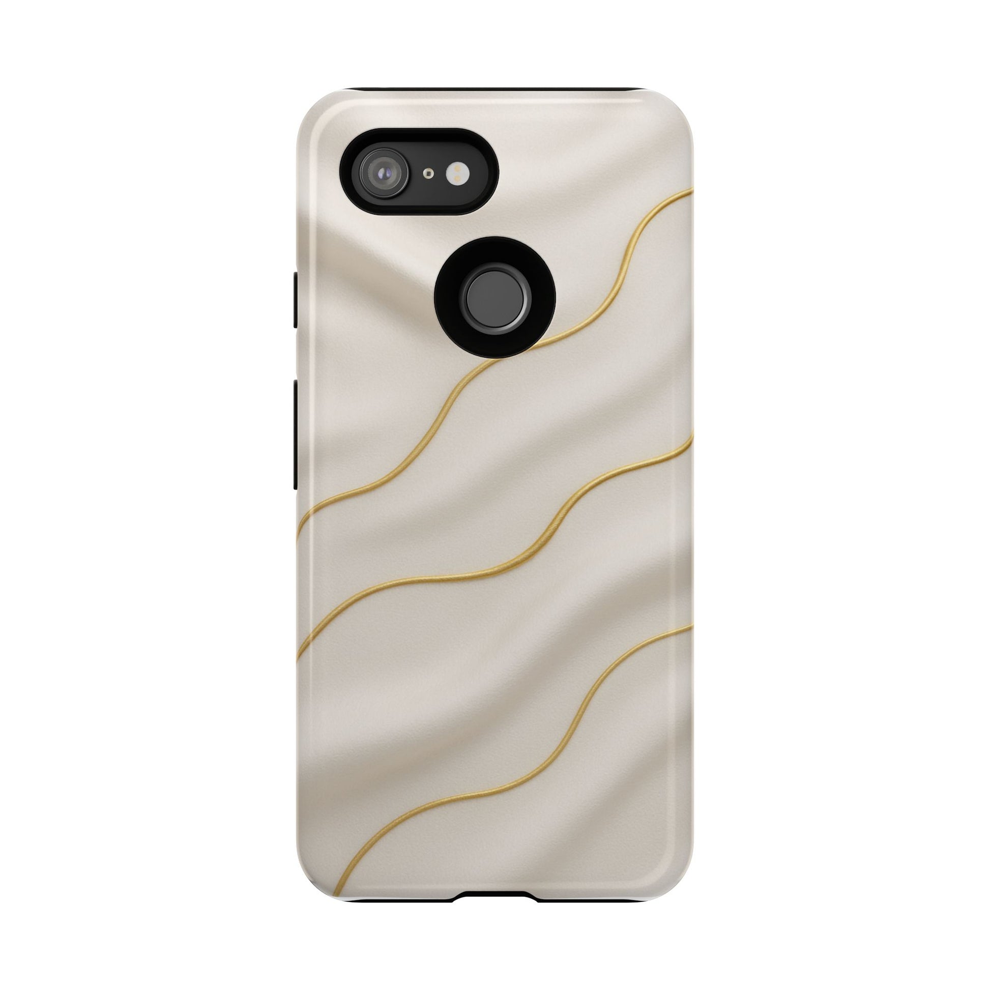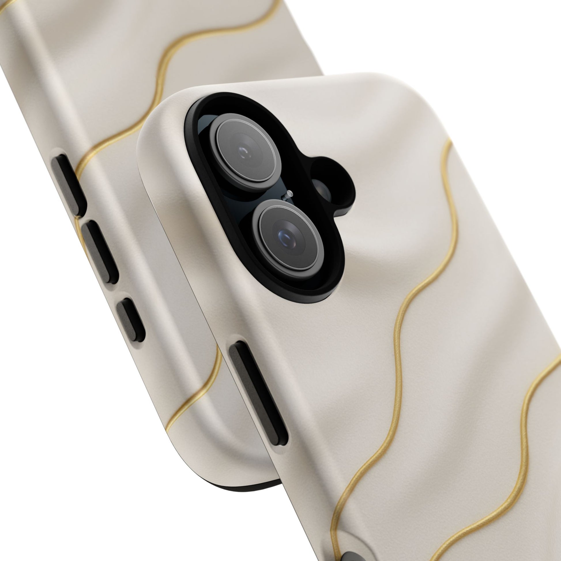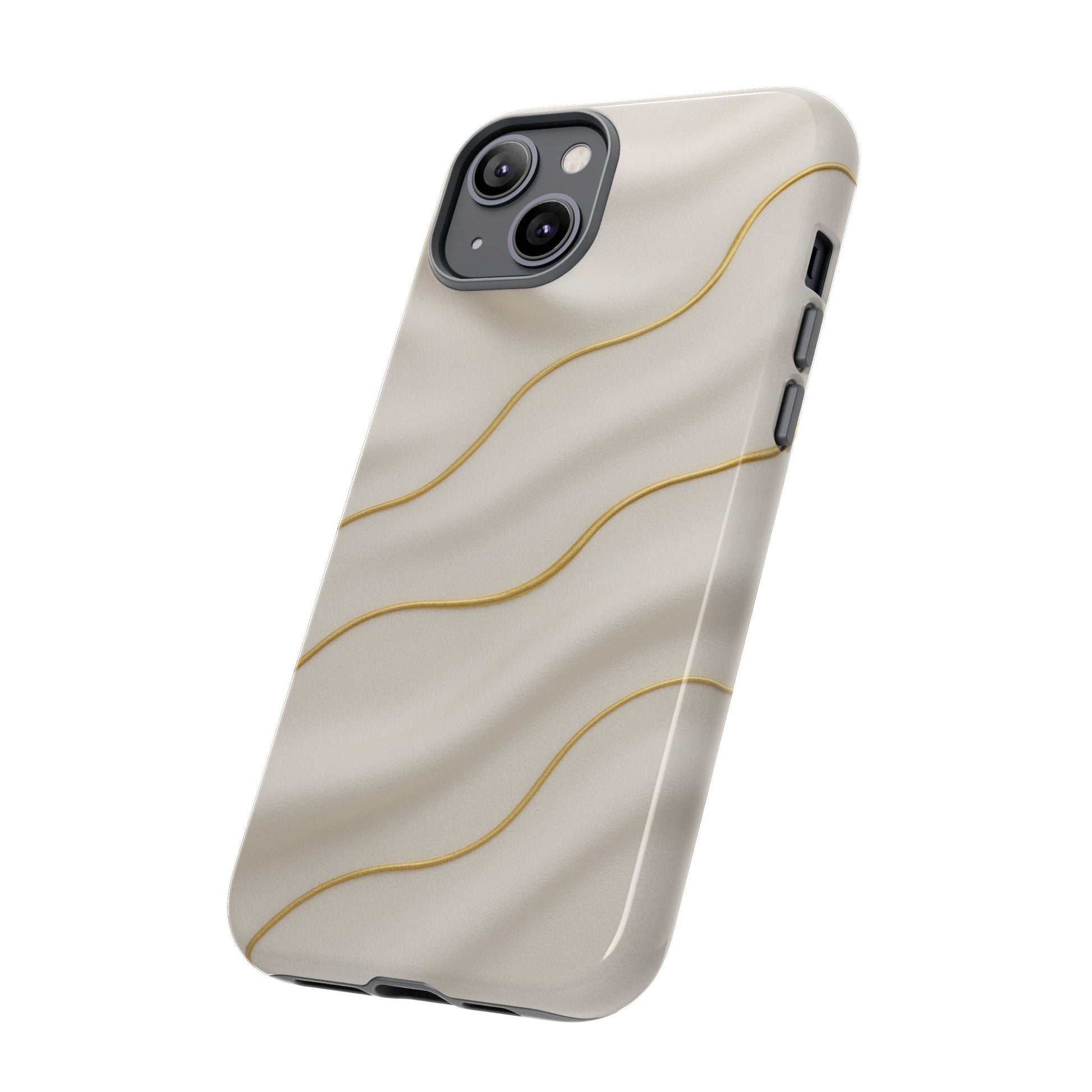 This protective phone case brings soft, sculpted elegance to everyday carry. Subtle cream waves flow across the surface, traced with thin gold lines that catch light without shouting. The dual-layer shell and TPU silicone liner work together to cushion drops and absorb shocks, while the glossy or matte finish keeps the design feeling luxe. It’s made for adults who prefer a refined, modern look on their devices — someone who likes clean lines, quiet textures, and a case that complements both work meetings and weekend outings. Use it when you want your phone to feel like an accessory — understated, thoughtfully designed, and built to protect through daily life.