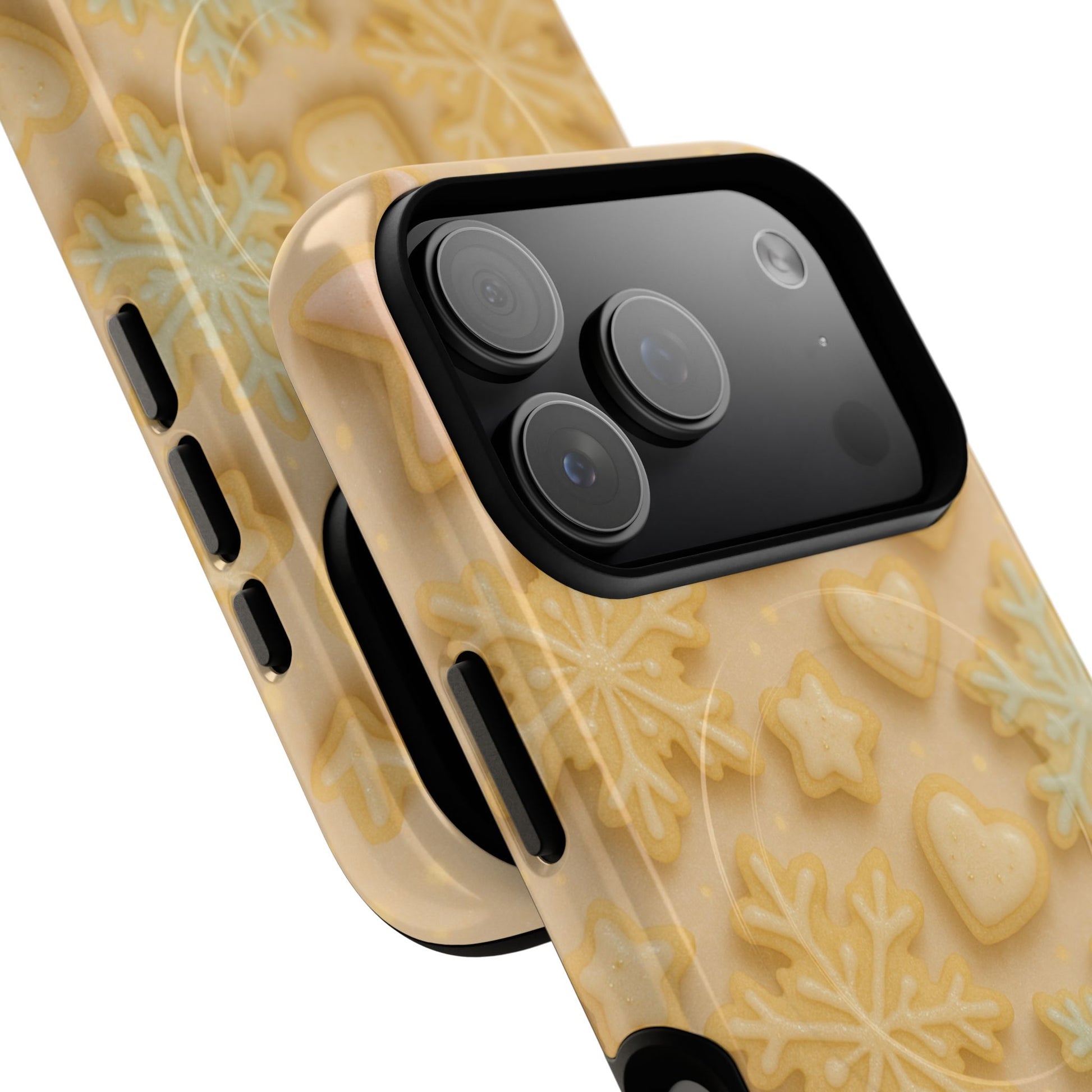 A tactile, statement-making phone case that pairs everyday protection with a warm, nostalgic aesthetic. The glossy/matte finish brings forward a buttery palette of creamy cookies, heart shapes, and delicate snowflakes — like a tray fresh from the oven turned into a wearable scene. Built with a dual-layer shell and a soft TPU silicone liner, this case absorbs shocks and keeps your phone safe while the MagSafe-compatible magnetic module makes attaching chargers and accessories effortless. It’s for people who notice small comforts: the look of baked treats, soft neutrals, and subtle texture under their fingertips. Carry a cozy mood with you — whether you’re dashing through a winter market, commuting with a to‑go latte, or settling in for a slow afternoon of playlists and warm drinks.
