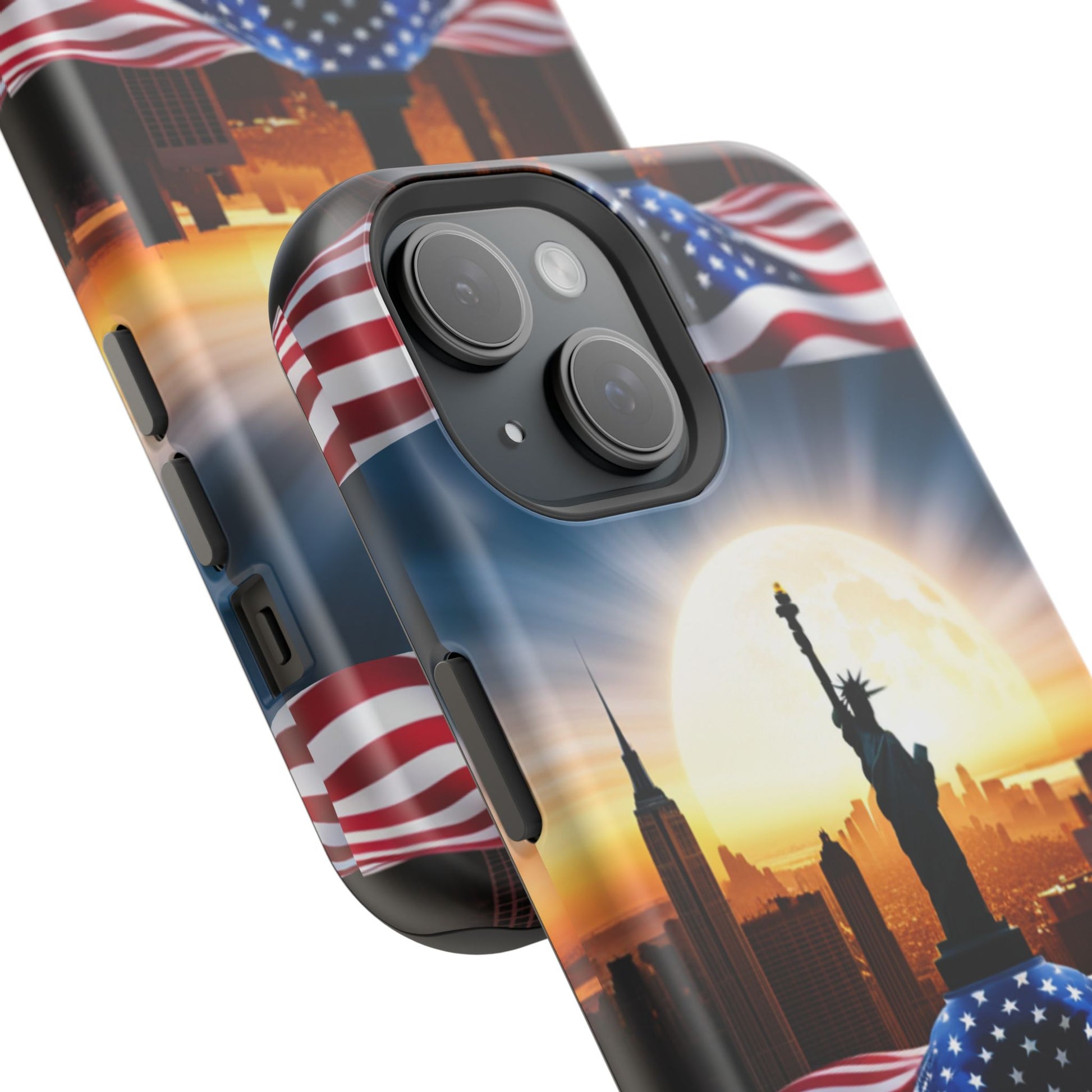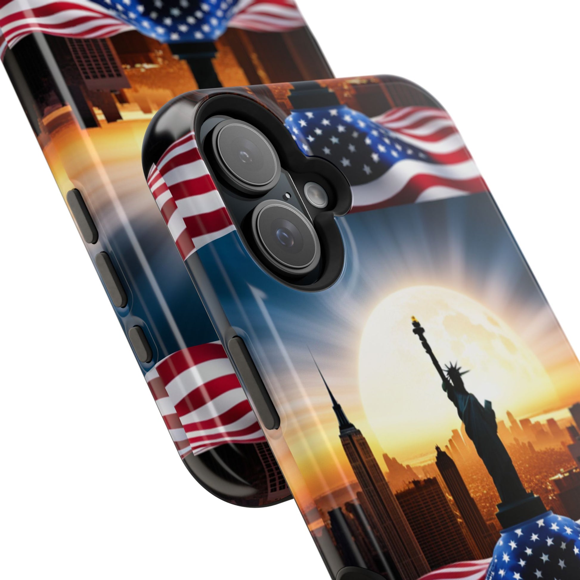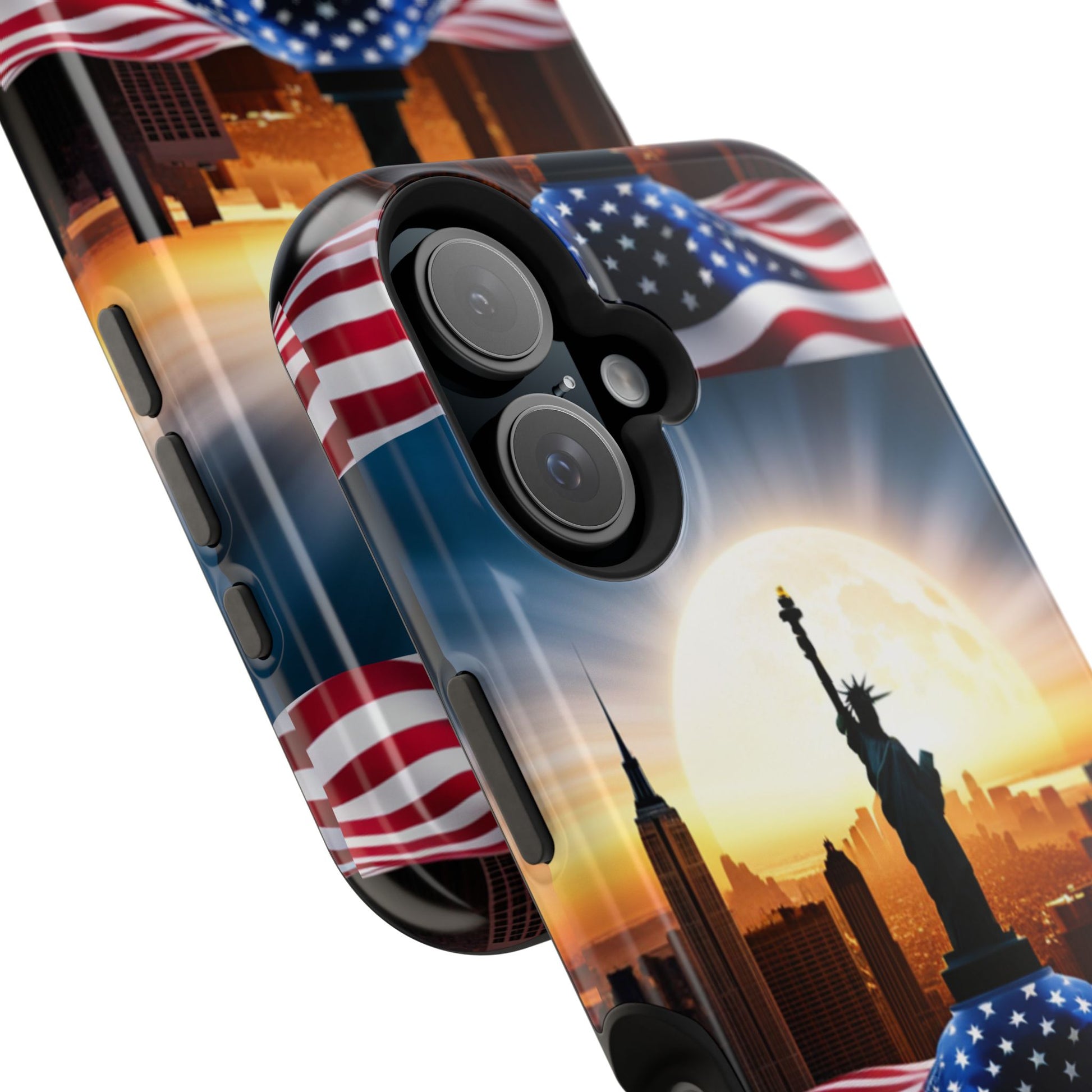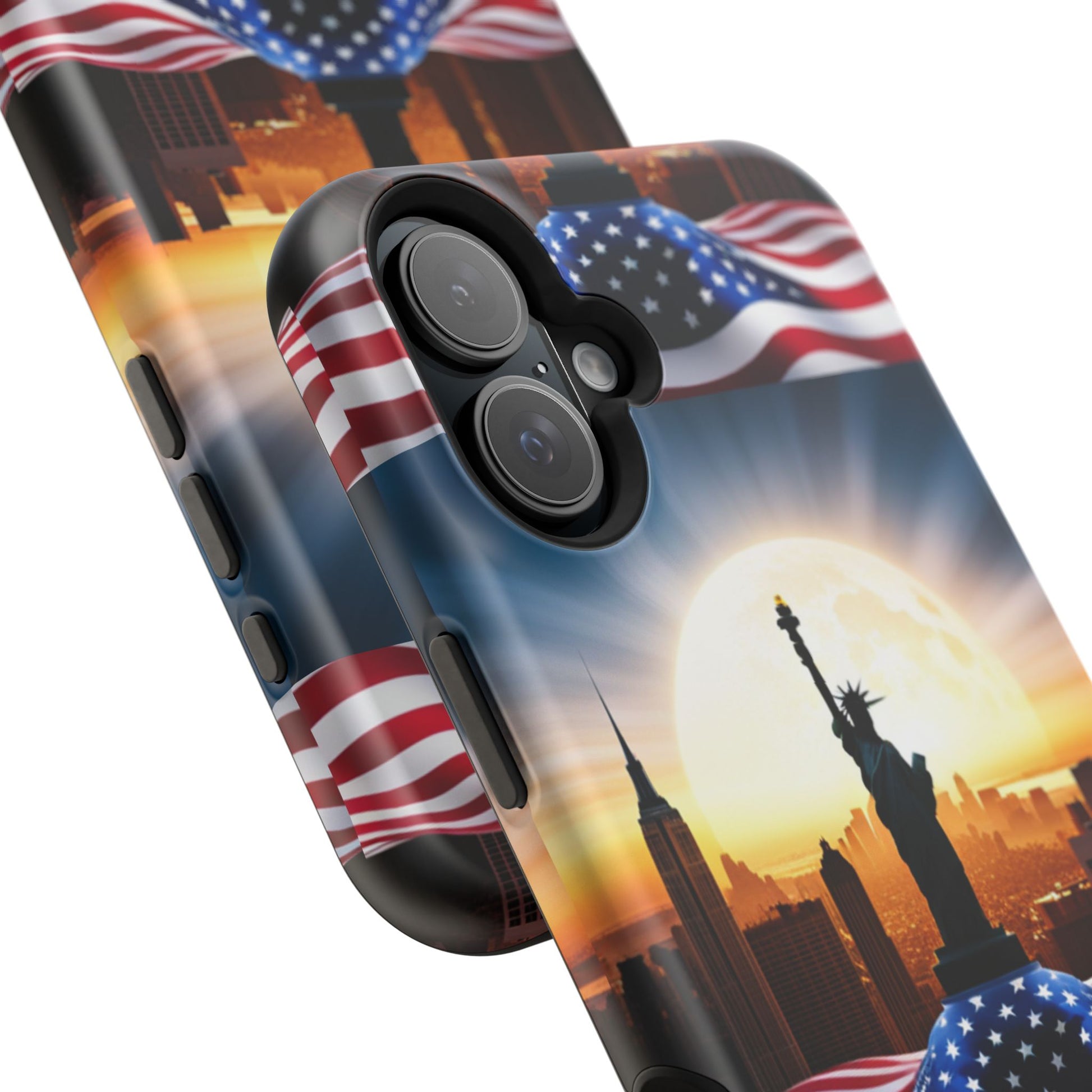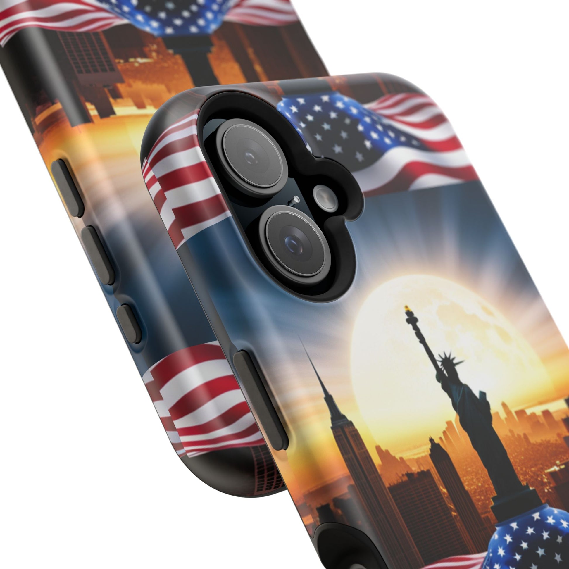 Show your patriotism in style with our American Flag Edition MagSafe Tough Case.