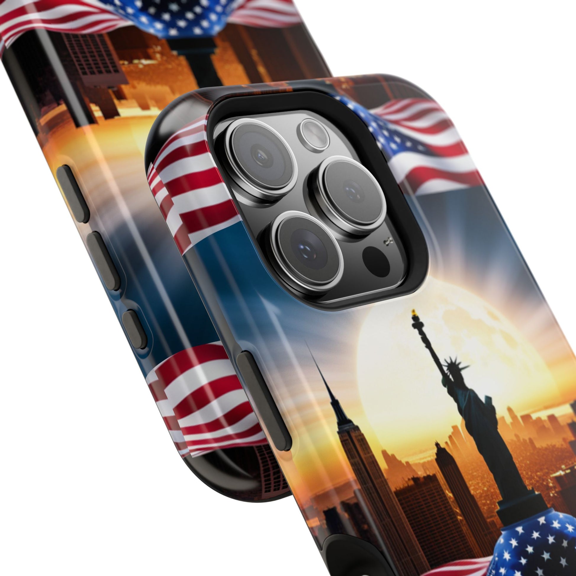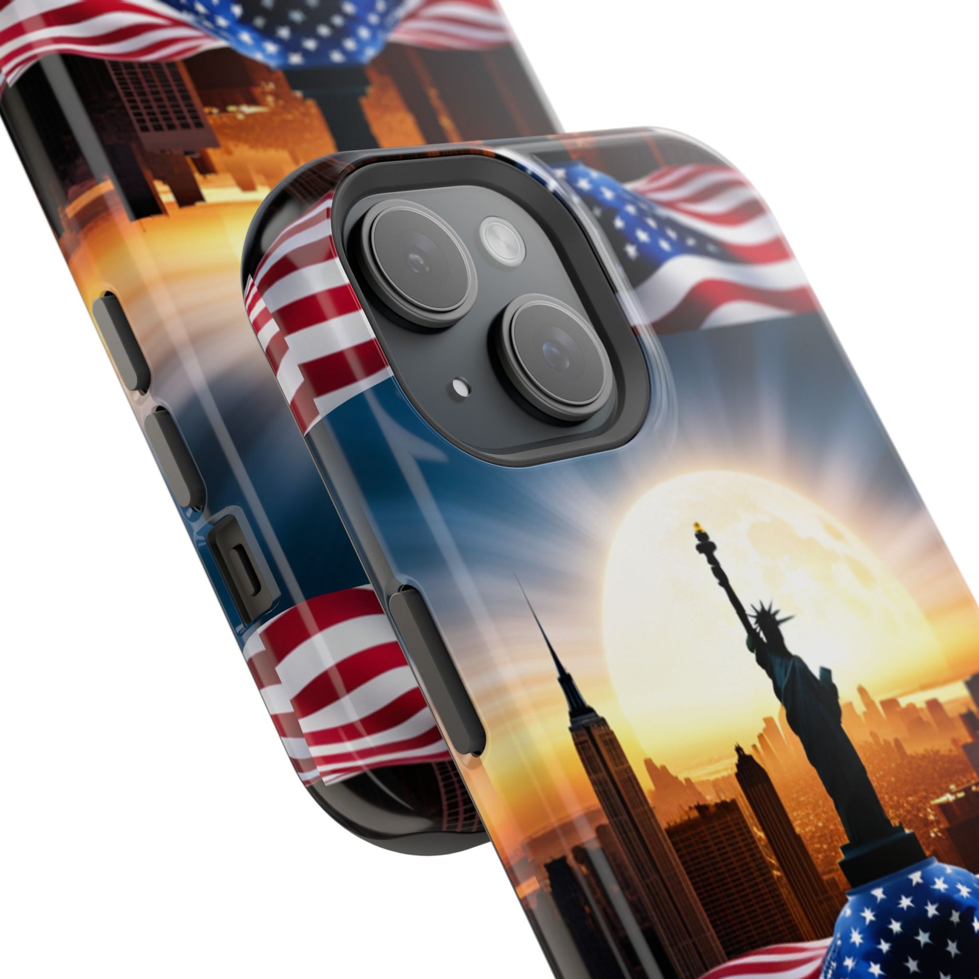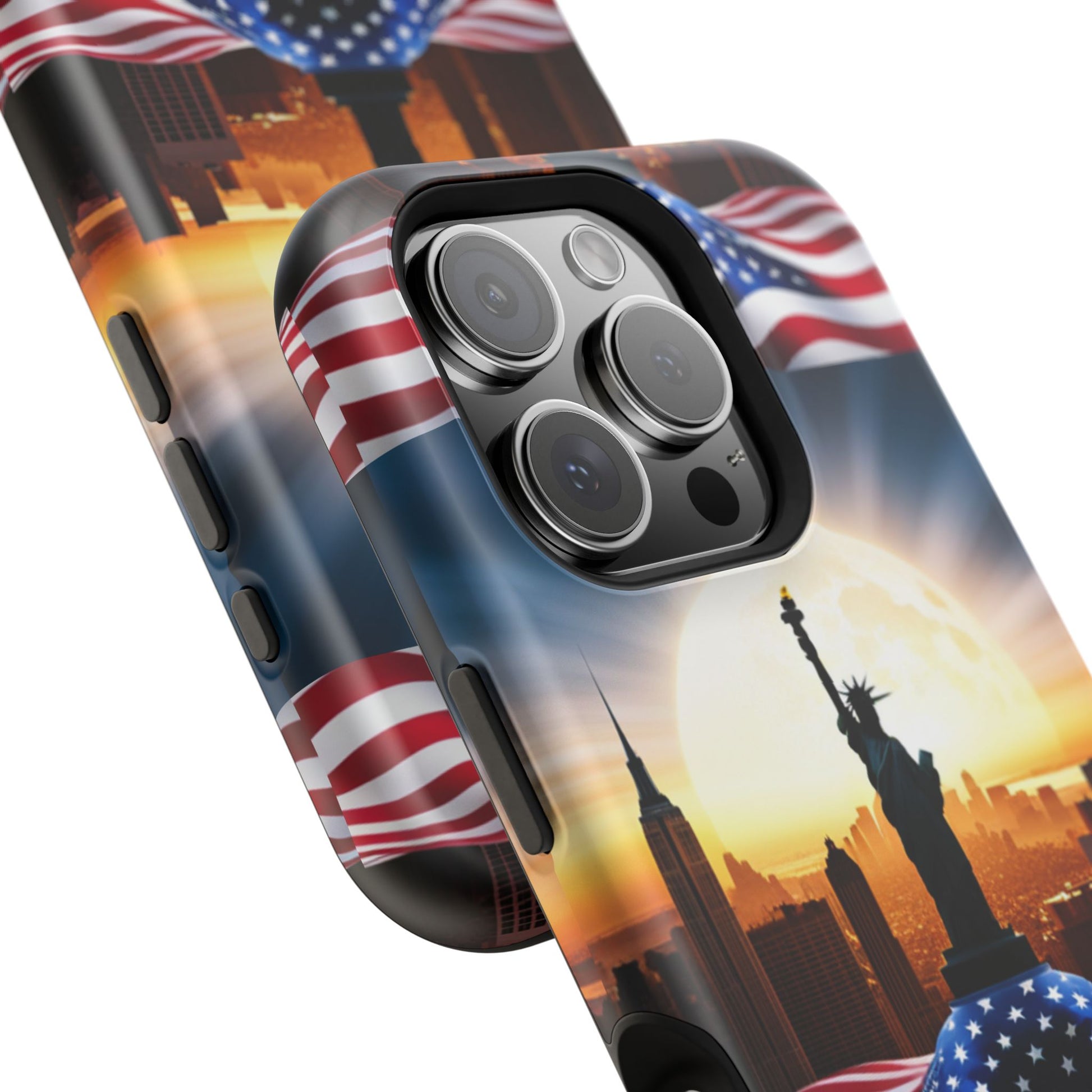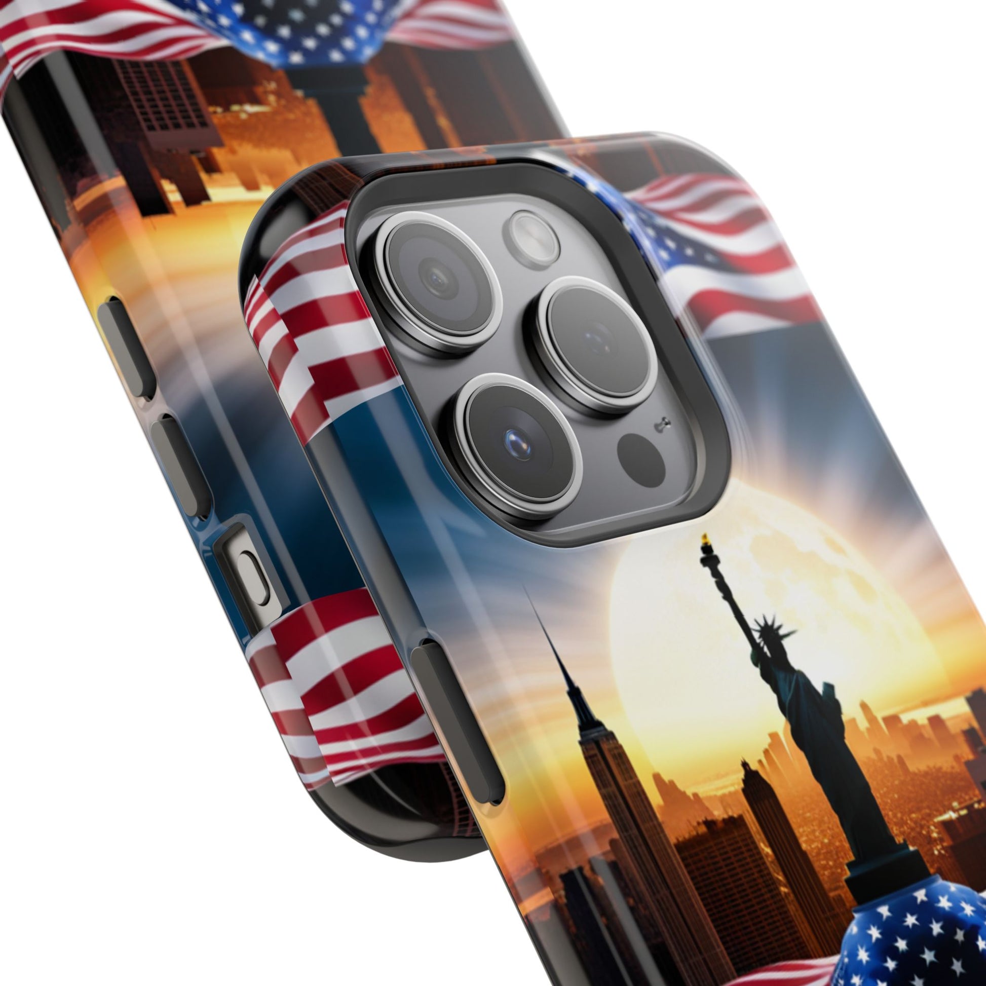 Show your patriotism in style with our American Flag Edition MagSafe Tough Case.