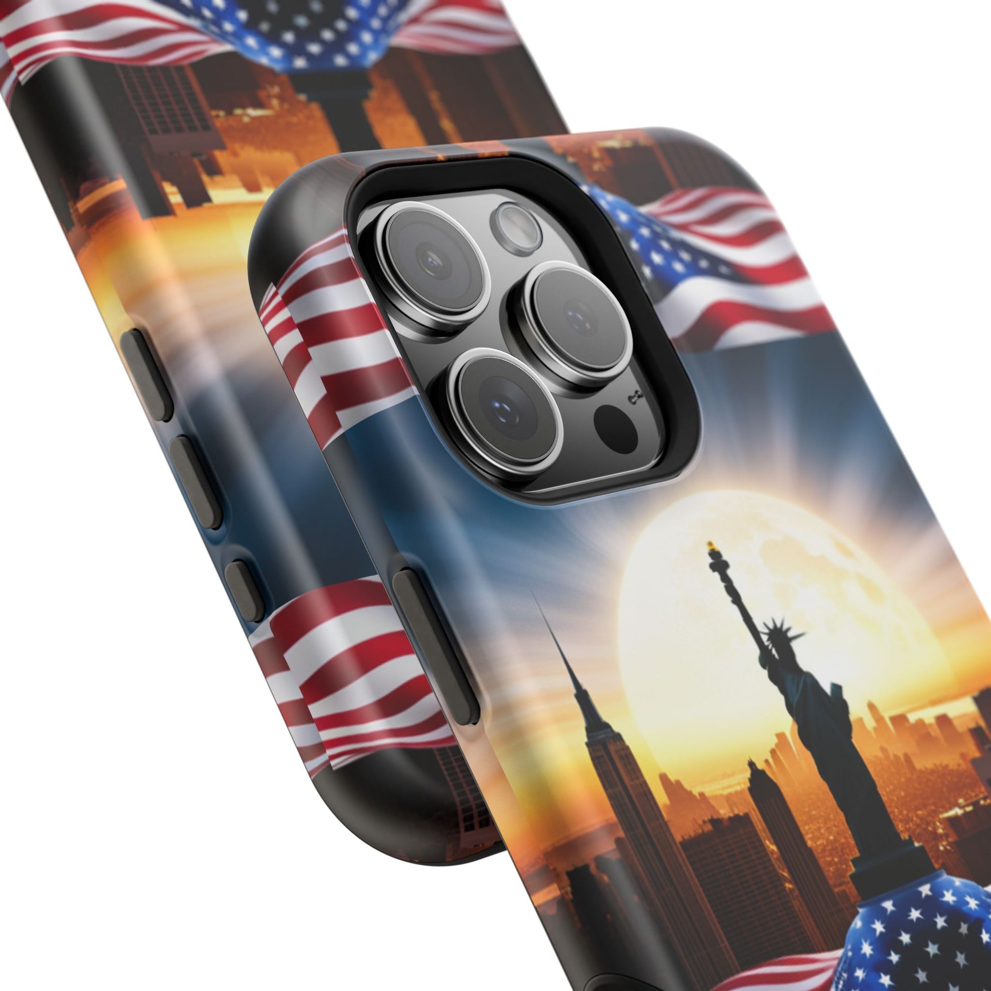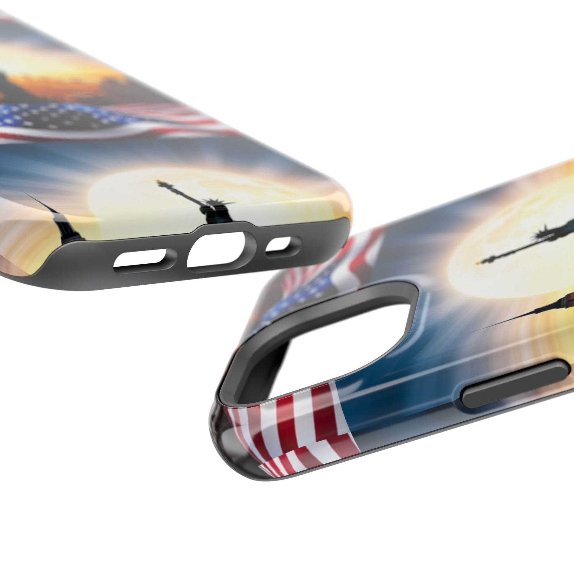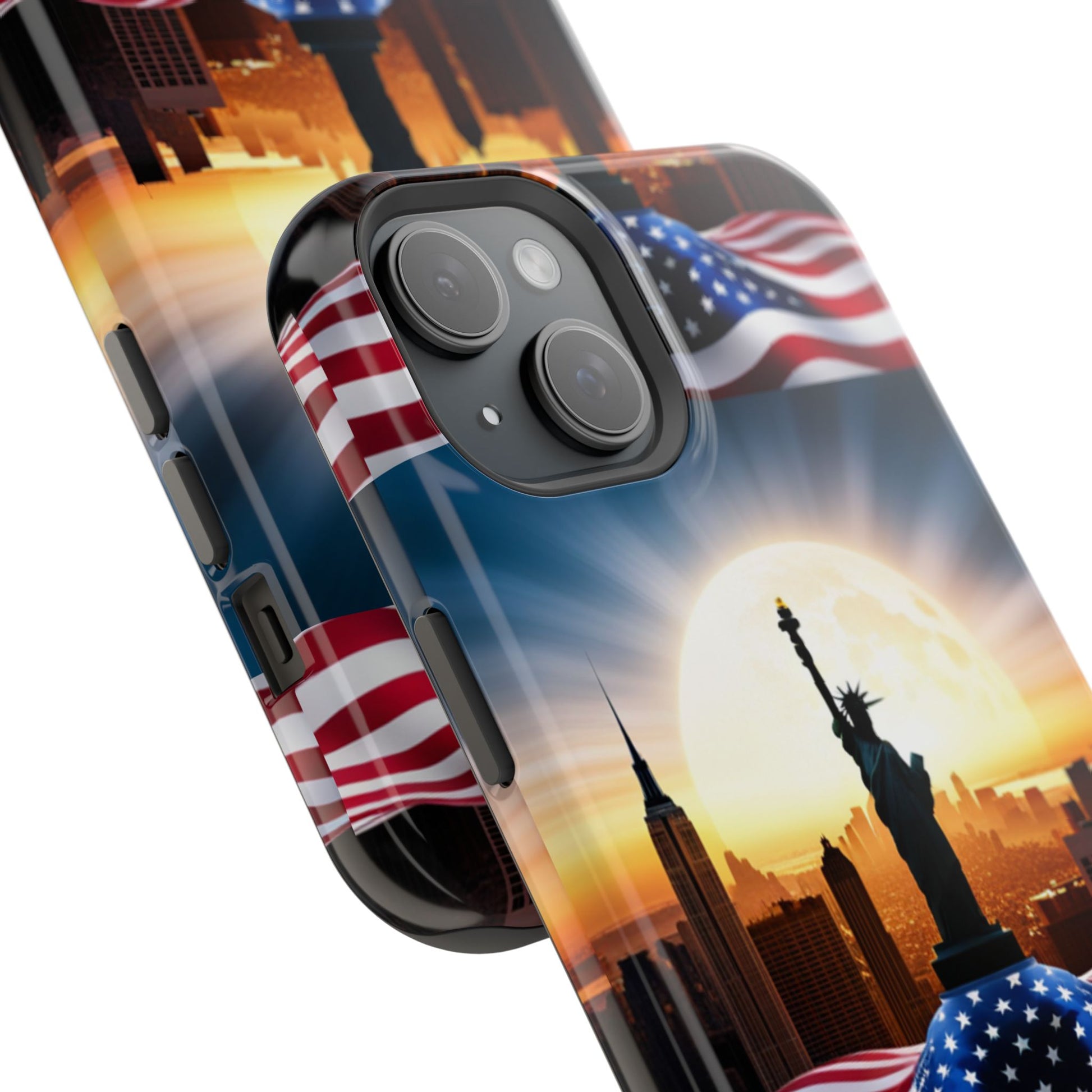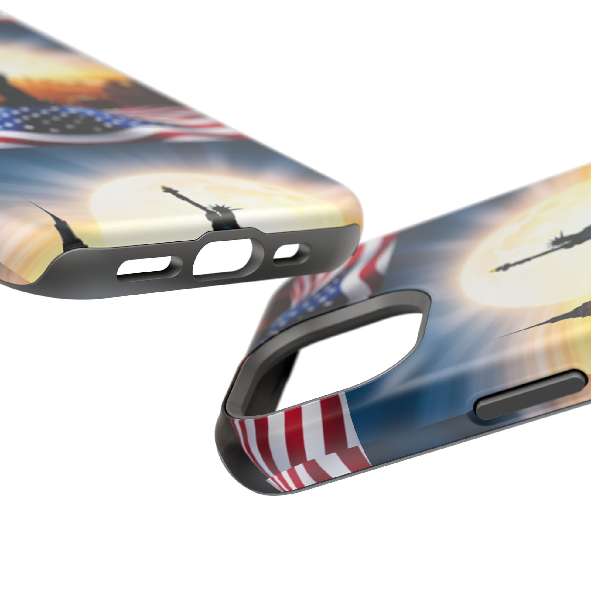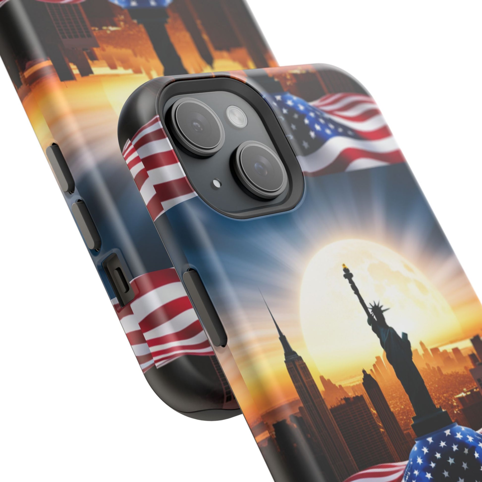 Show your patriotism in style with our American Flag Edition MagSafe Tough Case.