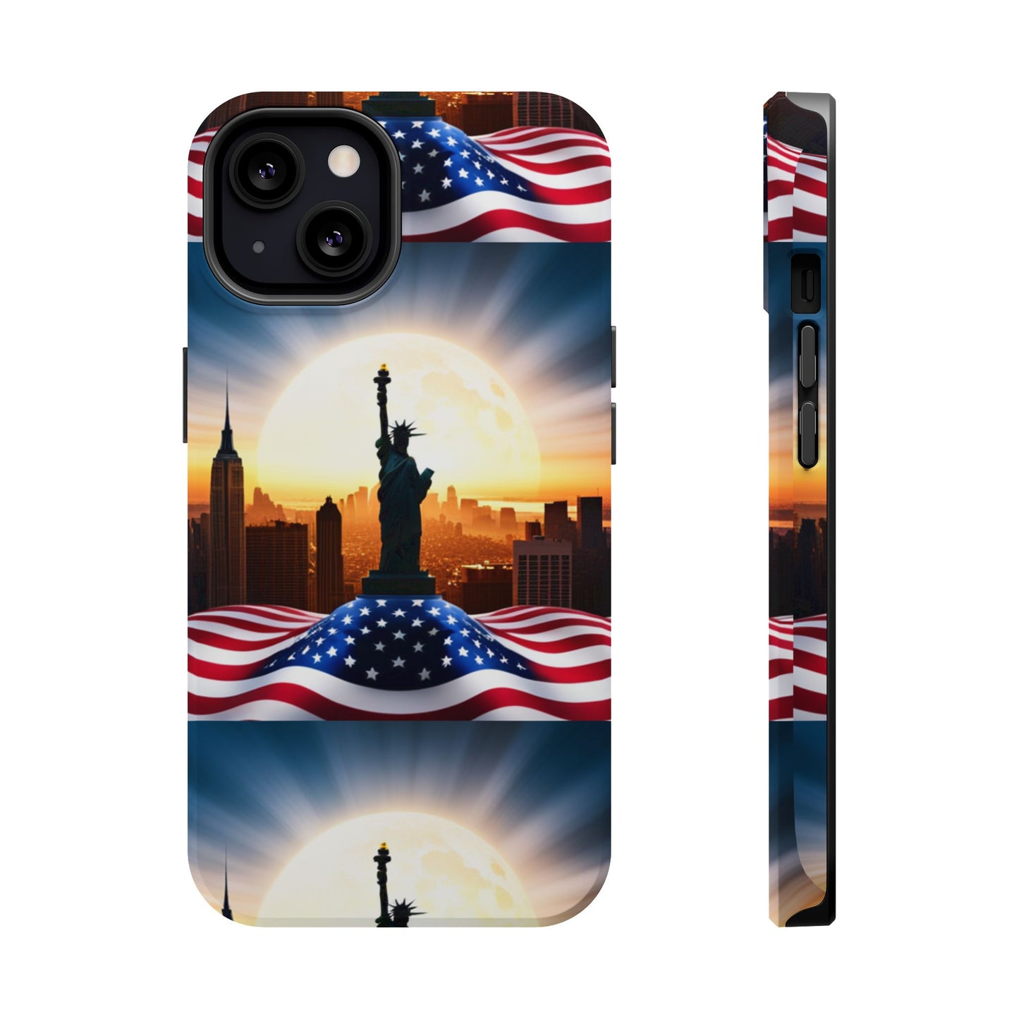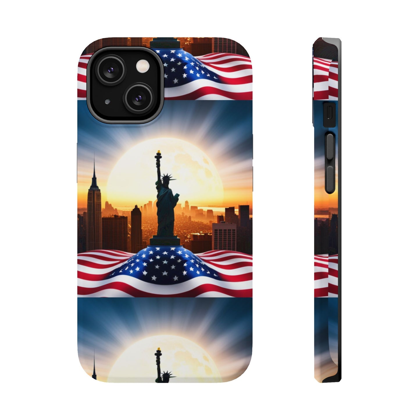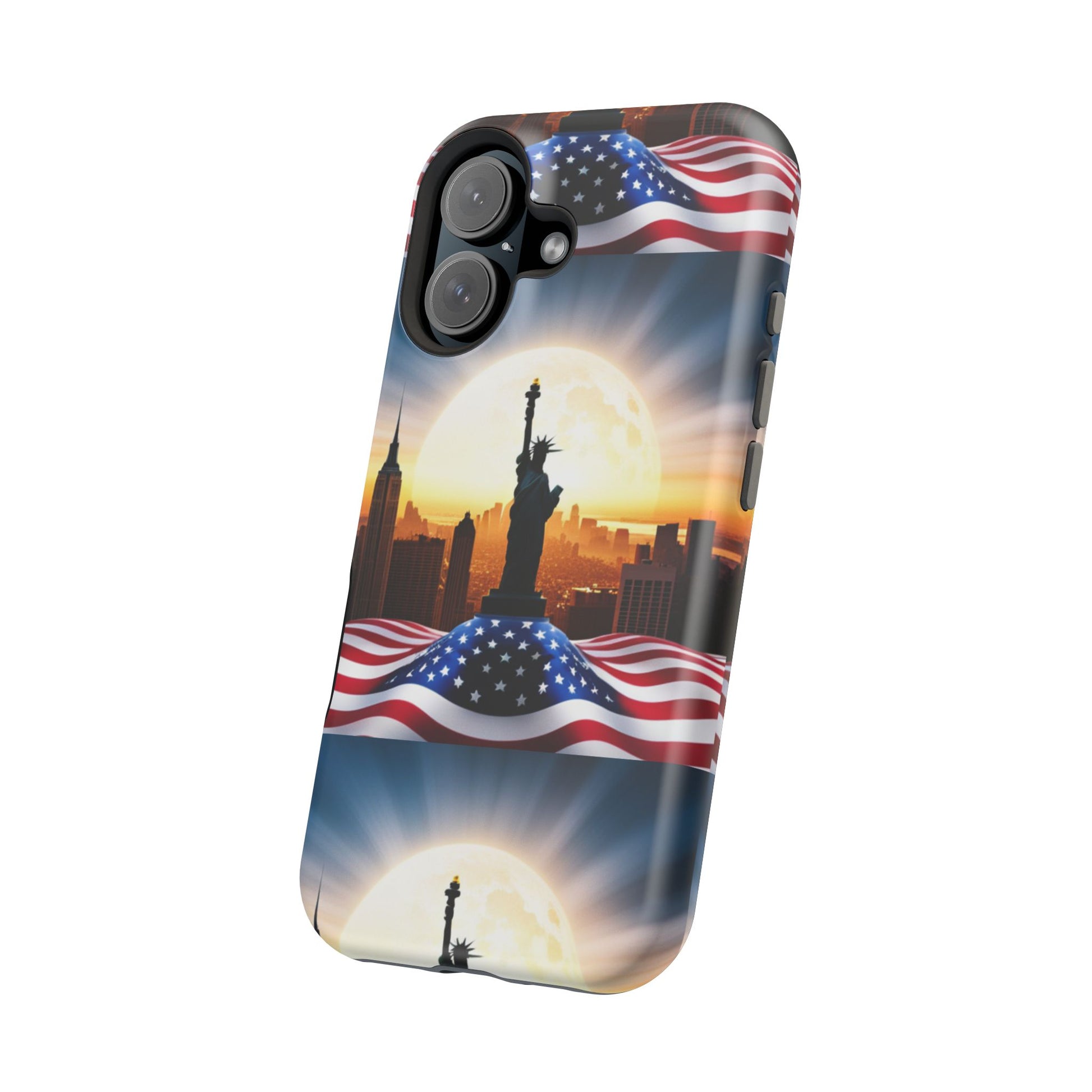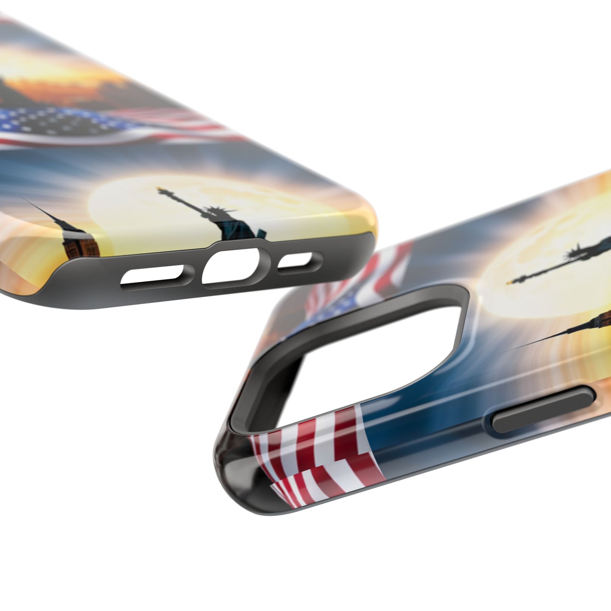 Show your patriotism in style with our American Flag Edition MagSafe Tough Case.