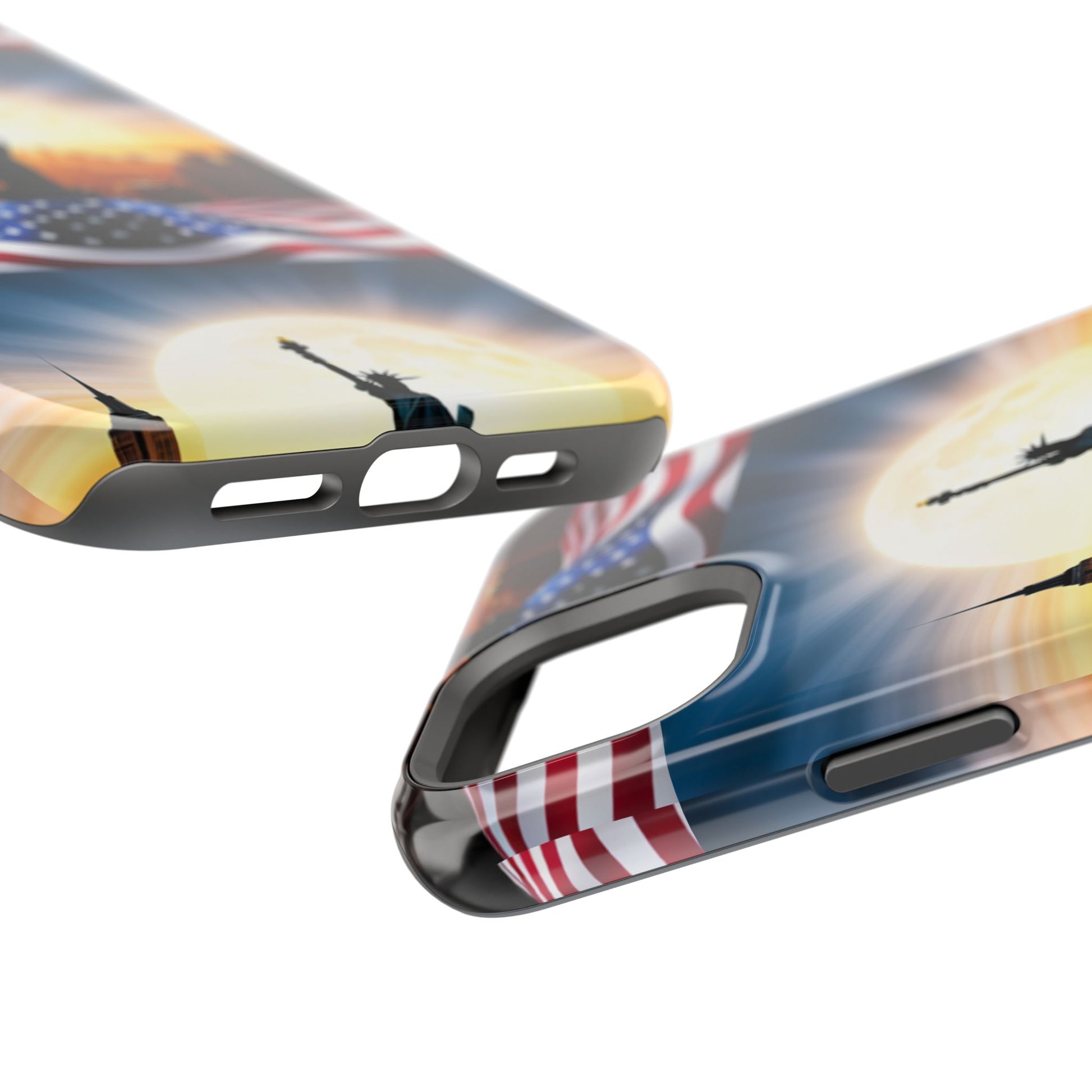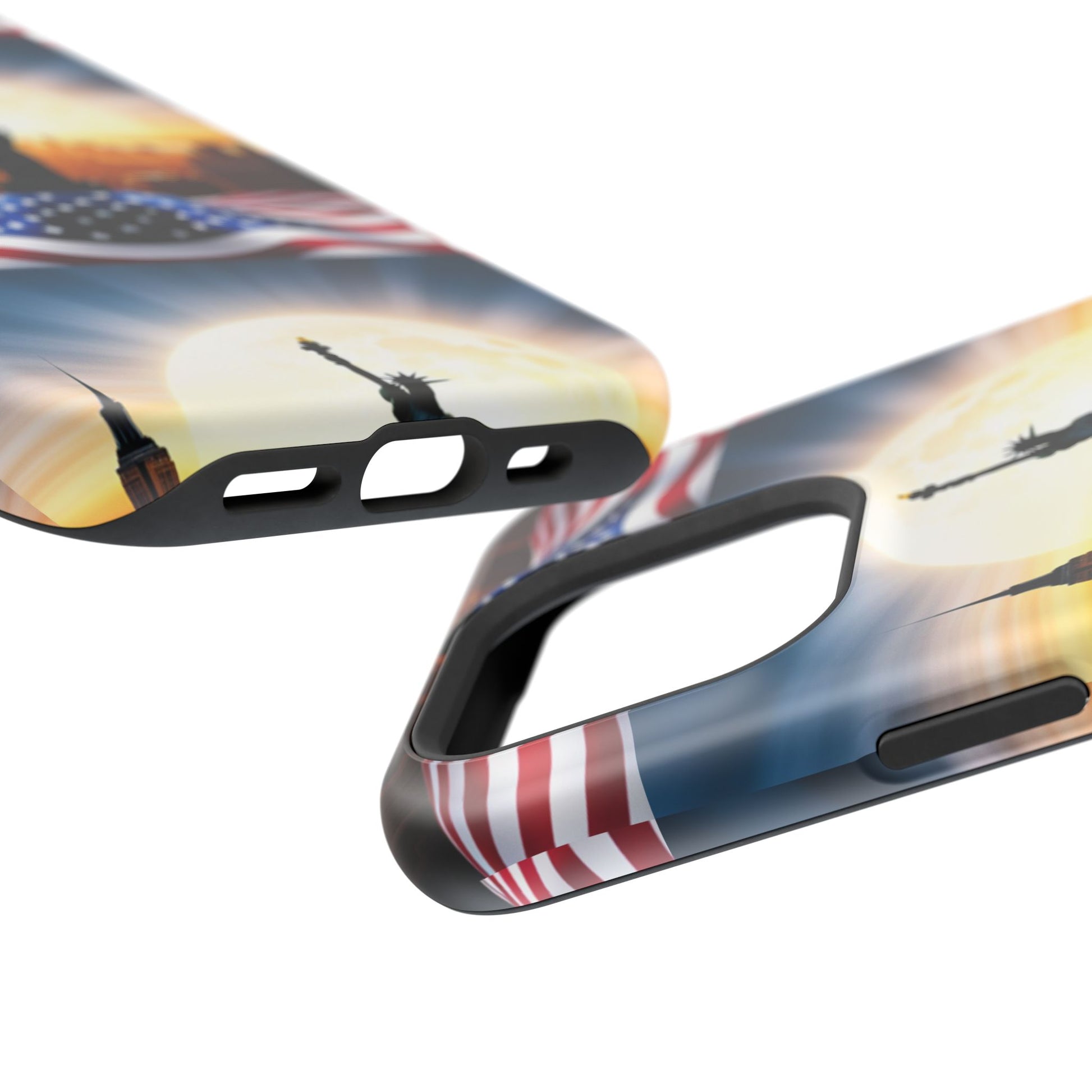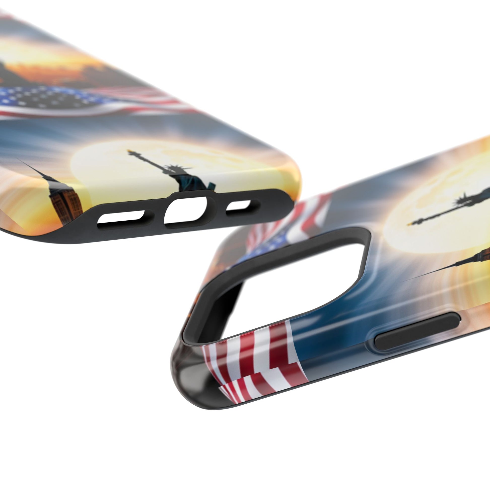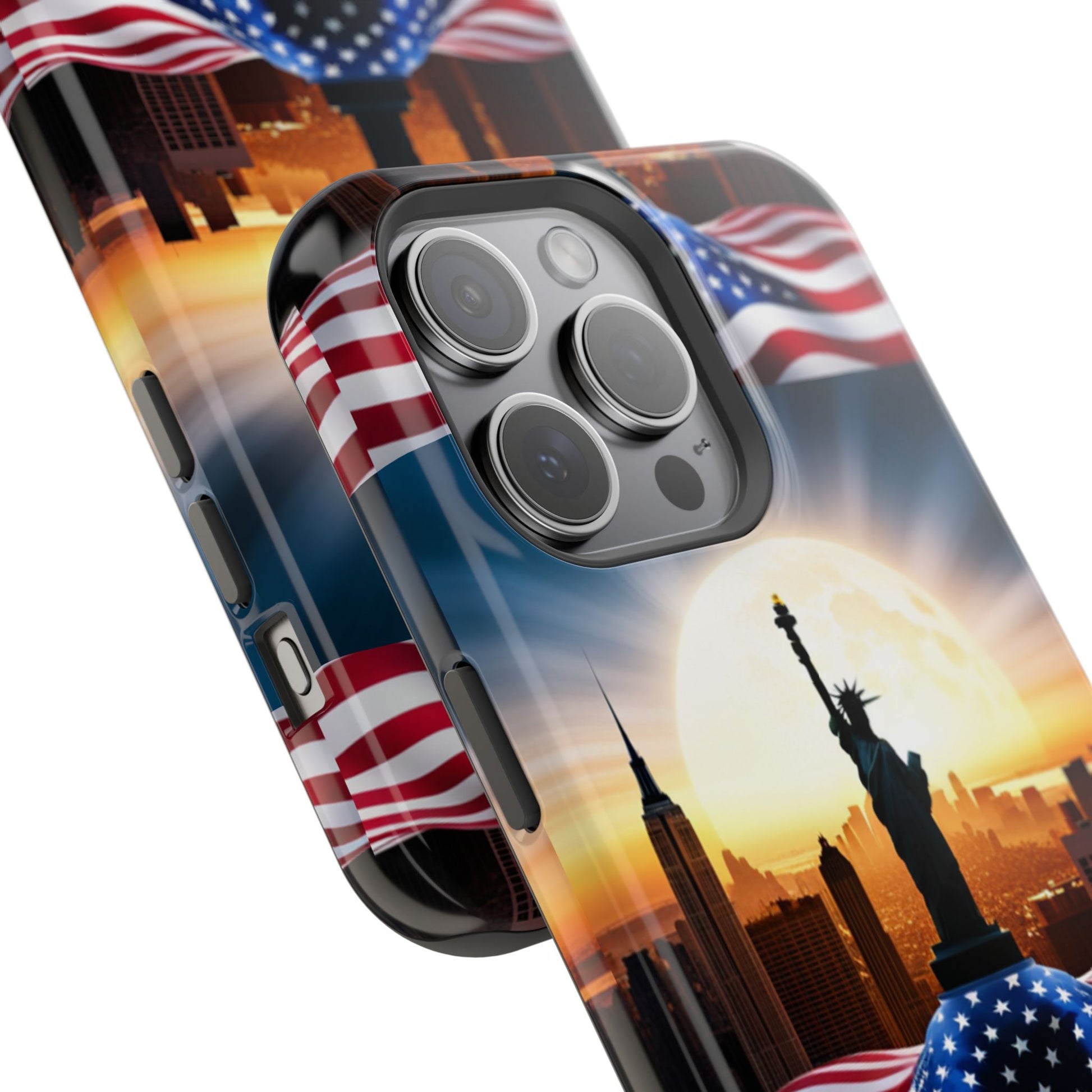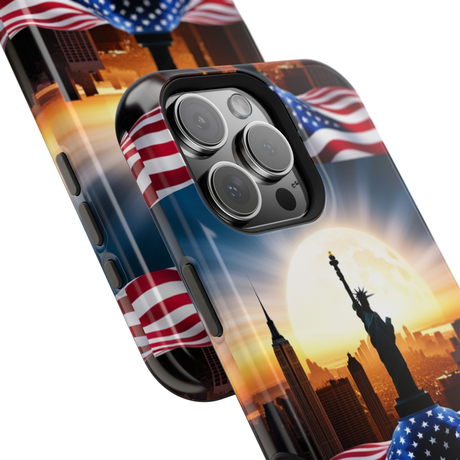 Show your patriotism in style with our American Flag Edition MagSafe Tough Case.