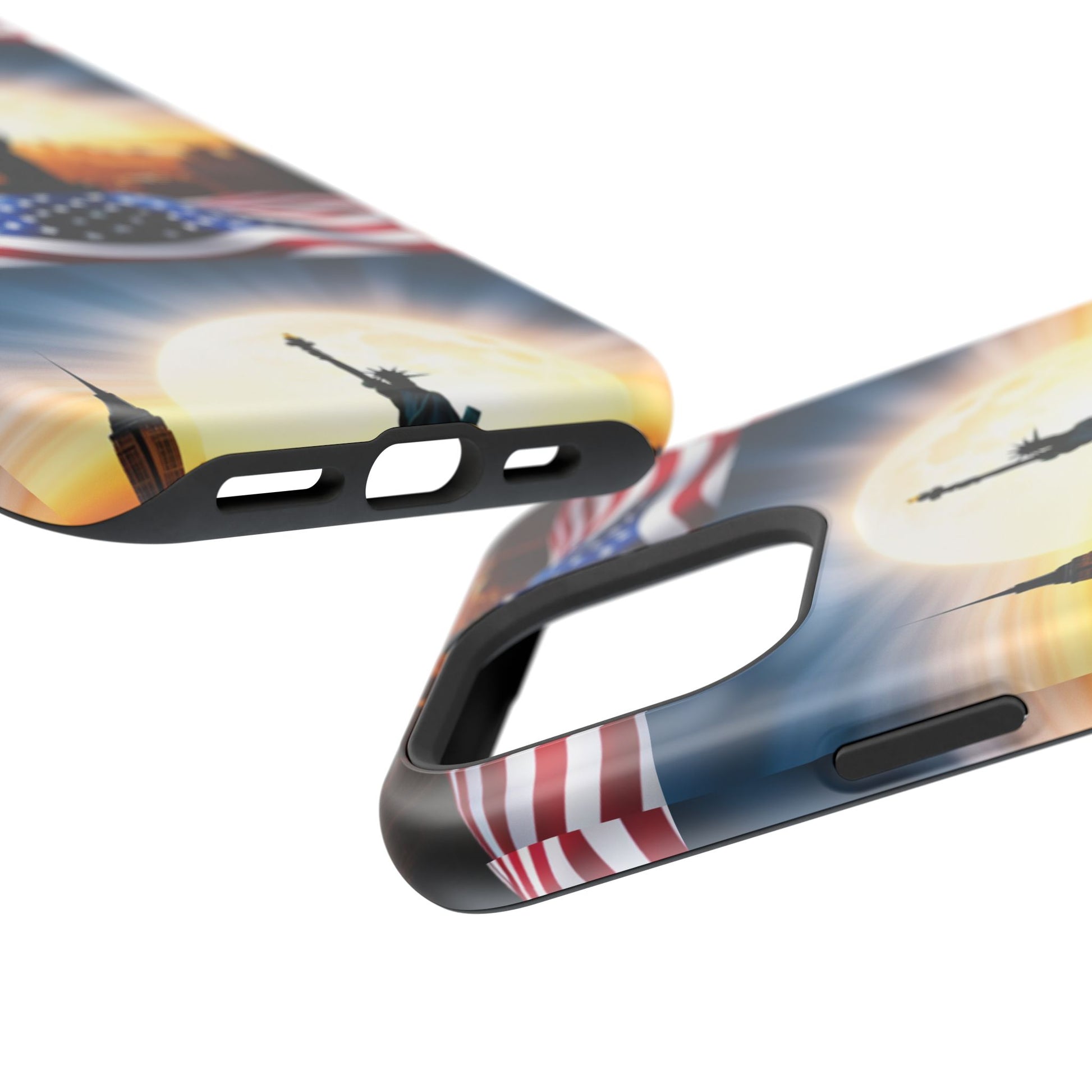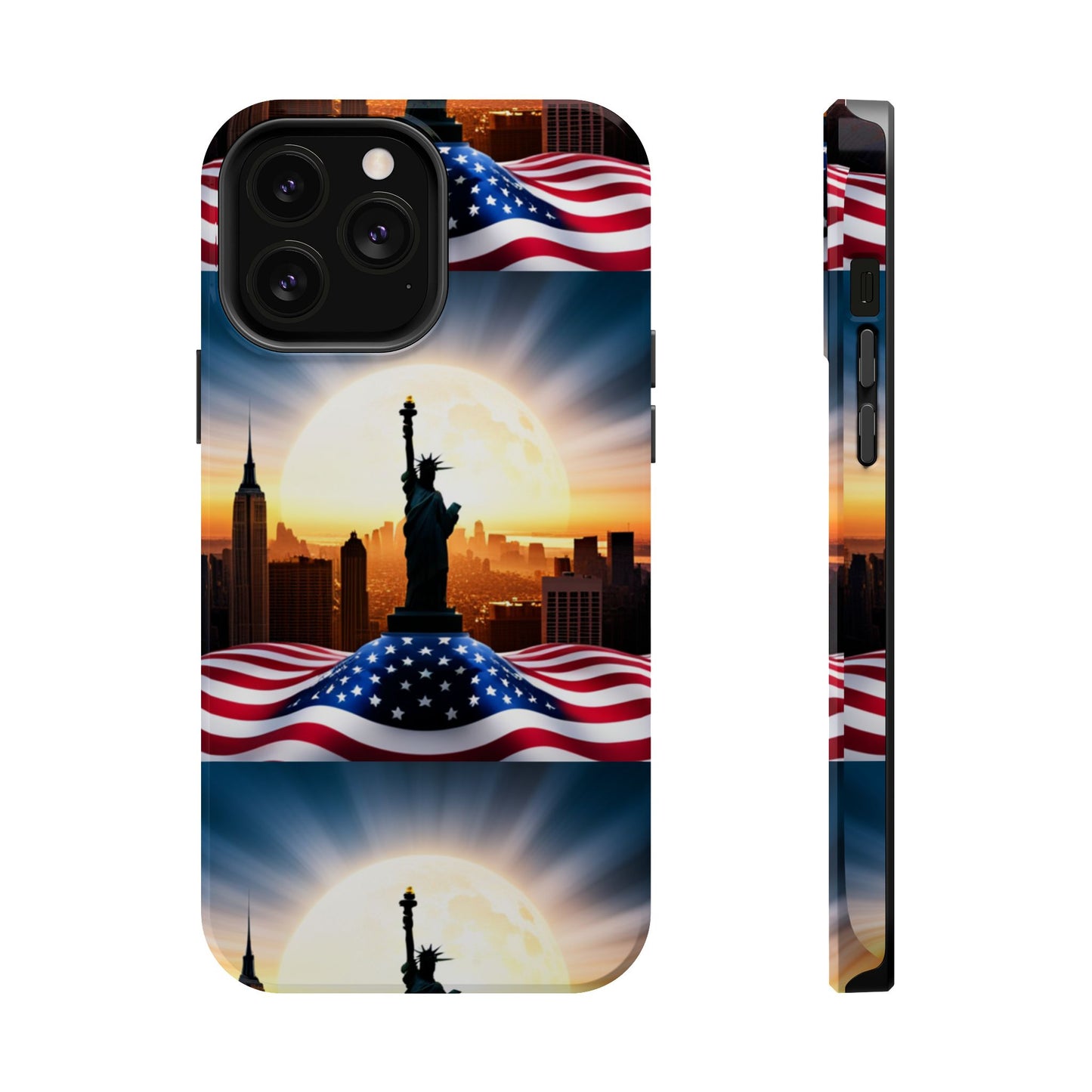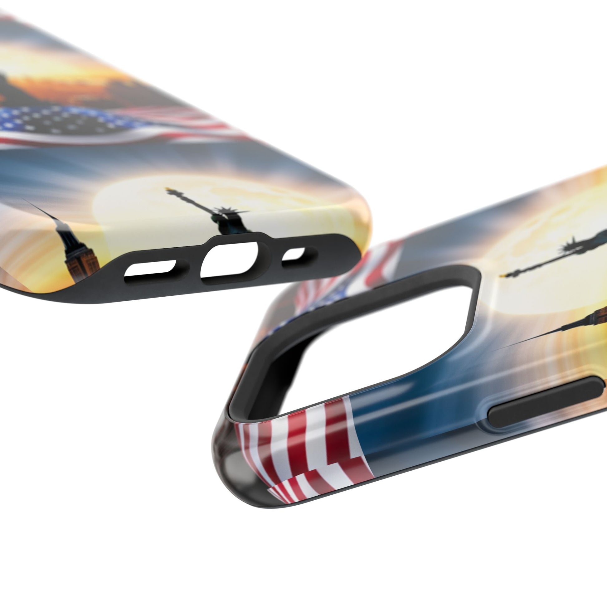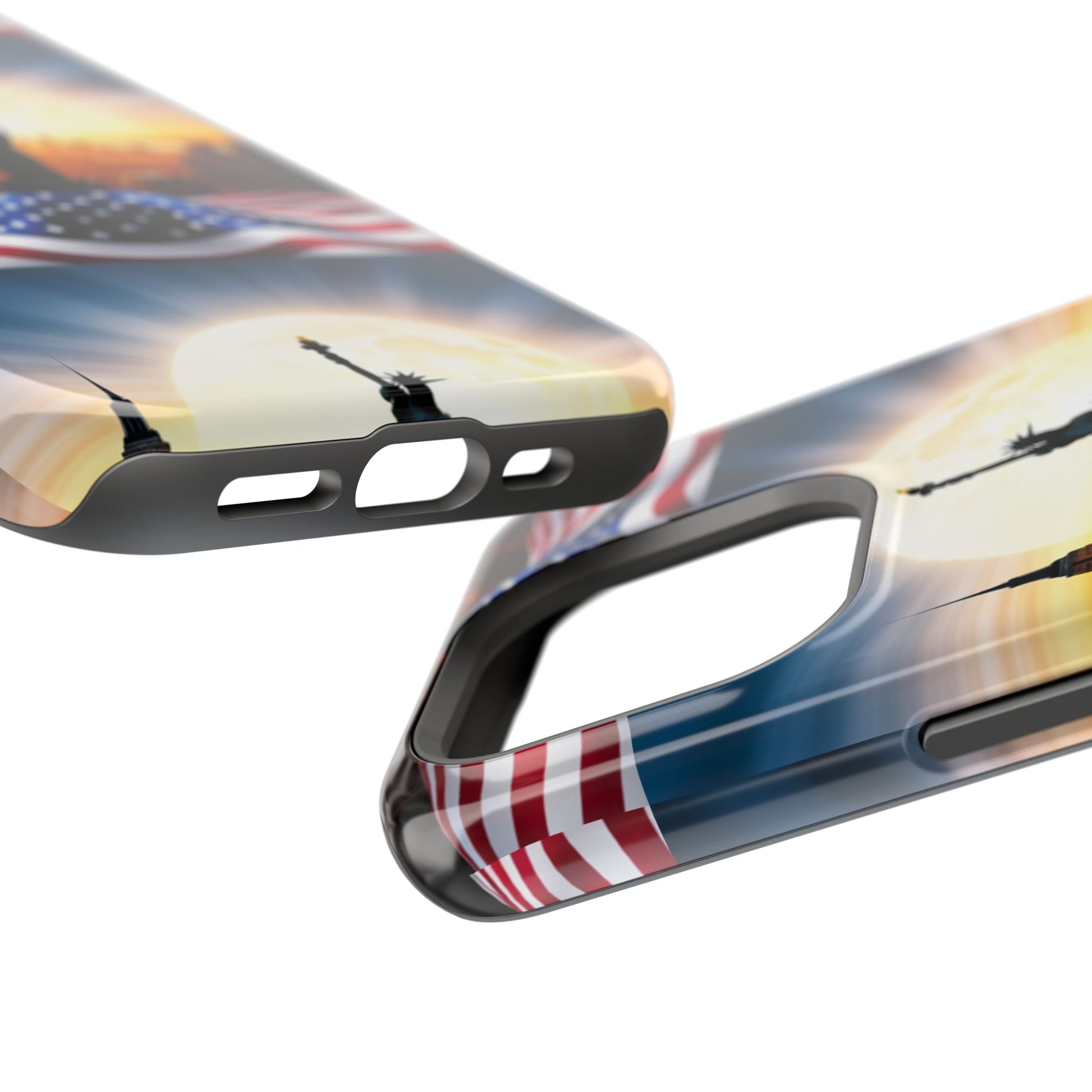 Show your patriotism in style with our American Flag Edition MagSafe Tough Case.