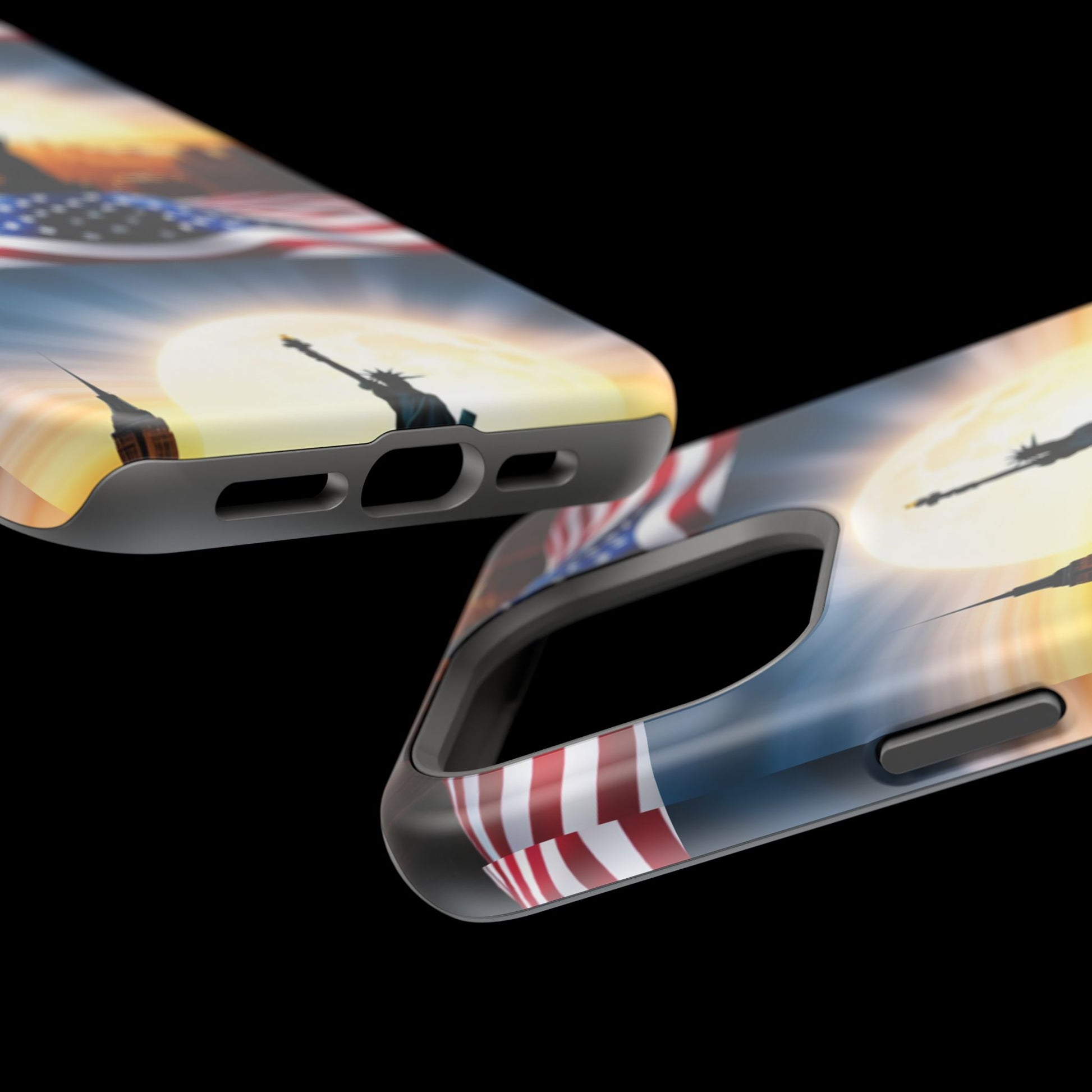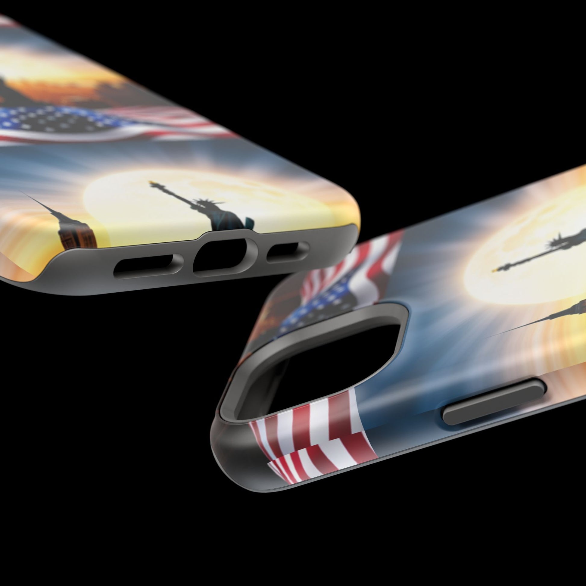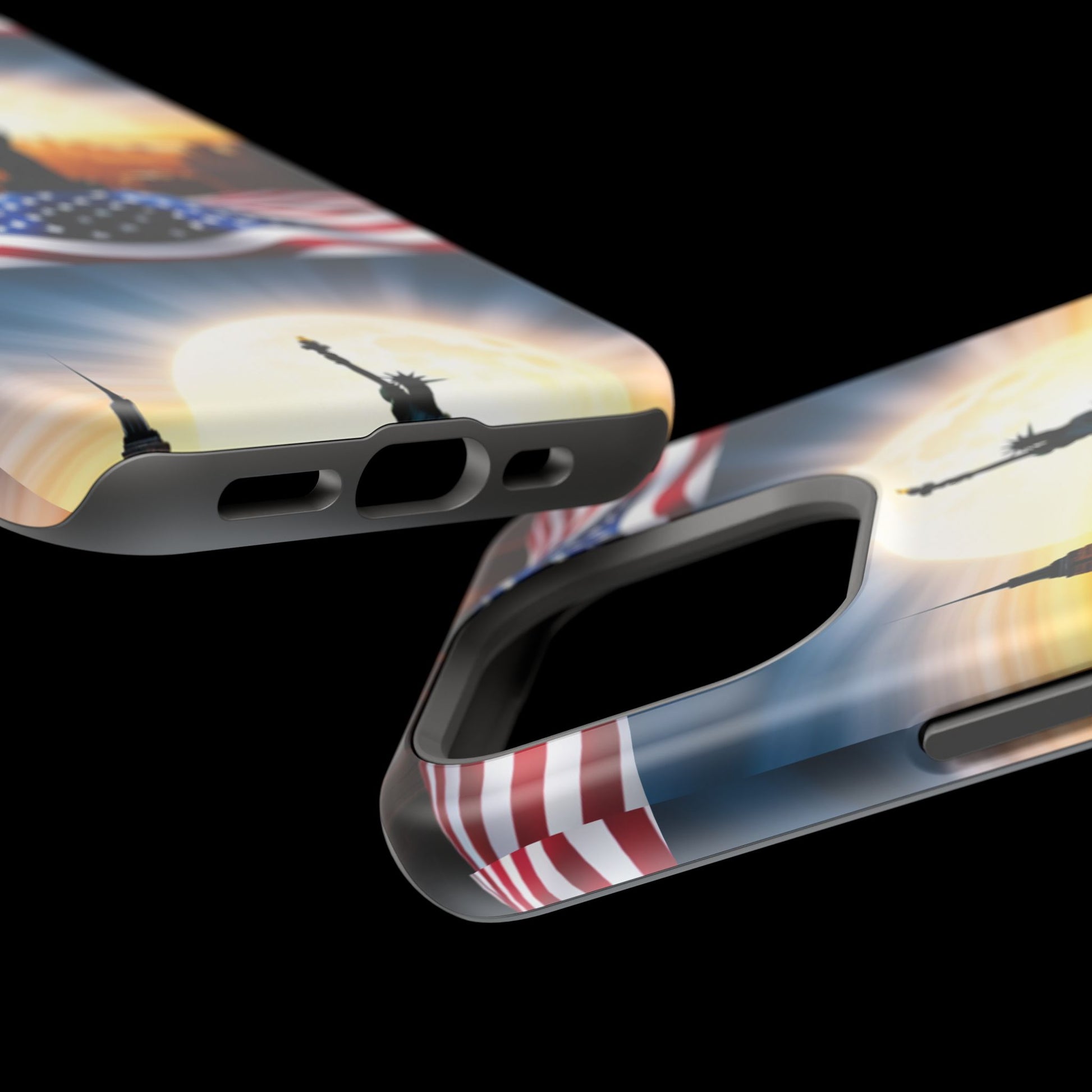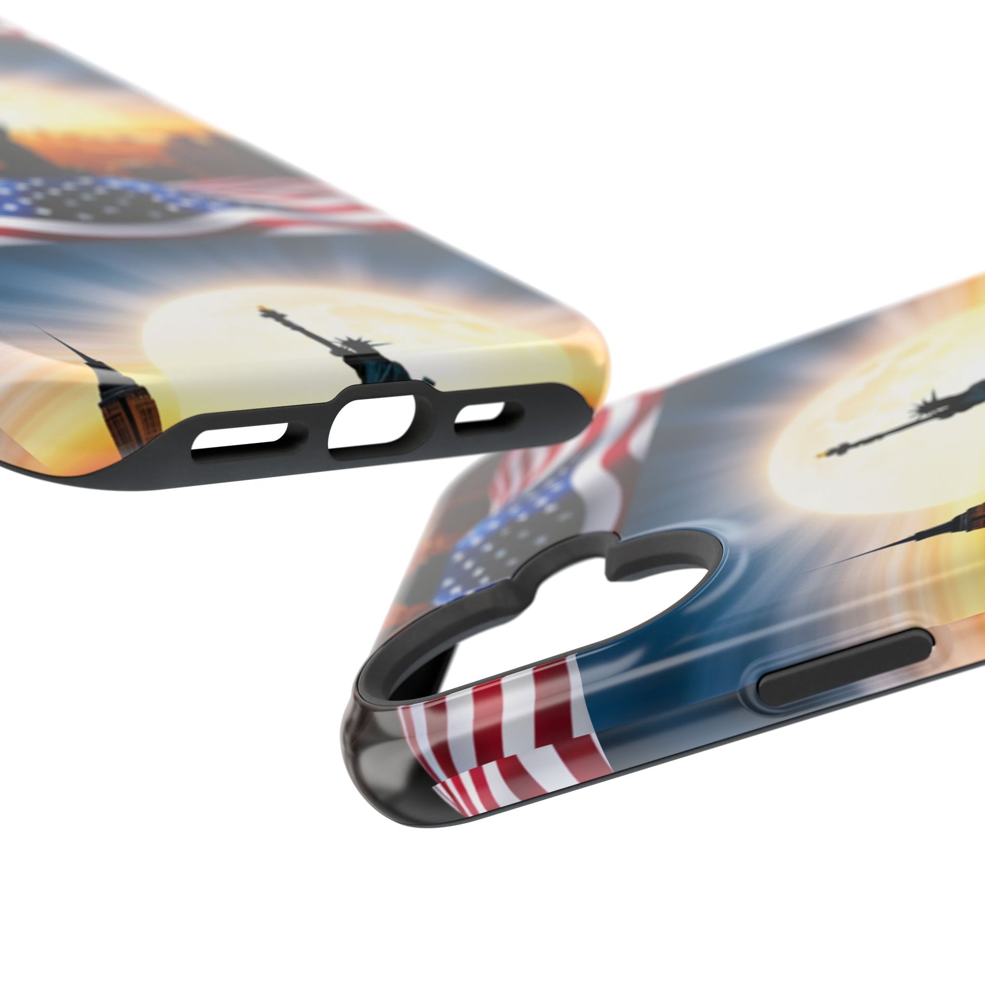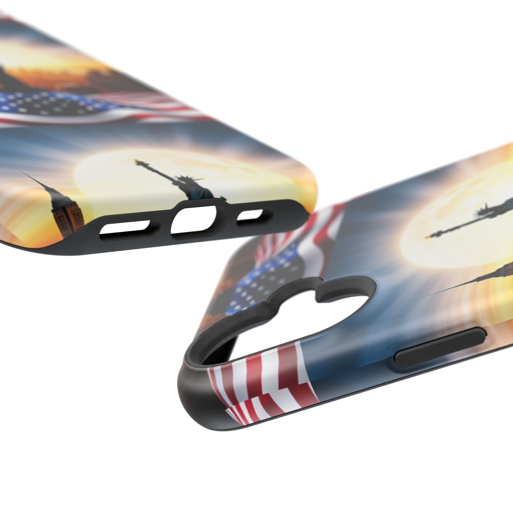 Show your patriotism in style with our American Flag Edition MagSafe Tough Case.