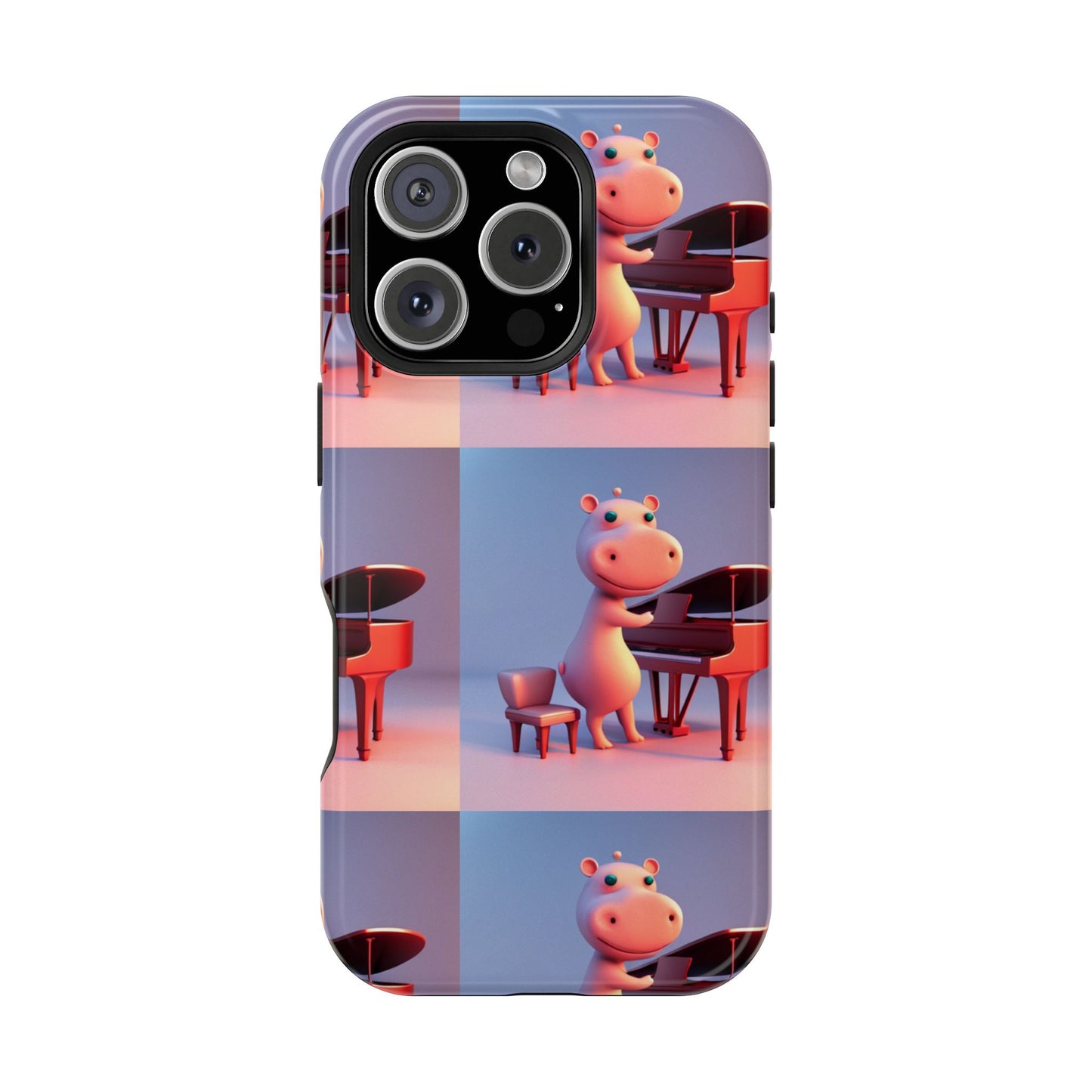 MagSafe Tough Cases with Tiny cute hippo playing a piano