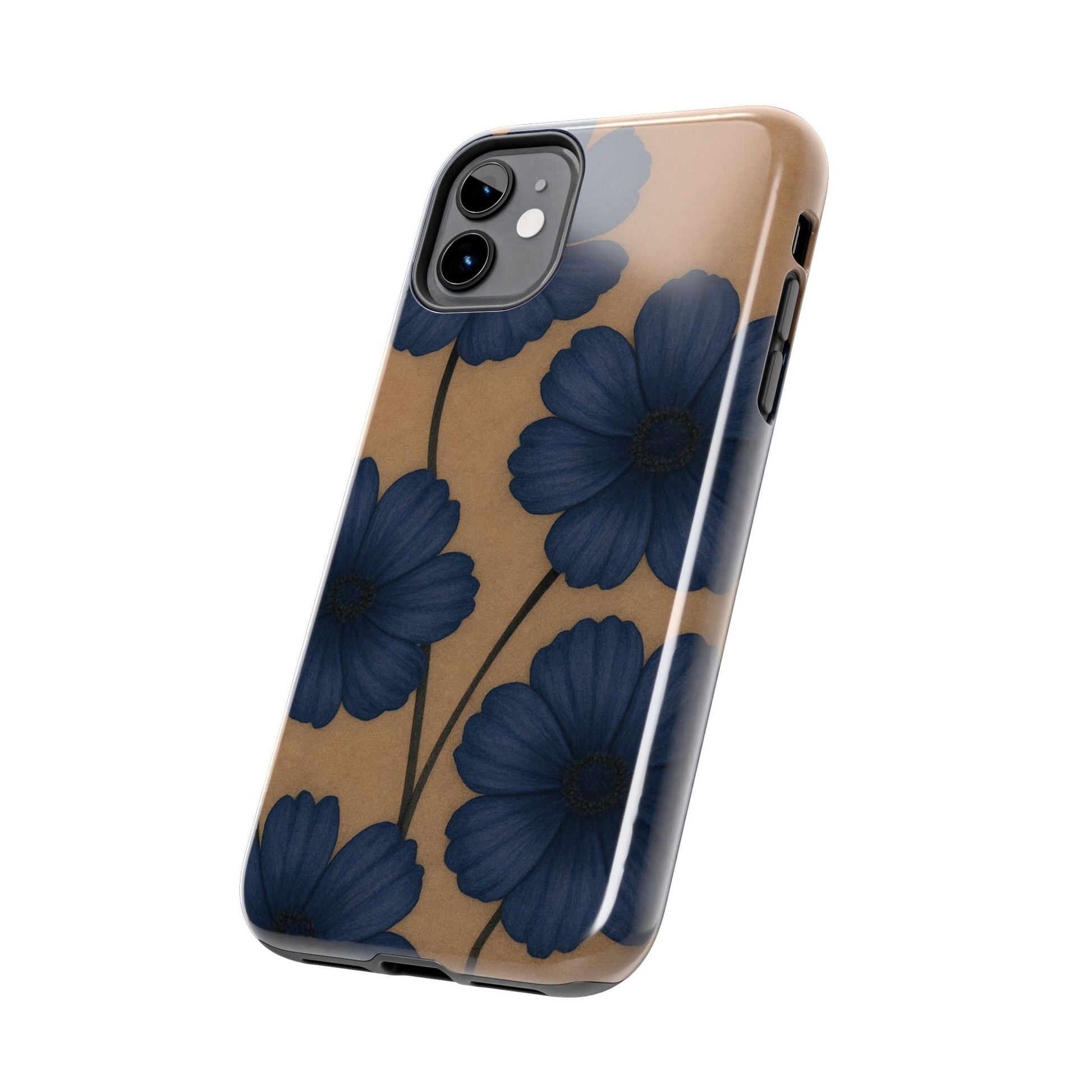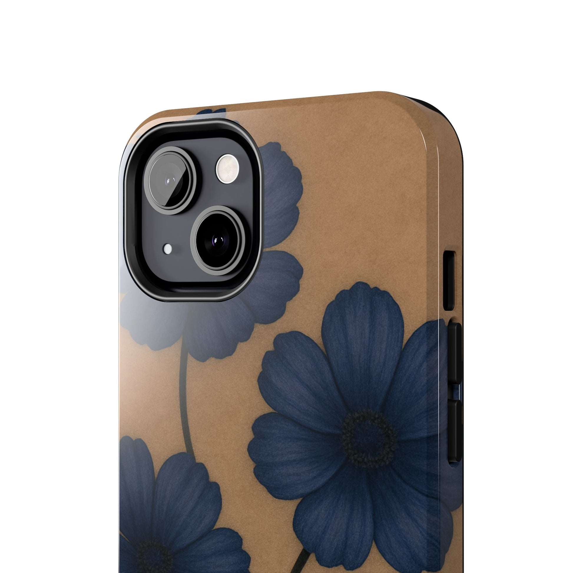 Navy Floral Tough iPhone Case — Durable Protective Case with Blue Flowers on Kraft Background