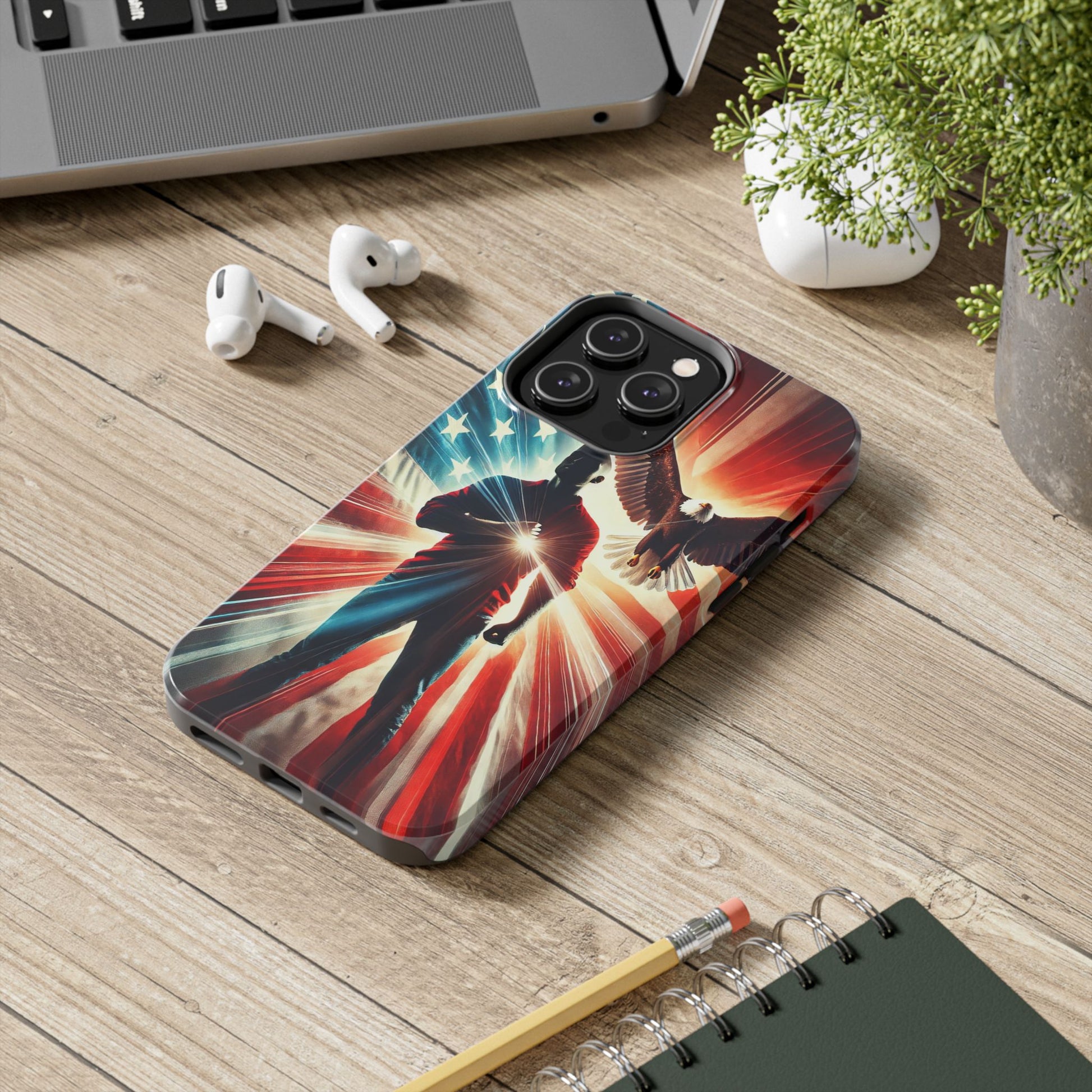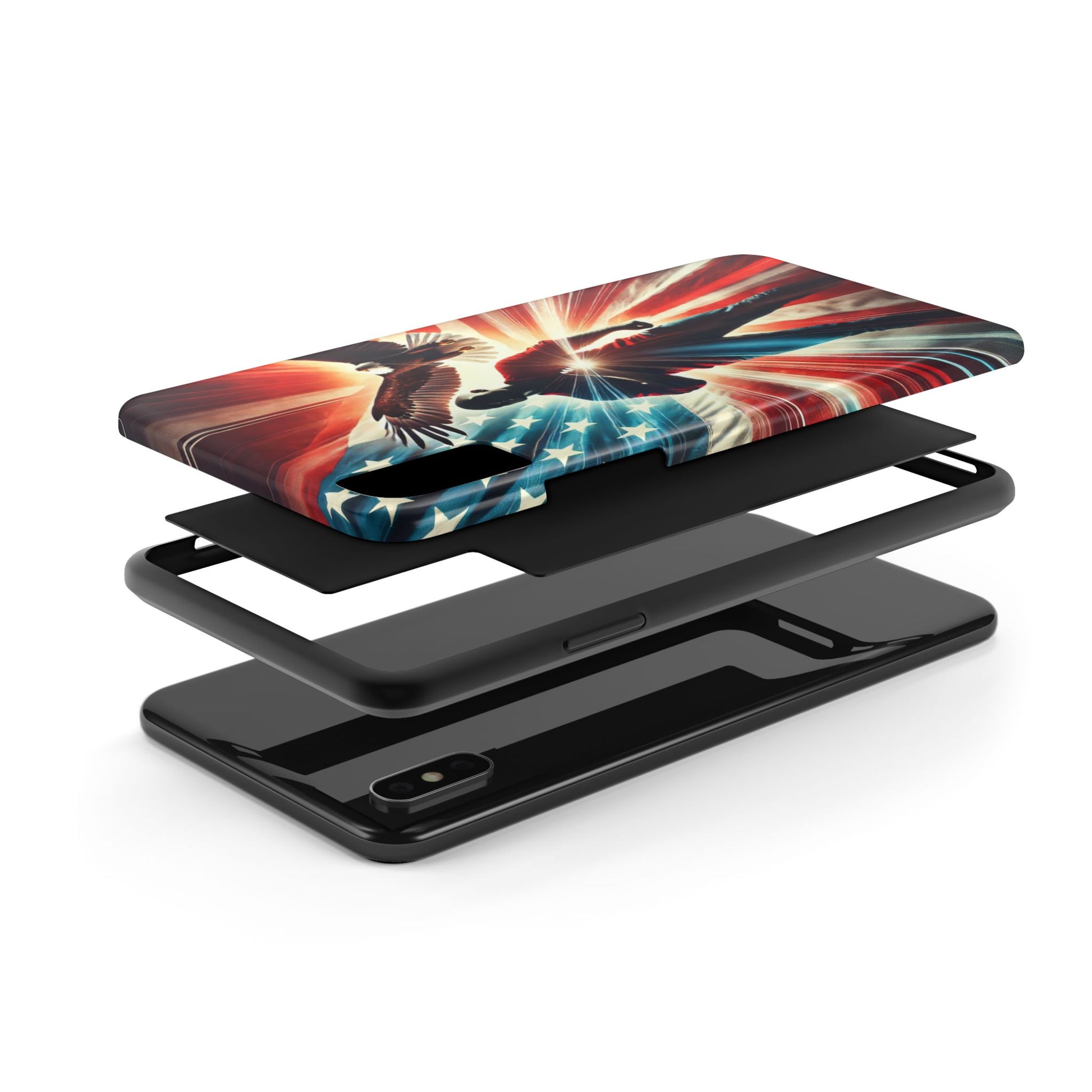 This Tough Phone Case exudes strength and durability with its impact-resistant Lexan plastic material and flexible rubber liner. The Proud American Edition design adds a touch of patriotism to your everyday life, making it perfect for those who want to protect their phone in style. Ideal for patriotic holidays and celebrations.