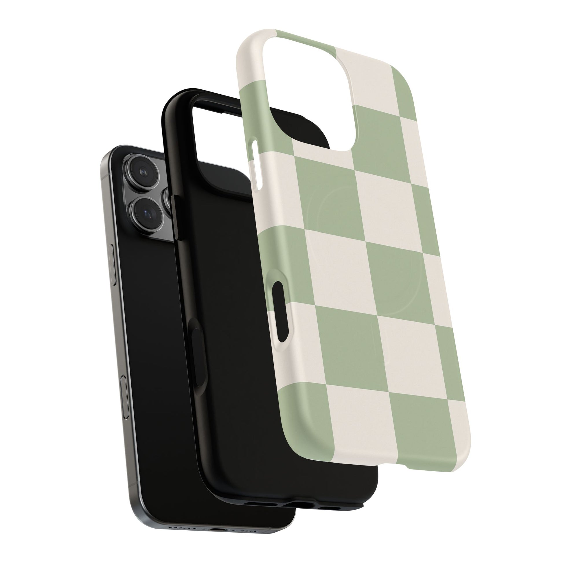 Sage Checkerboard Tough iPhone Case - Compatible with MagSafe
