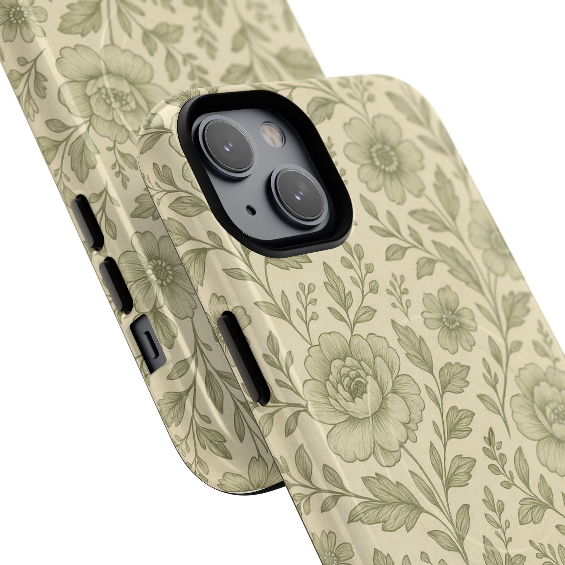 Sage Pattern Vintage Floral iPhone Case | Compatible with MagSafe