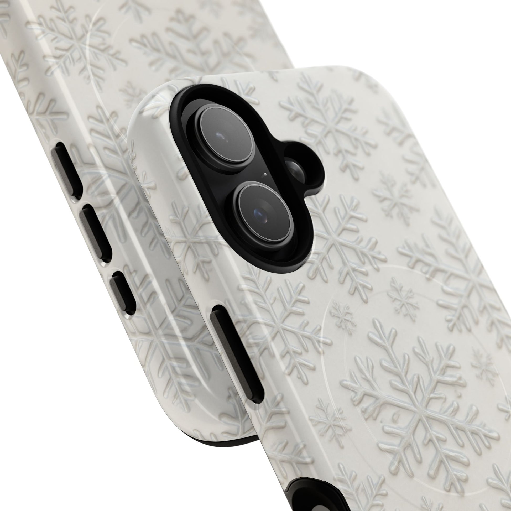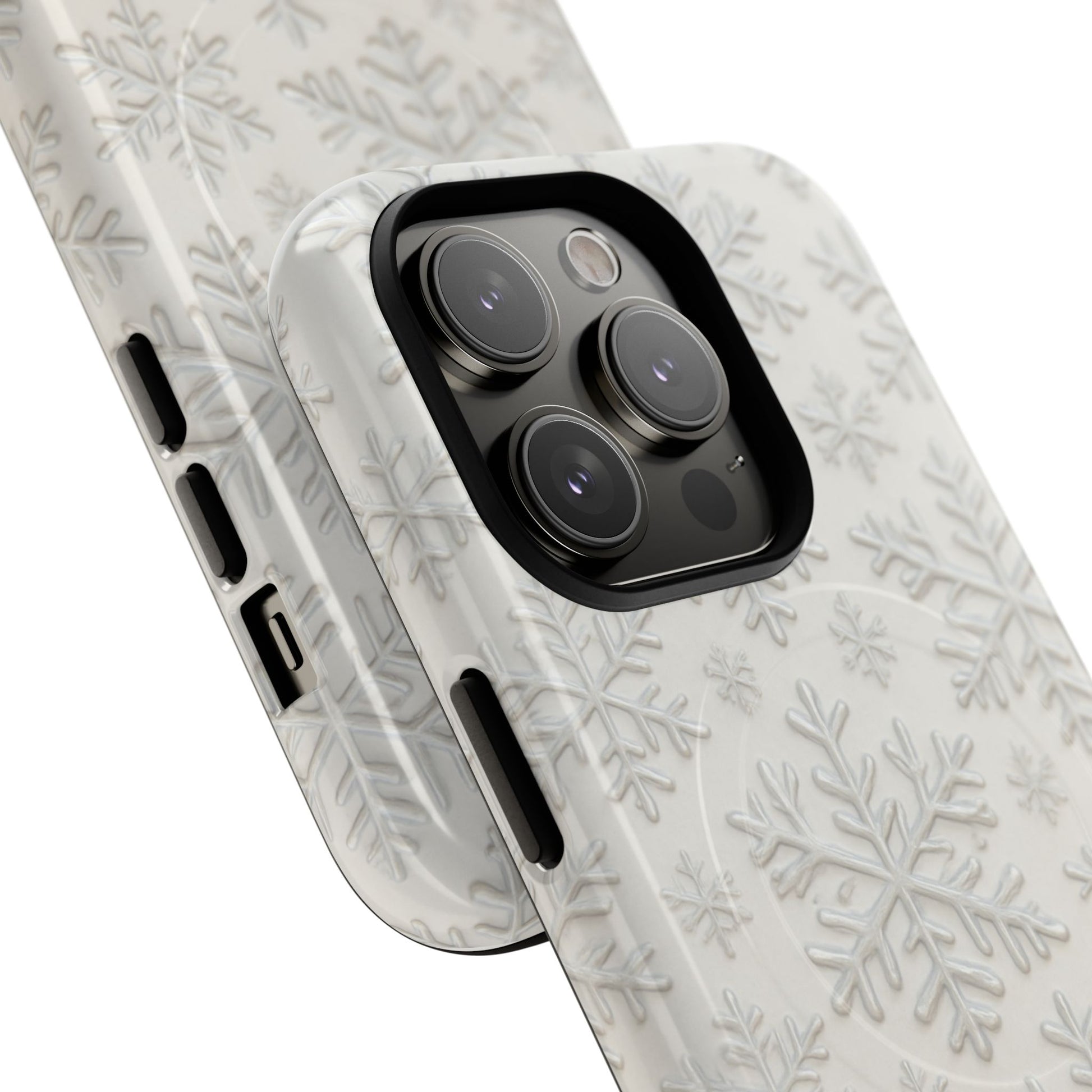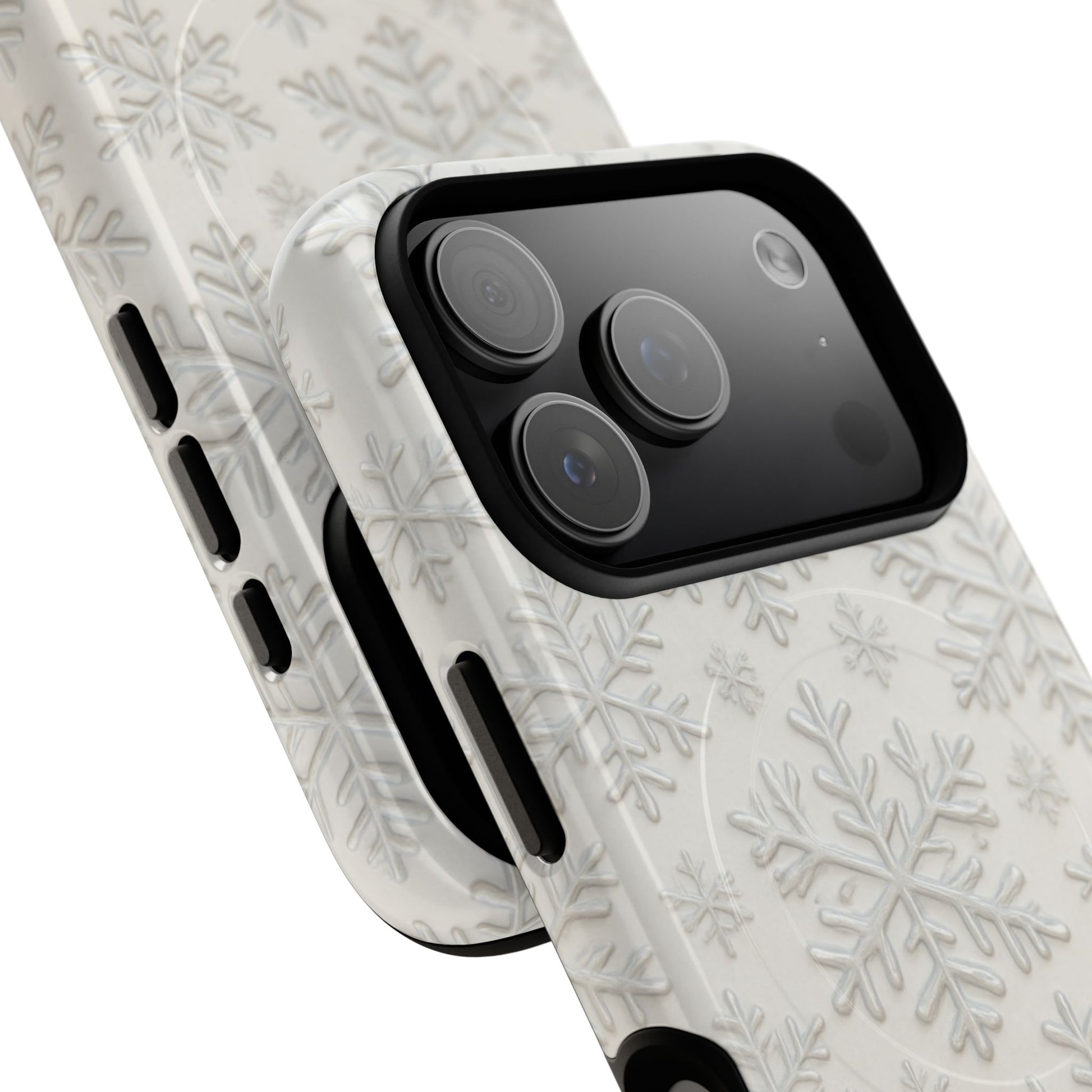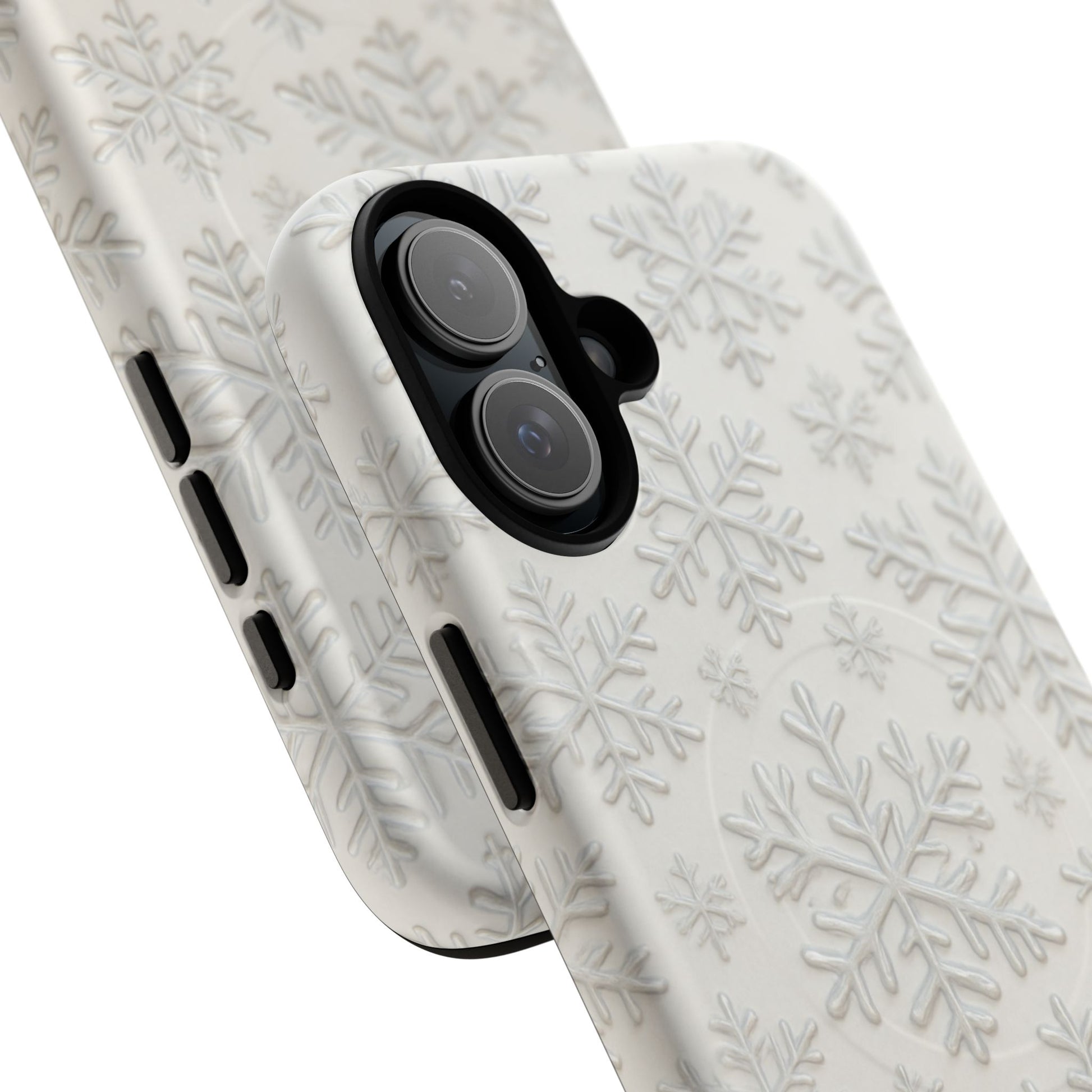A slim, protective phone case that turns cold-weather charm into everyday armor. Subtle snowflake motifs float across a soft, frosted background, bringing quiet winter energy to your pocket without shouting for attention. The dual-layer construction—rigid polycarbonate shell with a shock-absorbing TPU liner—keeps your iPhone safe from drops while a MagSafe-compatible magnetic module and clear port openings keep daily convenience intact. Choose glossy for a crisp sheen or matte for a muted, tactile finish; both showcase the delicate pattern and resist wear so the design stays gentle and intact through the season. This case sits comfortably in hand, slips easily into bags, and complements scarves, wool coats, or minimalist streetwear with an understated seasonal touch.